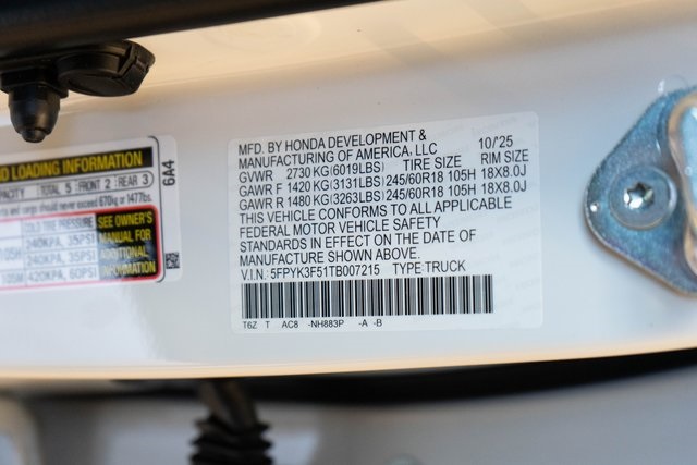 Platinum White Pearl 2026 Honda Ridgeline RTL AWD 9-Speed Automatic 3.5L V6 SOHC i-VTEC 24V
