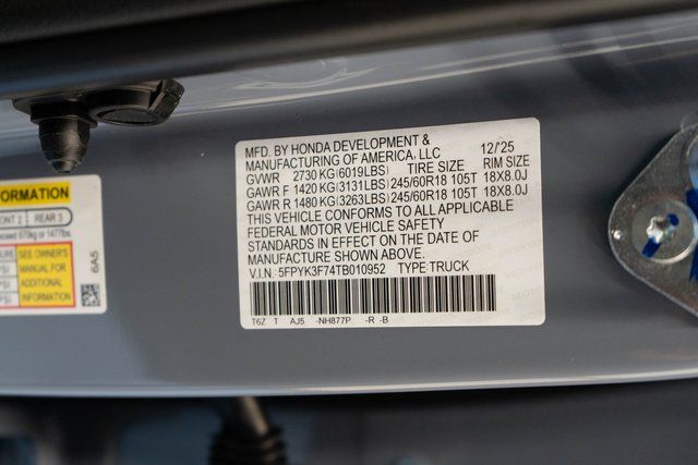 Sonic Gray Pearl 2026 Honda Ridgeline TrailSport+ AWD 9-Speed Automatic 3.5L V6 SOHC i-VTEC 24V Nh-877p/Black Leather.