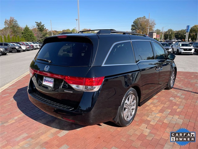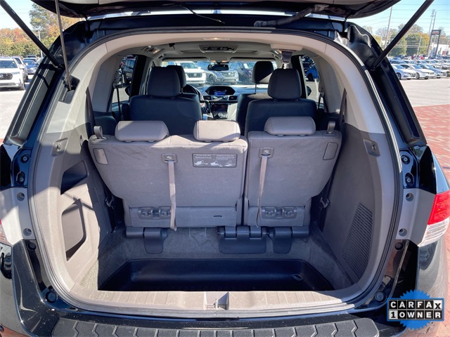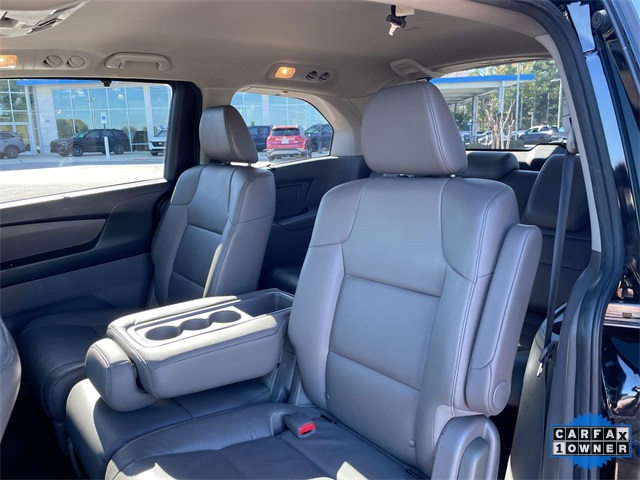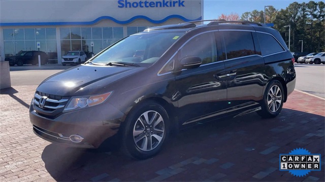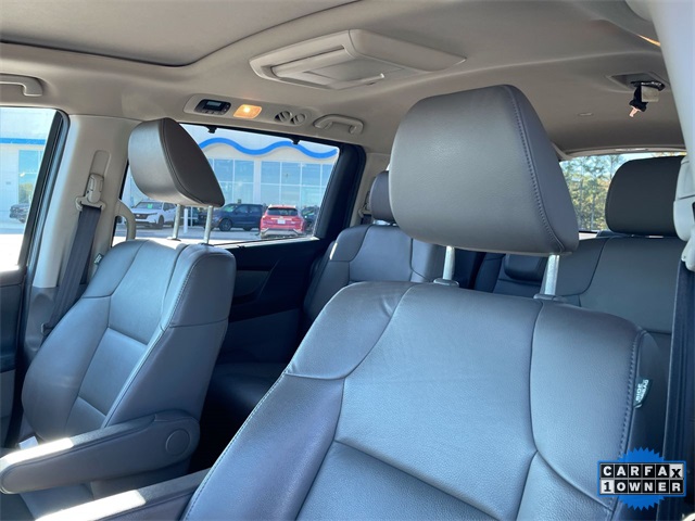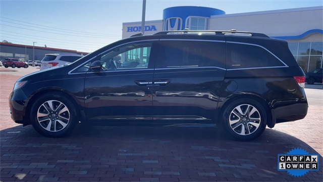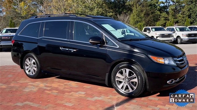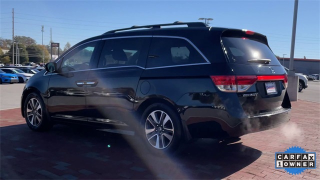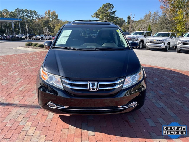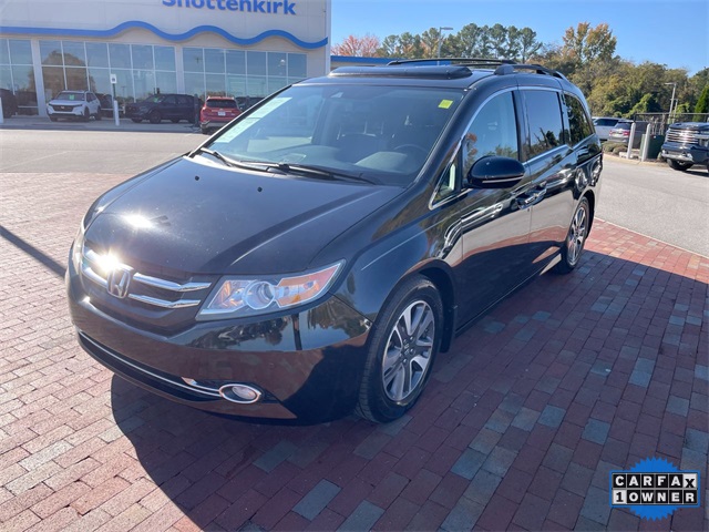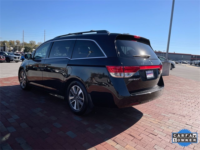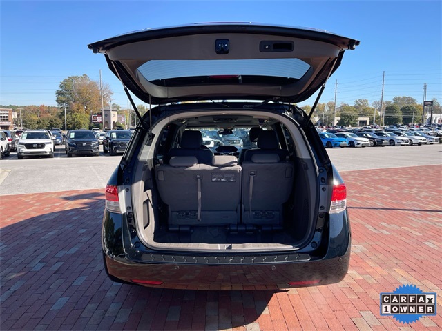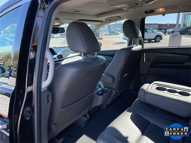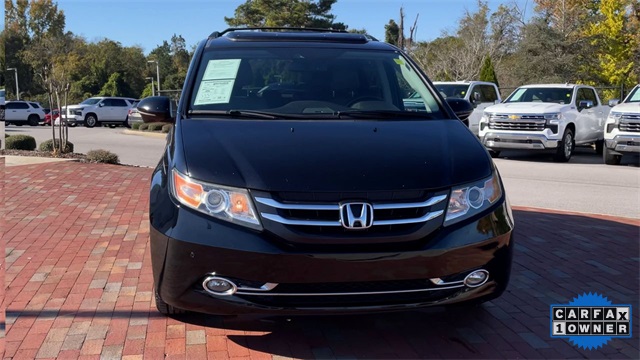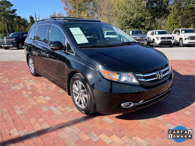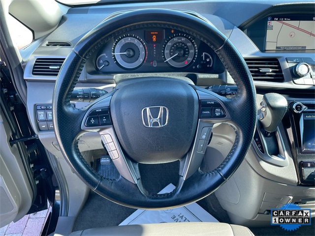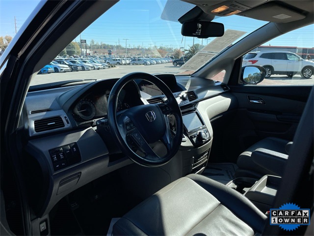 Recent Arrival! CARFAX One-Owner. 2014 Honda Odyssey Touring Touring Crystal Black Pearl 4D Passenger Van 3.5L V6 SOHC i-VTEC 24V 6-Speed Automatic FWD This vehicle comes well equipped with ABS brakes, Alloy wheels, Bumpers: body-color, DVD-Audio, Electronic Stability Control, Front dual zone A/C, Heated door mirrors, Heated Front Bucket Seats, Heated front seats, Illuminated entry, Leather Seat Trim, Low tire pressure warning, Navigation System, Power door mirrors, Power Liftgate, Power moonroof, Remote keyless entry, Spoiler, Traction control, and Turn signal indicator mirrors ABS brakes, Alloy wheels, Bumpers: body-color, DVD-Audio, Electronic Stability Control, Front dual zone A/C, Heated door mirrors, Heated Front Bucket Seats, Heated front seats, Illuminated entry, Leather Seat Trim, Low tire pressure warning, Navigation System, Power door mirrors, Power Liftgate, Power moonroof, Remote keyless entry, Spoiler, Traction control, Turn signal indicator mirrors, 18" x 7" Alloy Wheels, 3rd row seats: split-bench, 4-Wheel Disc Brakes, 4.25 Axle Ratio, 7 Speakers, A/V remote, Air Conditioning, AM/FM radio: XM, AM/FM/CD Audio System w/7 Speakers, Anti-whiplash front head restraints, Auto-dimming Rear-View mirror, Automatic temperature control, Brake assist, CD player, Delay-off headlights, Driver door bin, Driver vanity mirror, Driver's Seat Mounted Armrest, Dual front impact airbags, Dual front side impact airbags, Exterior Parking Camera Rear, Four wheel independent suspension, Front anti-roll bar, Front Bucket Seats, Front fog lights, Front reading lights, Garage door transmitter: HomeLink, Headphones, Leather Shift Knob, Leather steering wheel, Memory seat, Occupant sensing airbag, Outside temperature display, Overhead airbag, Overhead console, Panic alarm, Passenger door bin, Passenger seat mounted armrest, Passenger vanity mirror, Power driver seat, Power passenger seat, Power steering, Power windows, Radio data system, Rear air conditioning, Rear audio controls, Rear reading lights, Rear seat center armrest, Rear window defroster, Rear window wiper, Reclining 3rd row seat, Security system, Speed control, Speed-sensing steering, Speed-Sensitive Wipers, Split folding rear seat, Steering wheel mounted audio controls, Tachometer, Telescoping steering wheel, Tilt steering wheel, Trip computer, and Variably intermittent wipers.