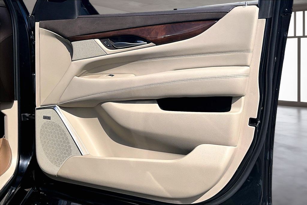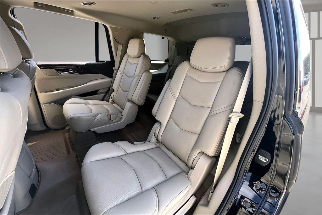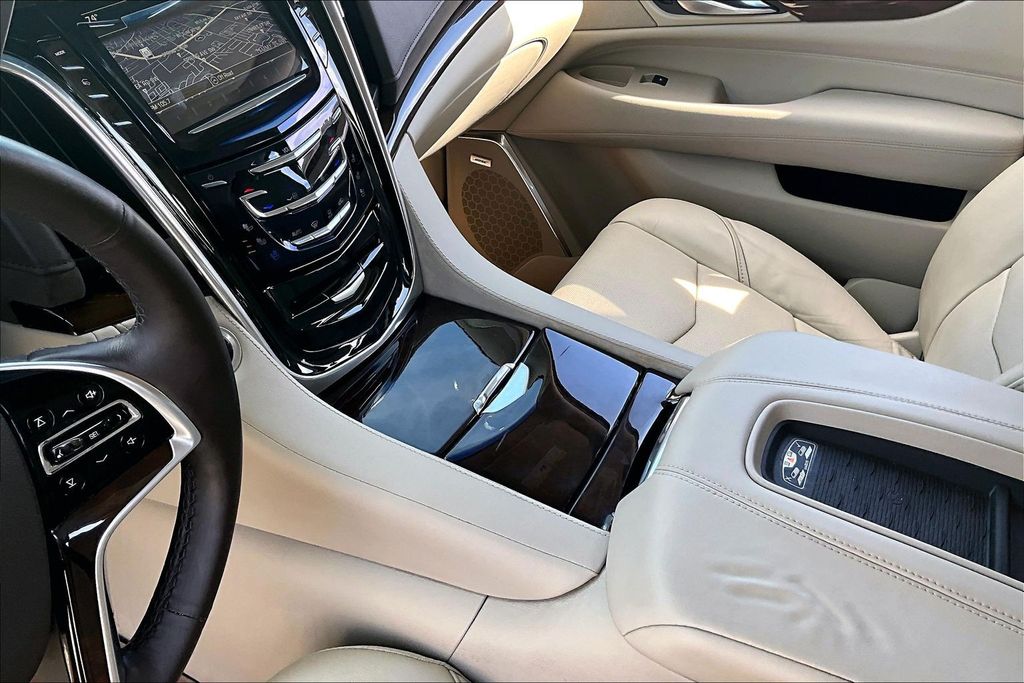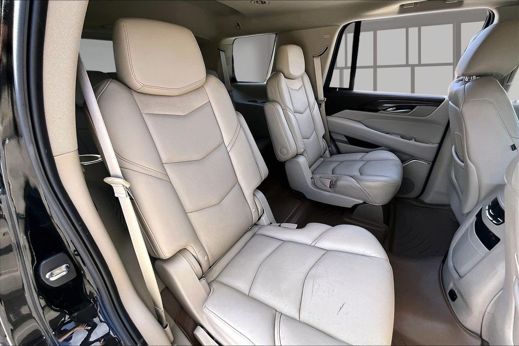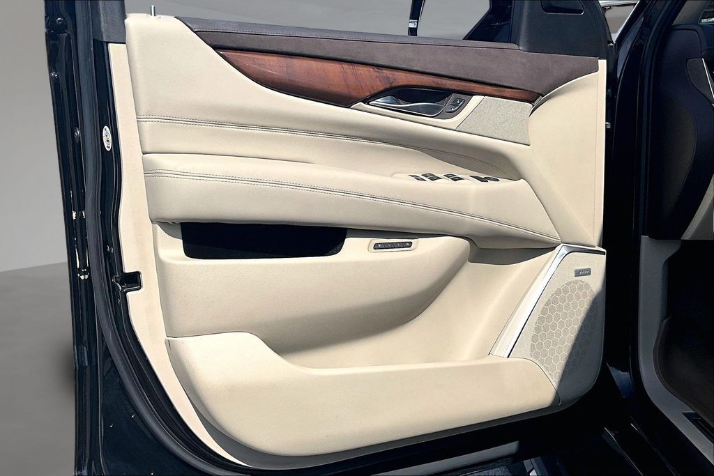 3rd Row Seating, 360 Surround View Camera, Apple CarPlay, Android Auto, Adaptive Cruise Control, Back Up Camera, Blind Spot Monitoring System, Heated Seats, Heated Steering Wheel, Leather Interior, Lane Departure, Memory Seats, Navigation, Power Drivers Seat, Power Passenger Seat, Parking Sensors, Remote Start, Sunroof, Ventilated Seats, Rear Entertainment System, Escalade Premium Luxury, 6.2L Variable Valve Timing V8 SIDI, 8-Speed Automatic, RWD, Black Raven, Shale With Cocoa Accents Leather, 12-Way Power Front Passenger Seat Adjuster, 2-Position Memory For Driver's Seat Adjuster, 3rd row seats: split-bench, Adaptive Full-Speed Range Cruise Control, Adaptive suspension, All-Weather 1st, 2nd & 3rd Row Floor Mats (LPO), All-Weather Cargo Mat (LPO), Apple CarPlay, Auto High-beam Headlights, Auto tilt-away steering wheel, Auto-dimming door mirrors, Auto-leveling suspension, Automatic Safety Belt Tightening, Automatic temperature control, Bose Centerpoint Surround Sound System, Brake assist, CD player, Chrome Exhaust Tip, Driver Assist Package, DVD-Audio, Electronic Powered Parking Brake, Exterior Parking Camera Rear, Forward Collision Alert, Front & Rear Automatic Braking, Front dual zone A/C, Front wheel independent suspension, Garage door transmitter, Grille (LPO), Heads-Up Display, Heated & Cooled Front Bucket Seats, Heated front seats, Heated rear seats, Heated steering wheel, Illuminated Door Handles, Inclination Sensor, IntelliBeam Headlamps, Interior Protection Package (LPO), Lane Change Alert, Lane Keep Assist w/Lane Departure Warning, Leather Seating Surfaces, Leather steering wheel, Magnetic Ride Control Suspension, Memory seat, Navigation System, Pedal memory, Power Liftgate, Power moonroof, Power passenger seat, Power Tilt-Sliding Sunroof w/Express-Open/Close, Preferred Equipment Group 1SC, Radiant Package (LPO), Rear Camera Mirror, Rear Camera Washer, Rear Cross-Traffic Alert, Rear Seat Entertainment System, Reconfigurable 4-Color Head-Up Display, Remote keyless entry, Second Row Bucket Seats, Side Blind Zone Alert, Spoiler, Telescoping steering wheel, Theft-Deterrent Alarm System, Theft-Deterrent Package, Tilt steering wheel, Turn signal indicator mirrors, VAC Power 17" Disc Brakes, Vehicle Interior Movement Sensor, Ventilated front seats, Wheels: 22" Chrome 7-Split Spoke (LPO), Wheels: 22" x 9" Steel (LPO).