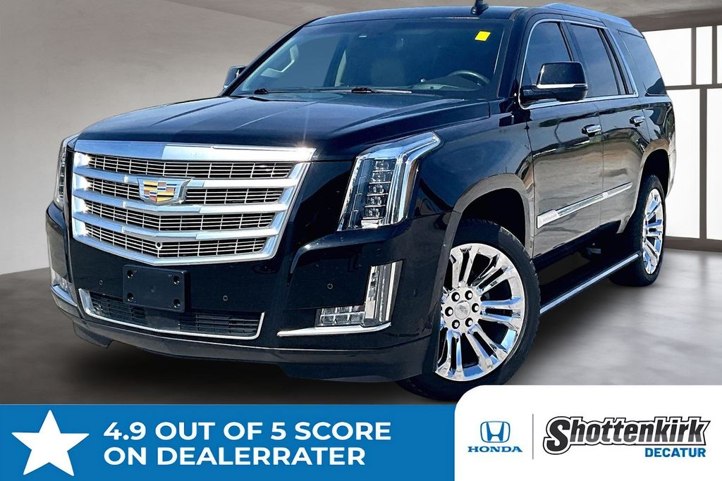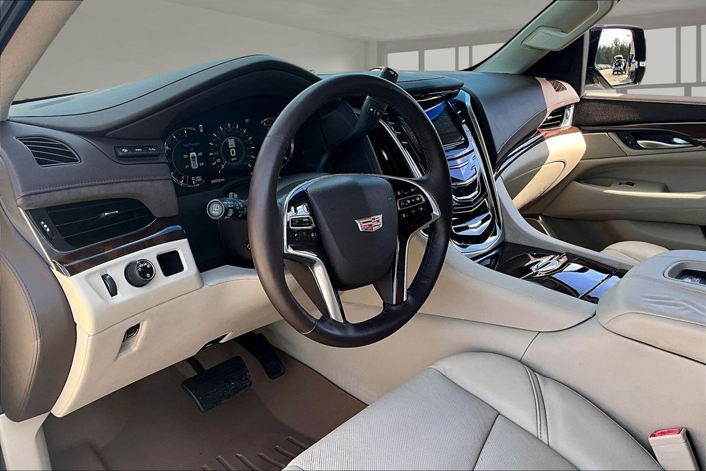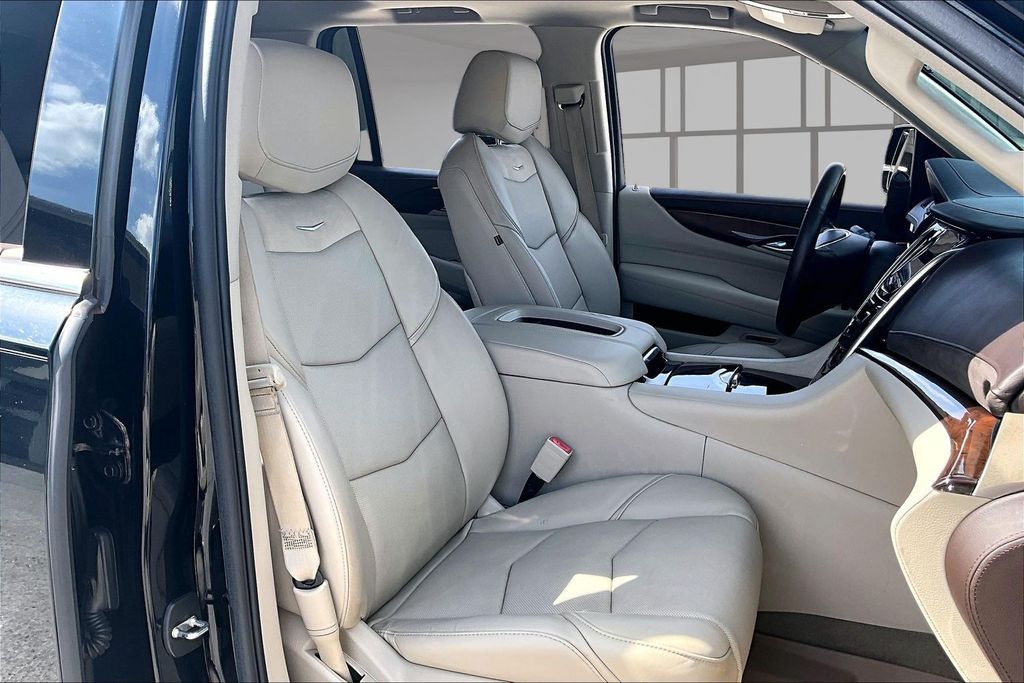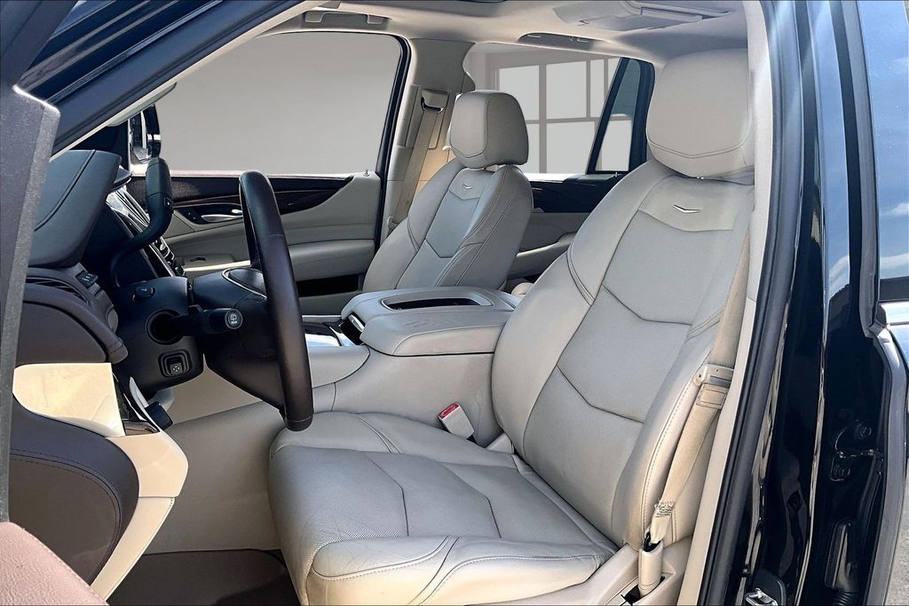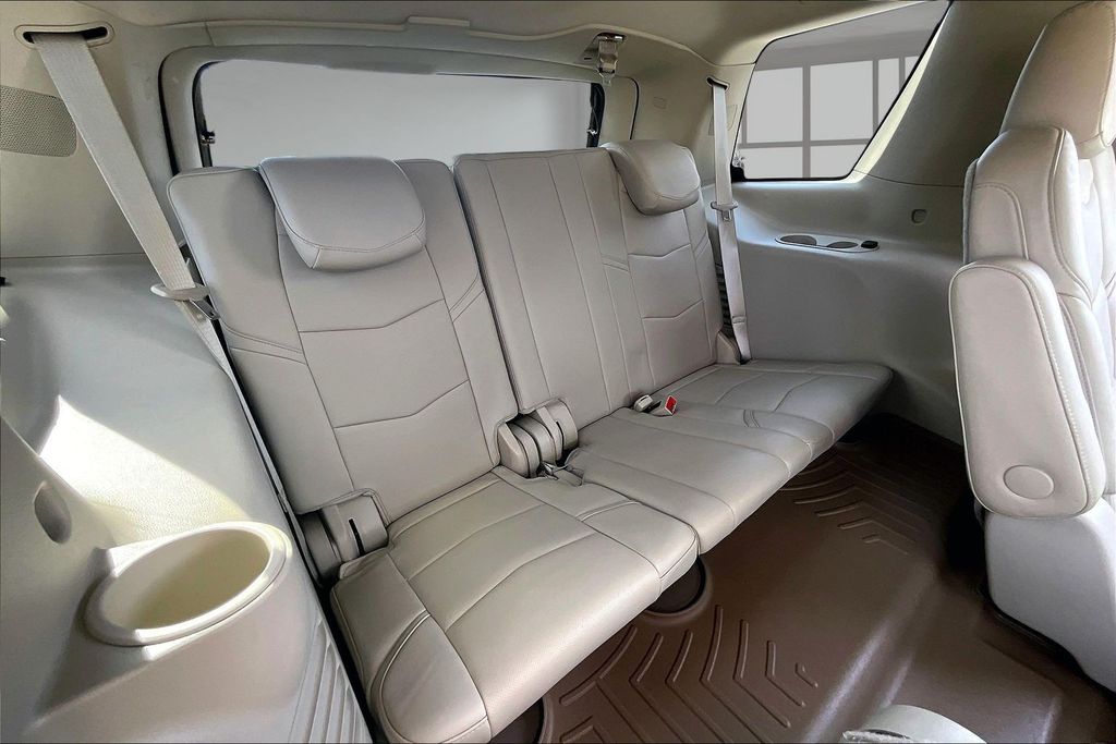 3rd Row Seating, 360 Surround View Camera, Apple CarPlay, Android Auto, Adaptive Cruise Control, Back Up Camera, Blind Spot Monitoring System, Heated Seats, Heated Steering Wheel, Leather Interior, Lane Departure, Memory Seats, Navigation, Power Drivers Seat, Power Passenger Seat, Parking Sensors, Remote Start, Sunroof, Ventilated Seats, Rear Entertainment System, Escalade Premium Luxury, 6.2L Variable Valve Timing V8 SIDI, 8-Speed Automatic, RWD, Black Raven, Shale With Cocoa Accents Leather, 12-Way Power Front Passenger Seat Adjuster, 2-Position Memory For Driver's Seat Adjuster, 3rd row seats: split-bench, Adaptive Full-Speed Range Cruise Control, Adaptive suspension, All-Weather 1st, 2nd & 3rd Row Floor Mats (LPO), All-Weather Cargo Mat (LPO), Apple CarPlay, Auto High-beam Headlights, Auto tilt-away steering wheel, Auto-dimming door mirrors, Auto-leveling suspension, Automatic Safety Belt Tightening, Automatic temperature control, Bose Centerpoint Surround Sound System, Brake assist, CD player, Chrome Exhaust Tip, Driver Assist Package, DVD-Audio, Electronic Powered Parking Brake, Exterior Parking Camera Rear, Forward Collision Alert, Front & Rear Automatic Braking, Front dual zone A/C, Front wheel independent suspension, Garage door transmitter, Grille (LPO), Heads-Up Display, Heated & Cooled Front Bucket Seats, Heated front seats, Heated rear seats, Heated steering wheel, Illuminated Door Handles, Inclination Sensor, IntelliBeam Headlamps, Interior Protection Package (LPO), Lane Change Alert, Lane Keep Assist w/Lane Departure Warning, Leather Seating Surfaces, Leather steering wheel, Magnetic Ride Control Suspension, Memory seat, Navigation System, Pedal memory, Power Liftgate, Power moonroof, Power passenger seat, Power Tilt-Sliding Sunroof w/Express-Open/Close, Preferred Equipment Group 1SC, Radiant Package (LPO), Rear Camera Mirror, Rear Camera Washer, Rear Cross-Traffic Alert, Rear Seat Entertainment System, Reconfigurable 4-Color Head-Up Display, Remote keyless entry, Second Row Bucket Seats, Side Blind Zone Alert, Spoiler, Telescoping steering wheel, Theft-Deterrent Alarm System, Theft-Deterrent Package, Tilt steering wheel, Turn signal indicator mirrors, VAC Power 17" Disc Brakes, Vehicle Interior Movement Sensor, Ventilated front seats, Wheels: 22" Chrome 7-Split Spoke (LPO), Wheels: 22" x 9" Steel (LPO).