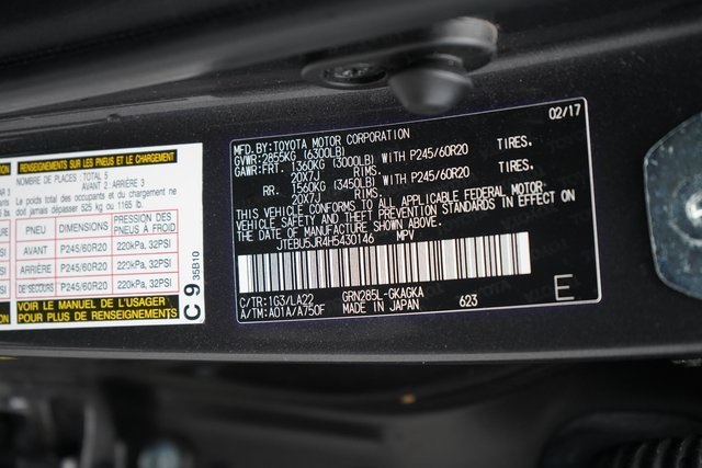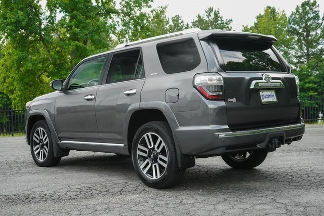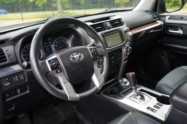 2017 Toyota 4Runner Limited Magnetic Gray Metallic 17/20 City/Highway MPG 4.0L V6 SMPI DOHC 4WD 5-Speed Automatic with Overdrive 4WD, Black Leather, 20" x 7.5" Unique Dual 6-Spoke Alloy Wheels, ABS brakes, Body Color Heated Mirrors, Compass, Electronic Stability Control, Front dual zone A/C, Heated door mirrors, Heated front seats, Heated/Ventilated Front Bucket Seats, Illuminated entry, Leather Seat Trim, Low tire pressure warning, Memory seat, Power driver seat, Power moonroof, Remote keyless entry, Traction control.