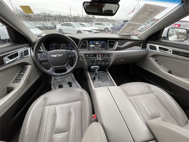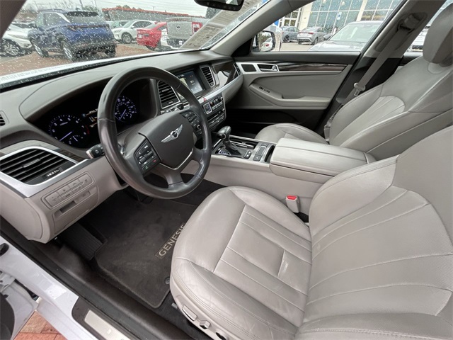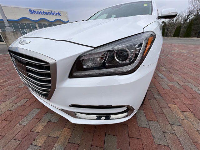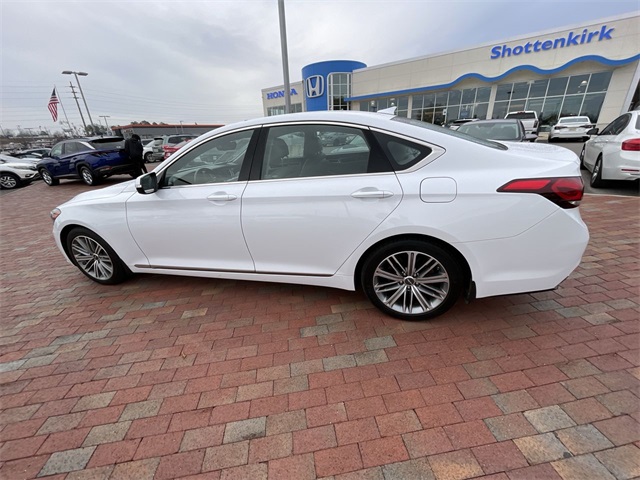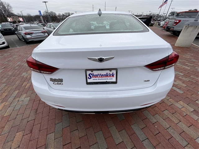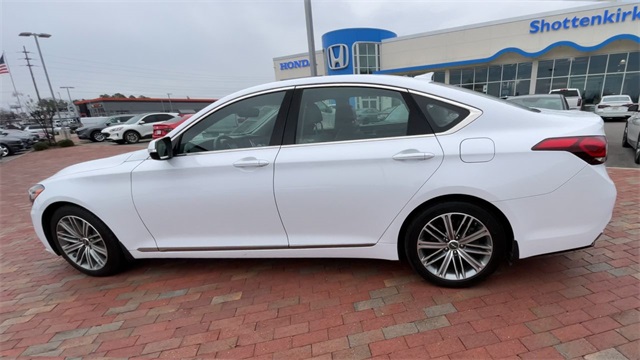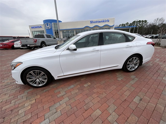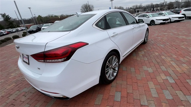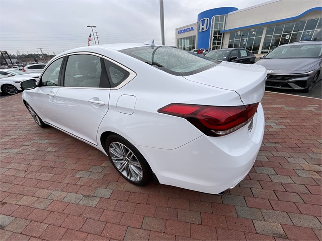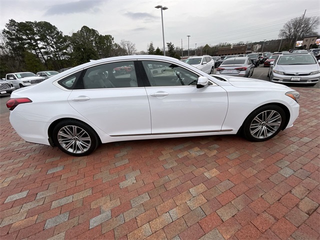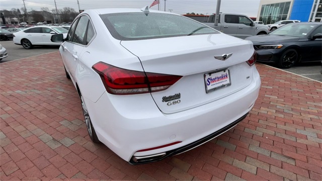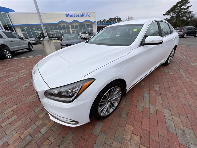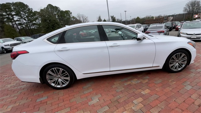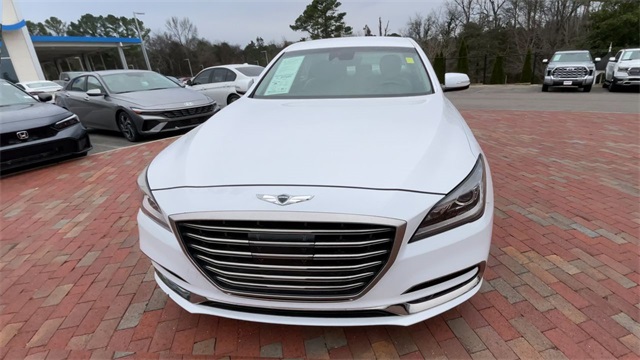 2018 Genesis G80 3.8 3.8 White 4D Sedan 3.8L V6 DGI DOHC Dual CVVT 8-Speed Automatic with SHIFTRONIC This vehicle comes well equipped with 12-Way Power Heated Front Bucket Seats, 18" Alloy Wheels, 4-Wheel Disc Brakes, 7 Speakers, ABS brakes, Air Conditioning, Alloy wheels, AM/FM radio: SiriusXM, Android Auto & Apple CarPlay, Anti-whiplash front head restraints, Auto High-beam Headlights, Auto tilt-away steering wheel, Auto-dimming door mirrors, Auto-dimming Rear-View mirror, Automatic temperature control, Bodyside moldings, Brake assist, Bumpers: body-color, CD player, Compass, Delay-off headlights, Driver door bin, Driver vanity mirror, Dual front impact airbags, Dual front side impact airbags, Electronic Stability Control, Emergency communication system: Genesis Connected Services, Exterior Parking Camera Rear, Four wheel independent suspension, Front anti-roll bar, Front Bucket Seats, Front Center Armrest, Front dual zone A/C, Front reading lights, Fully automatic headlights, Garage door transmitter: HomeLink, Heated door mirrors, Heated front seats, High intensity discharge headlights: Bi-Xenon, Illuminated entry, Knee airbag, Leather Seating Surfaces, Leather Shift Knob, Leather steering wheel, Low tire pressure warning, Memory seat, Navigation System, Occupant sensing airbag, Outside temperature display, Overhead airbag, Overhead console, Panic alarm, Passenger door bin, Passenger vanity mirror, Power door mirrors, Power driver seat, Power passenger seat, Power steering, Power windows, Radio data system, Radio: AM/FM/XM/HD/CD/MP3 Audio System, Rain sensing wipers, Rear anti-roll bar, Rear reading lights, Rear seat center armrest, Rear side impact airbag, Rear window defroster, Remote keyless entry, Security system, Speed control, Speed-sensing steering, Speed-Sensitive Wipers, Steering wheel memory, Steering wheel mounted audio controls, Tachometer, Telescoping steering wheel, Tilt steering wheel, Traction control, Trip computer, Turn signal indicator mirrors, and Variably intermittent wipers.