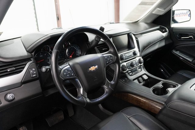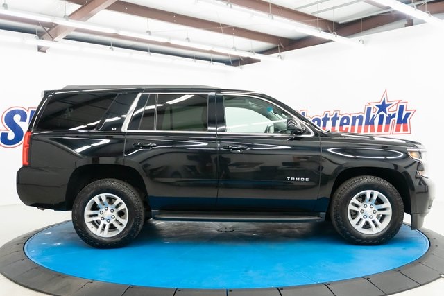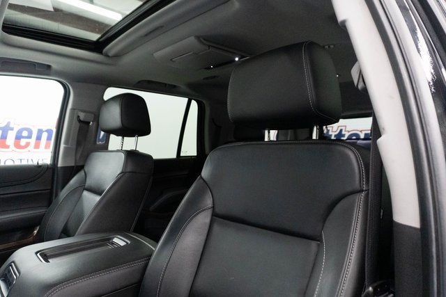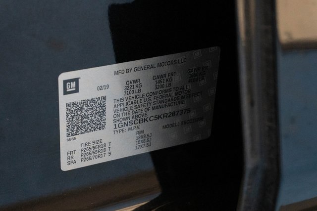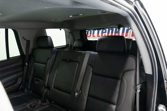 Black 2019 Chevrolet Tahoe LT RWD 6-Speed Automatic Electronic with Overdrive EcoTec3 5.3L V8 Heated Steering Wheel, Black Leather, 1st & 2nd Row Color-Keyed Carpeted Floor Mats, 2nd Row 60/40 Split-Folding Manual Bench, 2nd Row Pwr Release 60/40 Split Folding Bench Seat, 3rd Row 60/40 Power Fold Split-Bench, 3rd Row Manual 60/40 Split-Folding Fold Flat Bench, 4-Wheel Antilock Disc Brakes w/Brake Assist, 5 12-Volt Auxiliary Power Outlets, Auto-Dimming Inside Rear-View Mirror, Black Assist Steps, Bose Premium 9-Speaker System, Cargo Net, Color-Keyed Carpeting Floor Covering, Driver Inboard & Front Passenger Airbags, Electronic Cruise Control w/Set & Resume Speed, Enhanced Driver Alert Package (Y86), Extended-Range Remote Keyless Entry, Floor Console, Fog Lamps, Forward Collision Alert, Front & Rear Park Assist, Front Passenger 6-Way Power Seat Adjuster, Hands Free Power Liftgate, Heated 2nd Row Seats, Heated Leather Wrapped Steering Wheel, IntelliBeam Headlamps, Lane Change Alert w/Side Blind Zone Alert, Lane Keep Assist w/Lane Departure Warning, Leather-Wrapped Steering Wheel, Low Speed Forward Automatic Braking, Luxury Package, Memory Settings, Navigation System, Passive Entry System, Power Liftgate, Power Tilt & Telescopic Steering Column w/Memory, Power-Adjustable Accelerator & Brake Pedals, Power-Folding Heated Outside Mirrors, Preferred Equipment Group 1LT, Premium Smooth Ride Suspension Package, Push Button Keyless Start, Rear Cross Traffic Alert, Rear Park Assist w/Audible Warning, Remote Vehicle Start, Roof-Mounted Luggage Rack Side Rails, SiriusXM Radio, Universal Home Remote.