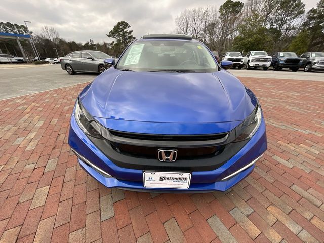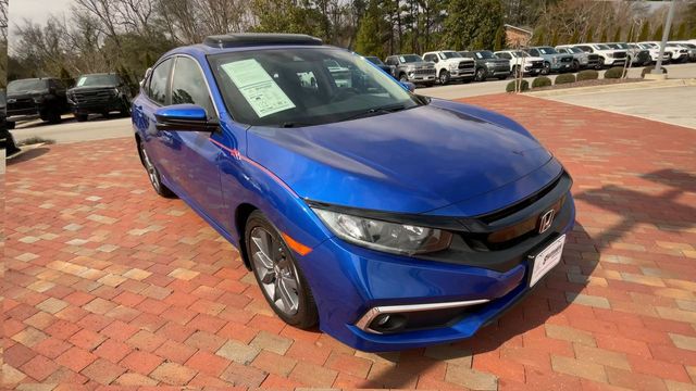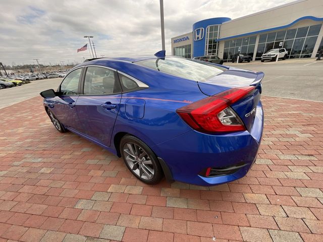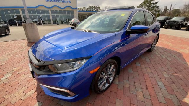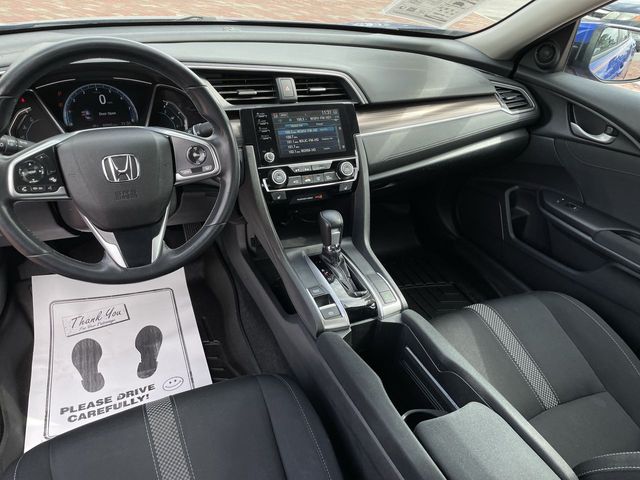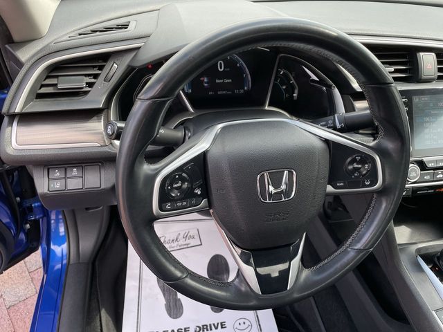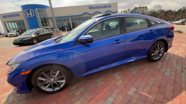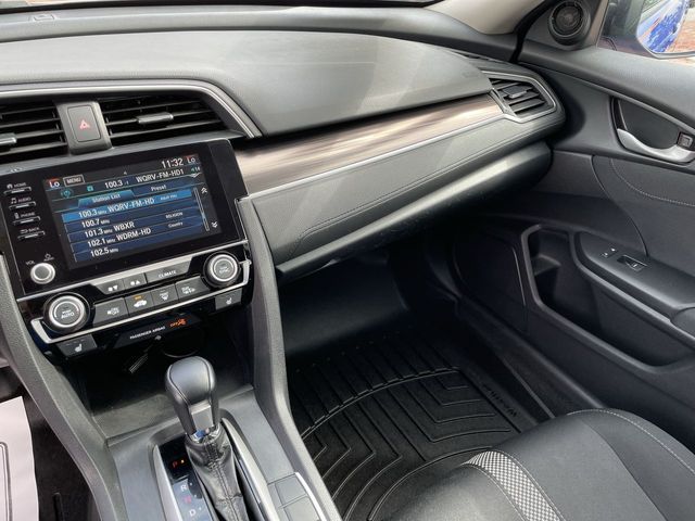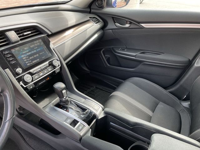 Recent Arrival! 2019 Honda Civic EX EX Aegean Blue 4D Sedan 1.5L I-4 DI DOHC Turbocharged CVT FWD This vehicle comes well equipped with 17" Alloy Wheels, 4-Wheel Disc Brakes, 8 Speakers, ABS brakes, Air Conditioning, Alloy wheels, AM/FM radio: XM, Apple CarPlay/Android Auto, Auto High-beam Headlights, Automatic temperature control, Brake assist, Bumpers: body-color, Cloth Seat Trim, Delay-off headlights, Driver door bin, Driver vanity mirror, Dual front impact airbags, Dual front side impact airbags, Electronic Stability Control, Emergency communication system: HondaLink, Exterior Parking Camera Rear, Forward collision: Collision Mitigation Braking System (CMBS) + FCW mitigation, Four wheel independent suspension, Front anti-roll bar, Front Bucket Seats, Front Center Armrest, Front dual zone A/C, Front fog lights, Front reading lights, Fully automatic headlights, Heated door mirrors, Heated Front Bucket Seats, Heated front seats, Illuminated entry, Lane departure: Lane Keeping Assist System (LKAS) active, Leather Shift Knob, Low tire pressure warning, Occupant sensing airbag, Outside temperature display, Overhead airbag, Overhead console, Panic alarm, Passenger door bin, Passenger vanity mirror, Power door mirrors, Power driver seat, Power moonroof, Power steering, Power windows, Radio data system, Radio: 180-Watt AM/FM/HD/SiriusXM Audio System, Rear anti-roll bar, Rear seat center armrest, Rear window defroster, Remote keyless entry, Security system, Speed control, Speed-sensing steering, Speed-Sensitive Wipers, Split folding rear seat, Spoiler, Steering wheel mounted audio controls, Tachometer, Telescoping steering wheel, Tilt steering wheel, Traction control, Trip computer, and Variably intermittent wipers.