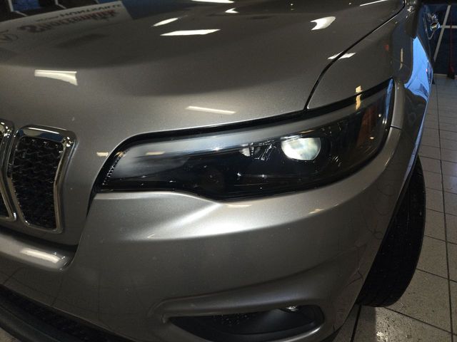 This **Billet Silver Metallic Clearcoat 2019 Jeep Cherokee Latitude FWD** brings bold SUV styling with a lowered, aggressive presence that instantly separates it from the ordinary. The tightened stance enhances its athletic profile, while the sculpted body lines, body-color bumpers, rear spoiler, and roof rails create a refined yet performance-inspired look that turns everyday driving into a statement.