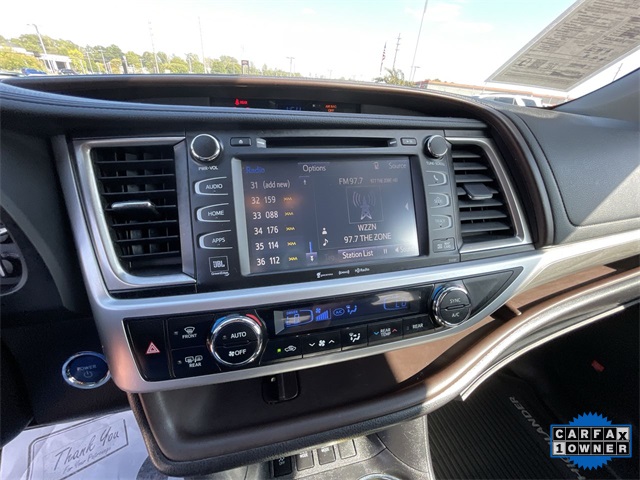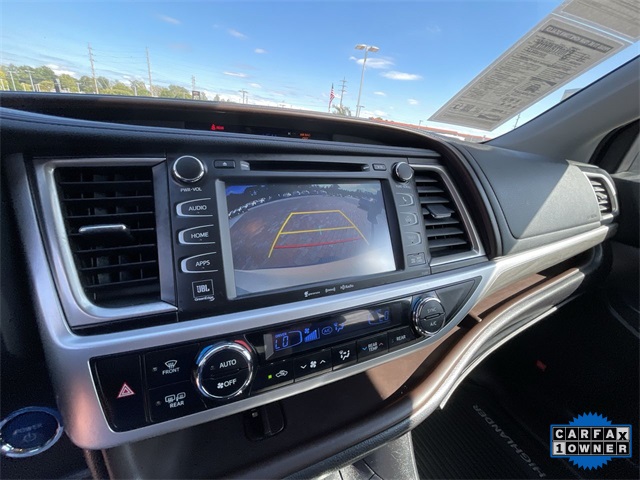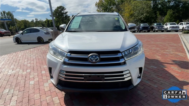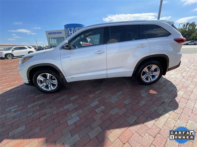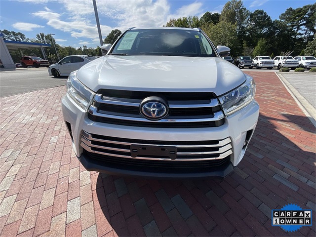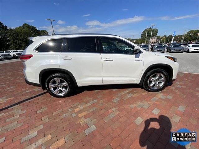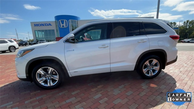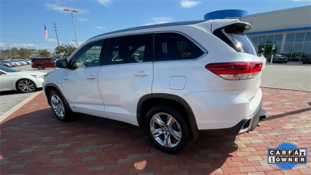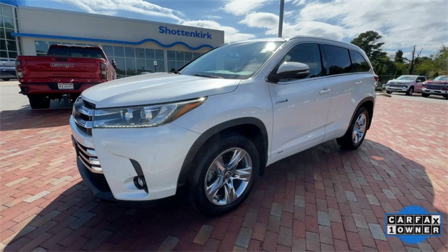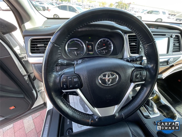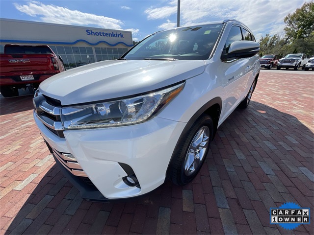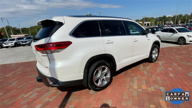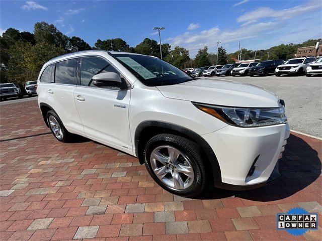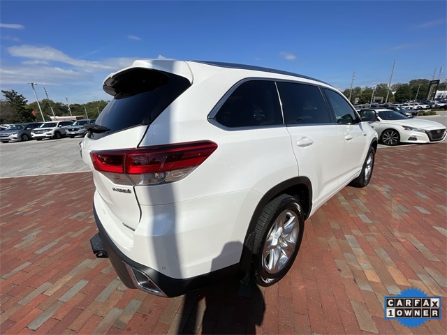 CARFAX One-Owner. 2019 Toyota Highlander Hybrid Limited Limited Blizzard Pearl 4D Sport Utility 3.5L V6 DOHC 24V eCVT AWD This vehicle comes well equipped with ABS brakes, Active Cruise Control, Alloy wheels, Electronic Stability Control, Front dual zone A/C, Heated door mirrors, Heated front seats, Heated/Ventilated Front Bucket Seats, Illuminated entry, Low tire pressure warning, Navigation System, Perforated Leather Seat Trim, Power Liftgate, Power moonroof, Remote keyless entry, and Traction control ABS brakes, Active Cruise Control, Alloy wheels, Electronic Stability Control, Front dual zone A/C, Heated door mirrors, Heated front seats, Heated/Ventilated Front Bucket Seats, Illuminated entry, Low tire pressure warning, Navigation System, Perforated Leather Seat Trim, Power Liftgate, Power moonroof, Remote keyless entry, Traction control, 12 Speakers, 3.542 Axle Ratio, 3rd row seats: split-bench, 4-Wheel Disc Brakes, Air Conditioning, AM/FM radio: SiriusXM, Auto High-beam Headlights, Auto-dimming Rear-View mirror, Automatic temperature control, Brake assist, Bumpers: body-color, CD player, Delay-off headlights, Driver door bin, Driver vanity mirror, Dual front impact airbags, Dual front side impact airbags, Exterior Parking Camera Rear, Four wheel independent suspension, Front anti-roll bar, Front Bucket Seats, Front Center Armrest, Front fog lights, Front reading lights, Fully automatic headlights, Garage door transmitter: HomeLink, Knee airbag, Leather Shift Knob, Memory seat, Occupant sensing airbag, Outside temperature display, Overhead airbag, Overhead console, Panic alarm, Passenger door bin, Passenger vanity mirror, Power door mirrors, Power driver seat, Power passenger seat, Power steering, Power windows, Radio: Entune Premium JBL Audio w/Nav & App Suite, Rear air conditioning, Rear anti-roll bar, Rear Parking Sensors, Rear reading lights, Rear window defroster, Rear window wiper, Reclining 3rd row seat, Roof rack: rails only, Security system, Speed control, Speed-sensing steering, Split folding rear seat, Spoiler, Steering wheel mounted audio controls, Telescoping steering wheel, Tilt steering wheel, Trip computer, Turn signal indicator mirrors, Variably intermittent wipers, Ventilated front seats, and Wheels: 19" 5-Spoke Chromtec Alloy.