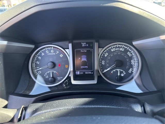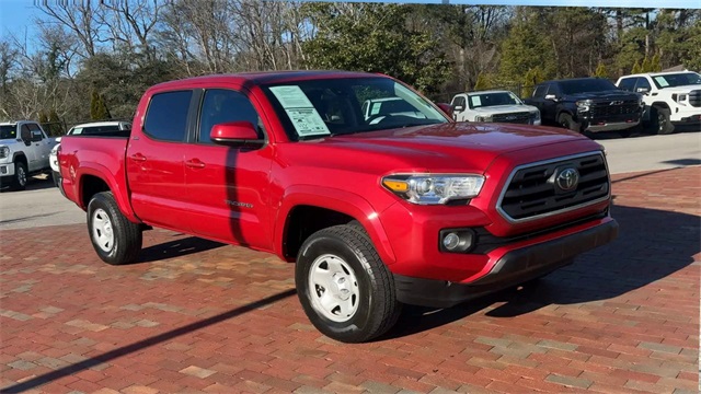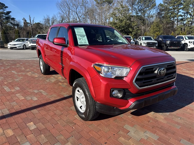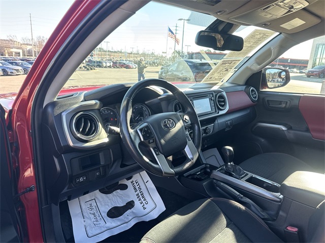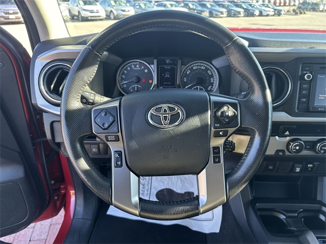 2019 Toyota Tacoma SR5 V6 SR5 Barcelona Red Metallic 4D Double Cab V6 3.5L V6 PDI DOHC 24V LEV3-ULEV70 278hp 6-Speed Automatic RWD This vehicle comes well equipped with ABS brakes, Active Cruise Control, Alloy wheels, Electronic Stability Control, Illuminated entry, Low tire pressure warning, Remote keyless entry, and Traction control ABS brakes, Active Cruise Control, Alloy wheels, Electronic Stability Control, Illuminated entry, Low tire pressure warning, Remote keyless entry, Traction control, 16" Silver Alloy Wheels, 6 Speakers, Air Conditioning, AM/FM radio: SiriusXM, Anti-whiplash front head restraints, Auto High-beam Headlights, Auto-dimming Rear-View mirror, Axle Ratio: 3.91, Brake assist, Bumpers: body-color, CD player, Driver door bin, Dual front impact airbags, Dual front side impact airbags, Exterior Parking Camera Rear, Fabric Seat Trim (FC), Front anti-roll bar, Front Bucket Seats, Front Center Armrest, Front fog lights, Front reading lights, Front wheel independent suspension, Knee airbag, Occupant sensing airbag, Outside temperature display, Overhead airbag, Overhead console, Panic alarm, Passenger door bin, Power door mirrors, Power steering, Power windows, Radio: Entune Plus AM/FM/CD w/HD Radio, Rear step bumper, Speed control, Speed-sensing steering, Split folding rear seat, Steering wheel mounted audio controls, Tachometer, Telescoping steering wheel, Tilt steering wheel, Trip computer, and Variably intermittent wipers.
