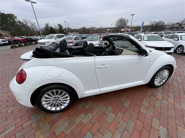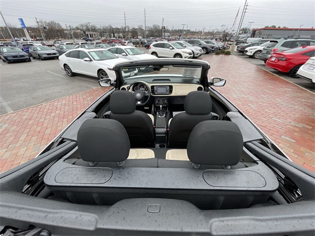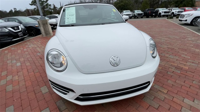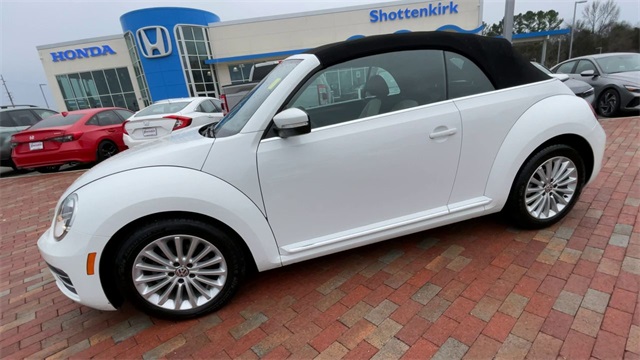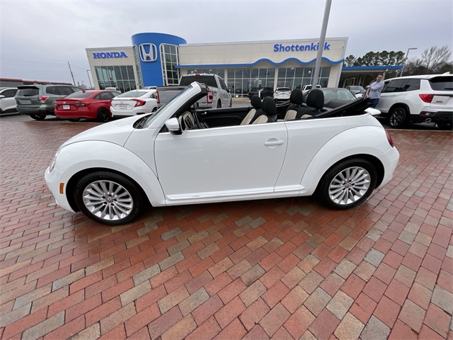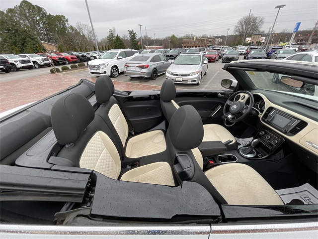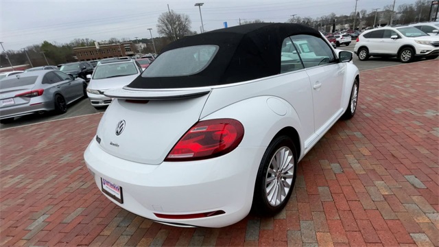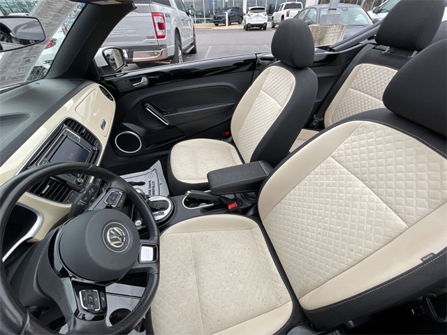 2019 Volkswagen Beetle Convertible 2.0T SE 2.0T SE Pure White/Black Roof 2D Convertible 2.0L TSI 6-Speed Automatic with Tiptronic FWD This vehicle comes well equipped with ABS brakes, Alloy wheels, Electronic Stability Control, Front dual zone A/C, Heated door mirrors, Heated Front Comfort Seats, Heated front seats, Illuminated entry, Low tire pressure warning, Remote keyless entry, and Traction control ABS brakes, Alloy wheels, Electronic Stability Control, Front dual zone A/C, Heated door mirrors, Heated Front Comfort Seats, Heated front seats, Illuminated entry, Low tire pressure warning, Remote keyless entry, Traction control, 17" 10-Spoke Alloy Wheels, 4-Wheel Disc Brakes, 8 Speakers, Air Conditioning, AM/FM radio: SiriusXM, Auto-dimming Rear-View mirror, Automatic temperature control, Bodyside moldings, Brake assist, Bumpers: body-color, CD player, Convertible roof lining, Delay-off headlights, Driver door bin, Driver vanity mirror, Dual front impact airbags, Dual front side impact airbags, Emergency communication system: VW Car-Net services (capabilities require enrollment or subscription), Exterior Parking Camera Rear, Four wheel independent suspension, Front anti-roll bar, Front Bucket Seats, Front Center Armrest w/Storage, Front reading lights, Fully automatic headlights, Glass rear window, Integrated roll-over protection, Leather Shift Knob, Leather steering wheel, Occupant sensing airbag, Outside temperature display, Overhead airbag, Overhead console, Panic alarm, Passenger door bin, Passenger vanity mirror, Power convertible roof, Power door mirrors, Power steering, Power windows, Radio data system, Radio: AM/FM/HD 6.3" Touchscreen w/WMA/MP3/FLAC/CD, Rain sensing wipers, Rear anti-roll bar, Rear window defroster, Speed control, Speed-sensing steering, Speed-Sensitive Wipers, Split folding rear seat, Spoiler, Steering wheel mounted audio controls, Tachometer, Telescoping steering wheel, Tilt steering wheel, Trip computer, Turn signal indicator mirrors, V-Tex Leatherette Seating Surfaces, and Variably intermittent wipers.
