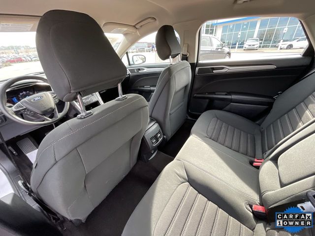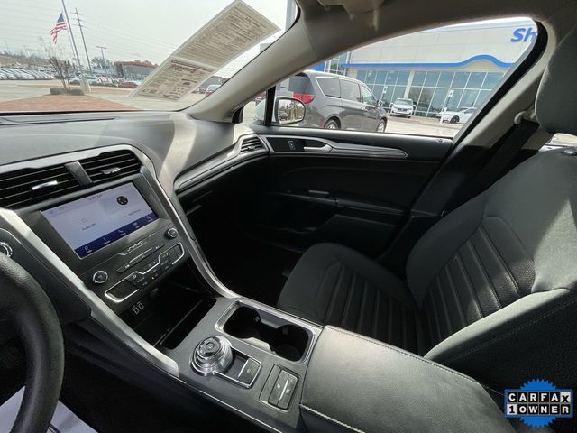 CARFAX One-Owner. 2020 Ford Fusion SE SE Oxford White 4D Sedan 1.5L EcoBoost 6-Speed Automatic FWD This vehicle comes well equipped with Equipment Group 150A, 4-Wheel Disc Brakes, 6 Speakers, ABS brakes, Air Conditioning, Alloy wheels, AM/FM radio: SiriusXM, Auto High-beam Headlights, Auto Start-Stop Technology, Auto-dimming Rear-View mirror, Automatic temperature control, Brake assist, Bumpers: body-color, Cloth Front Bucket Seats, Compass, Delay-off headlights, Driver door bin, Driver vanity mirror, Dual front impact airbags, Dual front side impact airbags, Electronic Stability Control, Emergency communication system: SYNC 3 911 Assist, Exterior Parking Camera Rear, Four wheel independent suspension, Front anti-roll bar, Front Bucket Seats, Front Center Armrest, Front dual zone A/C, Front License Plate Bracket, Front reading lights, Fully automatic headlights, Illuminated entry, Knee airbag, Low tire pressure warning, Occupant sensing airbag, Outside temperature display, Overhead airbag, Overhead console, Panic alarm, Passenger door bin, Passenger vanity mirror, Power door mirrors, Power driver seat, Power steering, Power windows, Radio data system, Radio: AM/FM/MP3 Stereo, Rain sensing wipers, Rear anti-roll bar, Rear reading lights, Rear seat center armrest, Rear window defroster, Remote keyless entry, Security system, SiriusXM Radio, Speed control, Speed-sensing steering, Speed-Sensitive Wipers, Split folding rear seat, Steering wheel mounted audio controls, SYNC 3 Communications & Entertainment System, Tachometer, Telescoping steering wheel, Tilt steering wheel, Traction control, Trip computer, Variably intermittent wipers, and Wheels: 17" Sparkle Silver-Painted Aluminum.