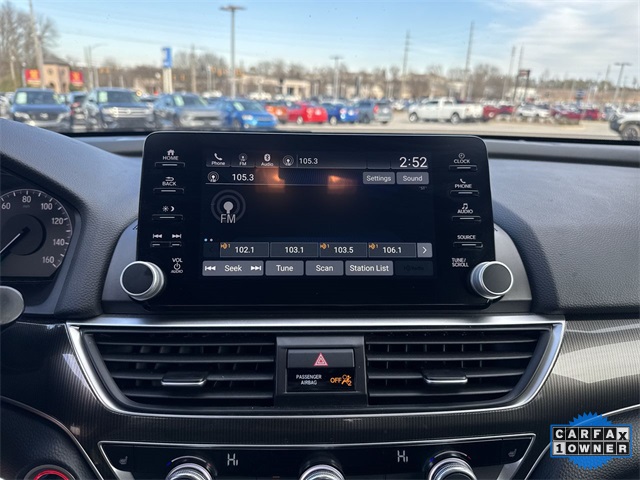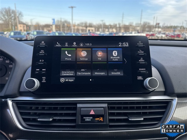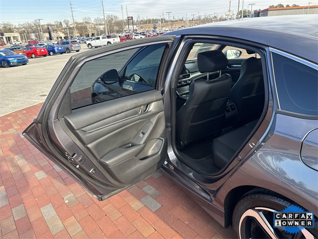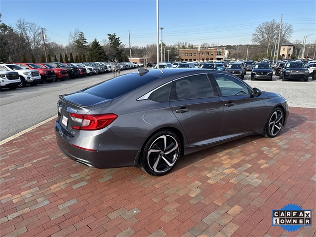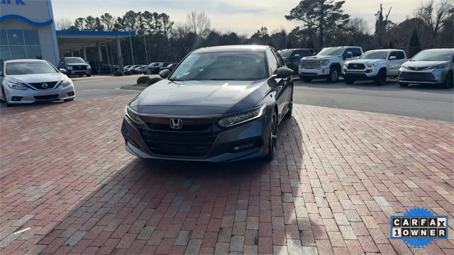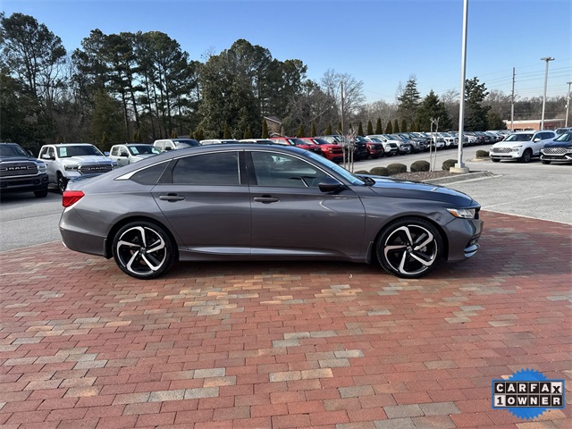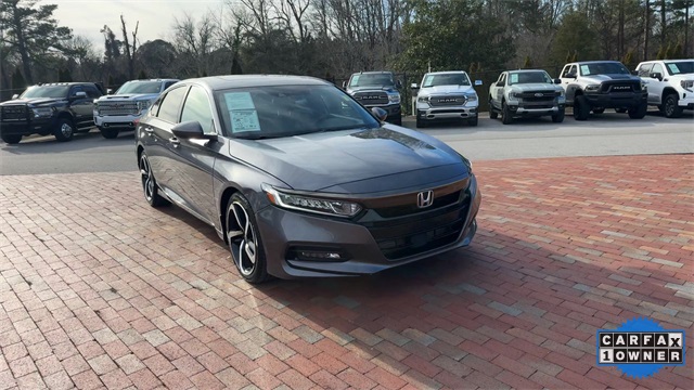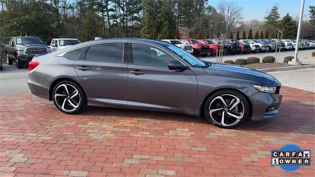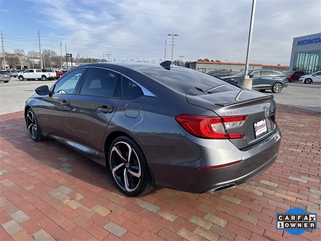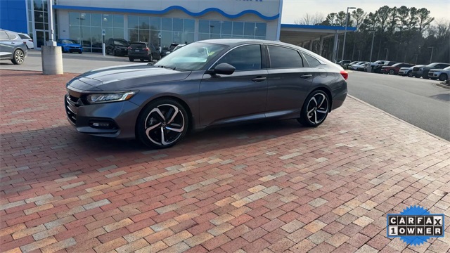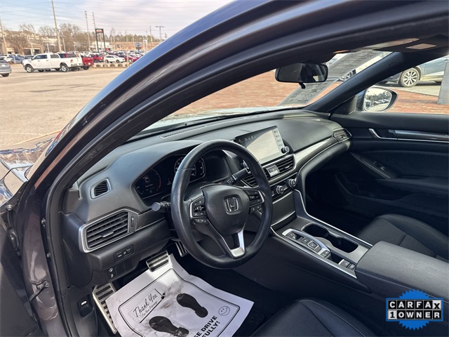 CARFAX One-Owner. 2020 Honda Accord Sport 2.0T Sport 2.0T Modern Steel Metallic 4D Sedan I4 DOHC 16V Turbocharged 10-Speed Automatic FWD This vehicle comes well equipped with 4-Wheel Disc Brakes, 8 Speakers, ABS brakes, Adaptive Cruise Control: Adaptive Cruise Control (ACC) with Low-Speed Follow, Air Conditioning, Alloy wheels, AM/FM radio: SiriusXM, Apple CarPlay/Android Auto, Auto High-beam Headlights, Automatic temperature control, Blind Spot Information (BSI) System warning, Brake assist, Bumpers: body-color, Cloth Seat Trim, Delay-off headlights, Driver door bin, Driver vanity mirror, Dual front impact airbags, Dual front side impact airbags, Electronic Stability Control, Emergency communication system: HondaLink, Exterior Parking Camera Rear, Forward collision: Collision Mitigation Braking System (CMBS) + FCW mitigation, Four wheel independent suspension, Front anti-roll bar, Front Bucket Seats, Front Center Armrest, Front dual zone A/C, Front fog lights, Front reading lights, Fully automatic headlights, Heated door mirrors, Heated Front Bucket Seats, Heated front seats, Illuminated entry, Knee airbag, Lane Departure Warning System, Leather Shift Knob, Leather steering wheel, Low tire pressure warning, Occupant sensing airbag, Outside temperature display, Overhead airbag, Overhead console, Panic alarm, Passenger door bin, Passenger vanity mirror, Power door mirrors, Power driver seat, Power moonroof, Power steering, Power windows, Radio data system, Radio: 180-Watt AM/FM/HD/SiriusXM Audio System, Rear anti-roll bar, Rear seat center armrest, Rear window defroster, Remote keyless entry, Security system, Speed control, Speed-sensing steering, Speed-Sensitive Wipers, Split folding rear seat, Spoiler, Steering wheel mounted audio controls, Tachometer, Telescoping steering wheel, Tilt steering wheel, Traction control, Trip computer, Variably intermittent wipers, and Wheels: 19" Machine-Finished Alloy w/Black Inserts.