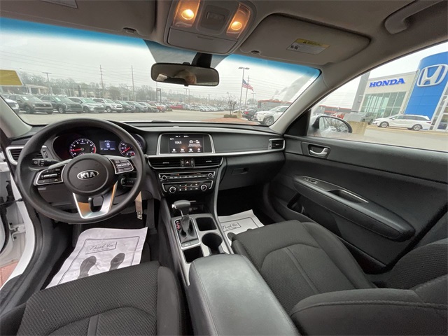 2020 Kia Optima LX LX Snow White Pearl 4D Sedan 2.4L I4 DGI DOHC 6-Speed Automatic with Sportmatic FWD This vehicle comes well equipped with 4-Wheel Disc Brakes, 6 Speakers, 6.5J x 16" Silver Alloy Wheels, ABS brakes, Air Conditioning, Alloy wheels, AM/FM radio, Anti-whiplash front head restraints, Apple CarPlay & Android Auto, Auto High-beam Headlights, Brake assist, Bumpers: body-color, Carpet Floor Mats, Cloth Seat Trim, Delay-off headlights, Driver door bin, Driver vanity mirror, Dual front impact airbags, Dual front side impact airbags, Electronic Stability Control, Four wheel independent suspension, Front anti-roll bar, Front Bucket Seats, Front Center Armrest, Front reading lights, Fully automatic headlights, Heated door mirrors, Illuminated entry, Knee airbag, Low tire pressure warning, Occupant sensing airbag, Outside temperature display, Overhead airbag, Overhead console, Panic alarm, Passenger door bin, Passenger vanity mirror, Power door mirrors, Power steering, Power windows, Radio data system, Radio: AM/FM/MP3 Audio System, Rear anti-roll bar, Rear seat center armrest, Rear window defroster, Remote keyless entry, Security system, Speed control, Speed-sensing steering, Split folding rear seat, Steering wheel mounted audio controls, Tachometer, Telescoping steering wheel, Tilt steering wheel, Traction control, Trip computer, Turn signal indicator mirrors, Variably intermittent wipers, and Wheel Locks.