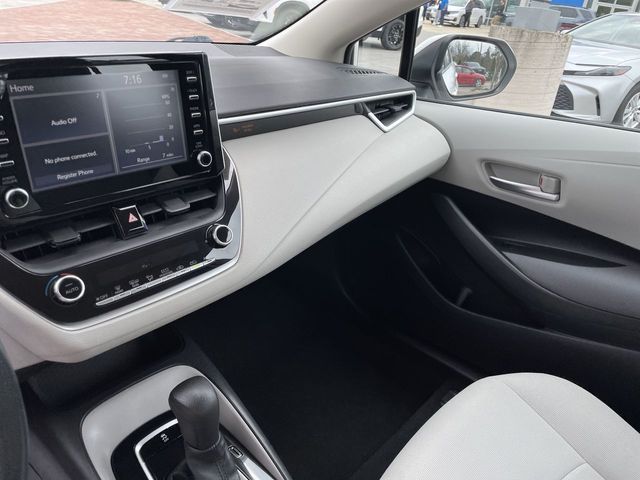 Recent Arrival! CARFAX One-Owner. 2020 Toyota Corolla LE LE Super White 4D Sedan 1.8L I4 DOHC 16V CVT FWD This vehicle comes well equipped with 4-Wheel Disc Brakes, 6 Speakers, ABS brakes, Air Conditioning, AM/FM radio: SiriusXM, Apple CarPlay, Auto High-beam Headlights, Automatic temperature control, Brake assist, Bumpers: body-color, Delay-off headlights, Driver door bin, Driver vanity mirror, Dual front impact airbags, Dual front side impact airbags, Electronic Stability Control, Emergency communication system: Safety Connect with 3-year trial, Exterior Parking Camera Rear, Four wheel independent suspension, Front anti-roll bar, Front Bucket Seats, Front Center Armrest, Front reading lights, Fully automatic headlights, Illuminated entry, Knee airbag, Low tire pressure warning, Occupant sensing airbag, Outside temperature display, Overhead airbag, Panic alarm, Passenger door bin, Passenger vanity mirror, Power door mirrors, Power steering, Power windows, Premium Fabric Seat Trim, Radio data system, Radio: Audio AM/FM w/Navigation, Rear anti-roll bar, Rear seat center armrest, Rear window defroster, Remote keyless entry, Security system, Speed control, Split folding rear seat, Steering wheel mounted audio controls, Tachometer, Telescoping steering wheel, Tilt steering wheel, Traction control, Trip computer, Variably intermittent wipers, and Wheels: 16" Wide Vent Steel.