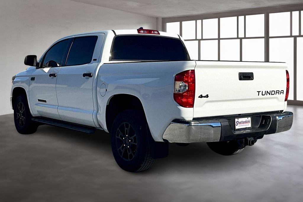 Tundra SR5, 4D CrewMax, i-Force 5.7L V8 DOHC 32V LEV, 6-Speed Automatic Electronic, 4WD, White, 18" Styled Steel Wheels, 4-Wheel Disc Brakes, 9 Speakers, ABS brakes, Active Cruise Control, Air Conditioning, AM/FM radio: SiriusXM, Apple CarPlay/Android Auto, Auto-dimming Rear-View mirror, Compass, Electronic Stability Control, Emergency communication system: Safety Connect with 1-year trial, Exterior Parking Camera Rear, Fabric Seat Trim, Front Center Armrest w/Storage, Front fog lights, Fully automatic headlights, Garage door transmitter: HomeLink, Heated door mirrors, Illuminated entry, Low tire pressure warning, Occupant sensing airbag, Outside temperature display, Overhead console, Power door mirrors, Power windows, Radio: Audio Plus AM/FM/HD Radio, Rear step bumper, Remote keyless entry, Safety Connect, SiriusXM Radio, Steering wheel mounted audio controls, Traction control.