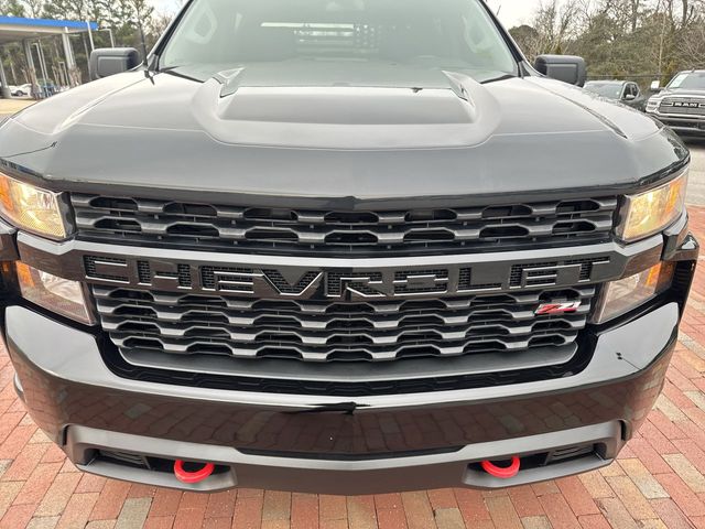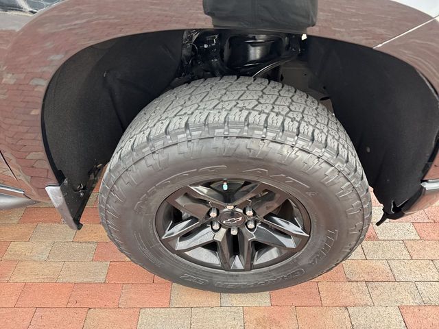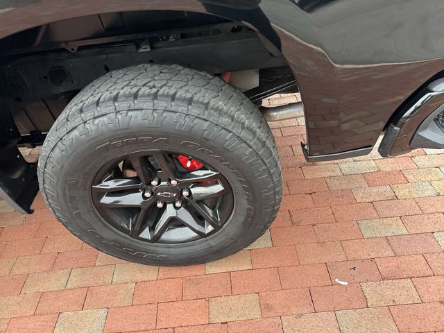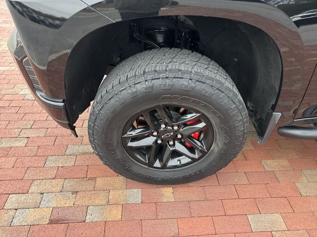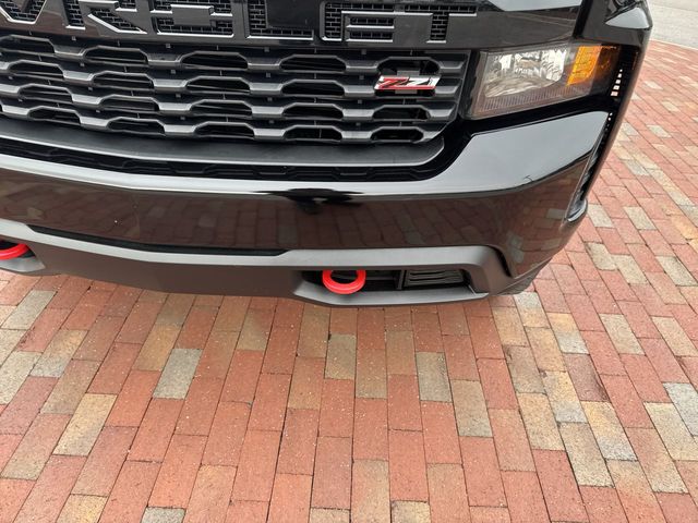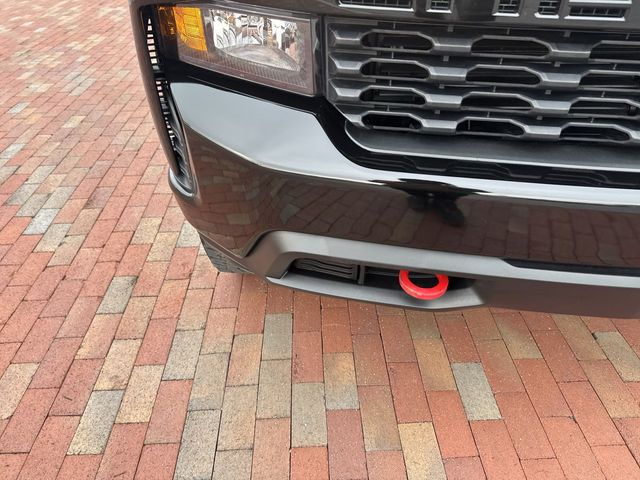 2021 Chevrolet Silverado 1500 Custom Trail Boss Custom Trail Boss Black 4D Crew Cab EcoTec3 5.3L V8 6-Speed Automatic Electronic with Overdrive 4WD This vehicle comes well equipped with Custom Convenience Package (Electric Rear-Window Defogger, EZ Lift Power Lock & Release Tailgate, LED Cargo Area Lighting, Remote Vehicle Starter System, and Theft Deterrent System (Unauthorized Entry)), Infotainment Package (4G LTE Wi-Fi Hot Spot Capable, Chevrolet Connected Access Capable, OnStar & Chevrolet Connected Services Capable, and SiriusXM Radio), Preferred Equipment Group 2CX (170 Amp Alternator, 3.5" Diagonal Monochromatic Display, Auto-Locking Rear Differential, Bluetooth® For Phone, Color-Keyed Carpeting Floor Covering, Compass, Deep-Tinted Glass, Electronic Cruise Control, Front Rubberized Vinyl Floor Mats, High Gloss Black Grille, Manual Tilt Wheel Steering Column, Performance Red Recovery Hooks, Power Door Locks, Power Front Windows w/Driver Express Up/Down, Power Front Windows w/Passenger Express Down, Power Rear Windows w/Express Down, Rear 60/40 Folding Bench Seat (Folds Up), Rear Rubberized-Vinyl Floor Mats, Remote Keyless Entry, and Standard Tailgate), Suspension Package (Heavy-Duty Air Filter and Hill Descent Control), Trailering Package (Hitch Guidance), 3.42 Rear Axle Ratio, 4-Wheel Disc Brakes, 40/20/40 Front Split Bench Seat, 6 Speakers, ABS brakes, Air Conditioning, Alloy wheels, AM/FM radio: SiriusXM, Apple CarPlay/Android Auto, Auxiliary External Transmission Oil Cooler, Brake assist, Cloth Seat Trim, Delay-off headlights, Driver door bin, Driver vanity mirror, Dual Exhaust w/Polished Outlets, Dual front impact airbags, Dual front side impact airbags, Electronic Stability Control, Front anti-roll bar, Front Center Armrest w/Storage, Front License Plate Kit, Front reading lights, Front wheel independent suspension, Fully automatic headlights, Heated door mirrors, Illuminated entry, Integrated Trailer Brake Controller, Low tire pressure warning, Not Equipped w/Active Fuel Management, Occupant sensing airbag, Off-Road Suspension w/2" Lift, Outside temperature display, Overhead airbag, Overhead console, Panic alarm, Passenger door bin, Passenger vanity mirror, Polished Exhaust Tip, Power door mirrors, Power steering, Power windows, Premium audio system: Chevrolet Infotainment 3, Radio data system, Radio: Chevrolet Infotainment 3 System, Rear reading lights, Rear step bumper, Rear window defroster, Remote keyless entry, Security system, Speed control, Speed-sensing steering, Split folding rear seat, Tachometer, Tilt steering wheel, Traction control, Trip computer, Variably intermittent wipers, Voltmeter, and Wheels: 18" x 8.5" Black Painted Aluminum.