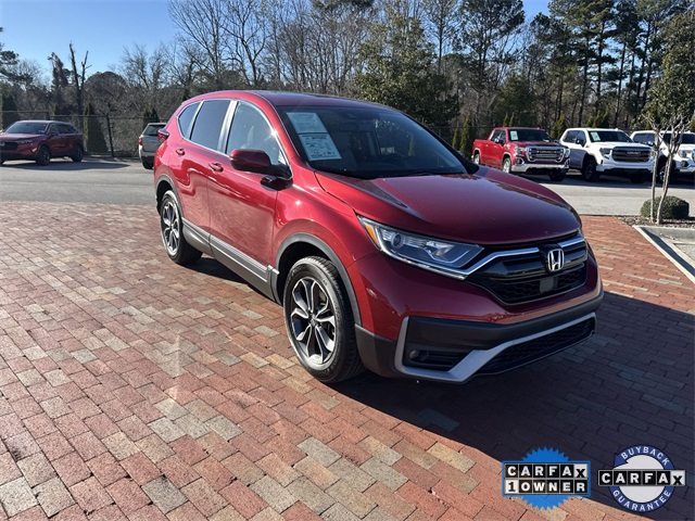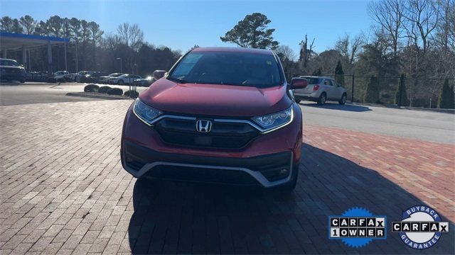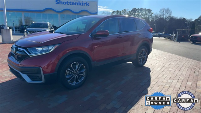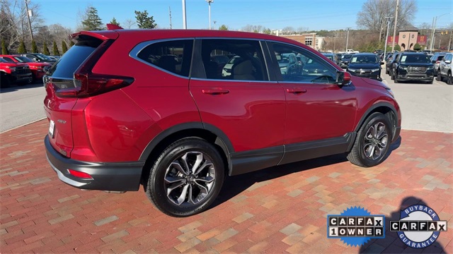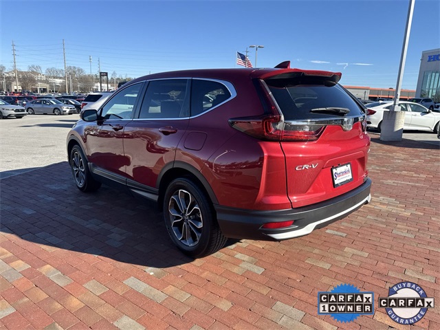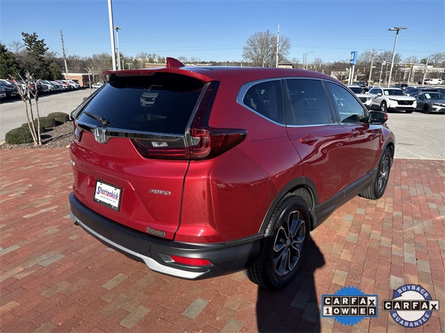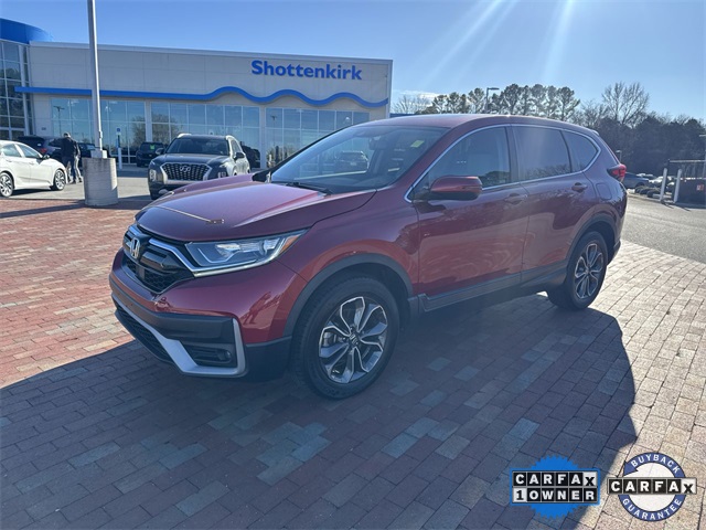 CARFAX One-Owner. Certified. 2021 Honda CR-V EX-L EX-L Radiant Red Metallic 4D Sport Utility 1.5L I4 DOHC 16V CVT AWD This vehicle comes well equipped with 18" Alloy Wheels, 4-Wheel Disc Brakes, 5.64 Axle Ratio, 8 Speakers, ABS brakes, Adaptive Cruise Control: Adaptive Cruise Control (ACC) with Low-Speed Follow, Air Conditioning, Alloy wheels, AM/FM radio: SiriusXM, Apple CarPlay/Android Auto, Auto High-beam Headlights, Auto-dimming Rear-View mirror, Automatic temperature control, Blind Spot Information (BSI) System warning, Brake assist, Bumpers: body-color, Compass, Delay-off headlights, Driver door bin, Driver vanity mirror, Dual front impact airbags, Dual front side impact airbags, Electronic Stability Control, Exterior Parking Camera Rear, Forward collision: Collision Mitigation Braking System (CMBS) + FCW mitigation, Four wheel independent suspension, Front anti-roll bar, Front Bucket Seats, Front Center Armrest, Front dual zone A/C, Front fog lights, Front reading lights, Garage door transmitter: HomeLink, Heated door mirrors, Heated Front Bucket Seats, Heated front seats, Illuminated entry, Leather Seat Trim, Leather Shift Knob, Low tire pressure warning, Memory seat, Occupant sensing airbag, Outside temperature display, Overhead airbag, Overhead console, Panic alarm, Passenger door bin, Passenger vanity mirror, Power door mirrors, Power driver seat, Power Liftgate, Power moonroof, Power passenger seat, Power steering, Power windows, Radio data system, Radio: 180-Watt AM/FM/HD/SiriusXM Audio System, Rear anti-roll bar, Rear seat center armrest, Rear window defroster, Rear window wiper, Remote keyless entry, Security system, Speed control, Speed-sensing steering, Speed-Sensitive Wipers, Split folding rear seat, Spoiler, Steering wheel mounted audio controls, Tachometer, Telescoping steering wheel, Tilt steering wheel, Traction control, Trip computer, Turn signal indicator mirrors, and Variably intermittent wipers.