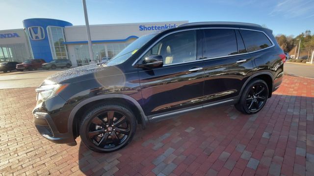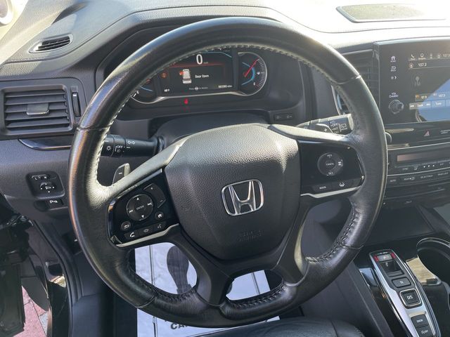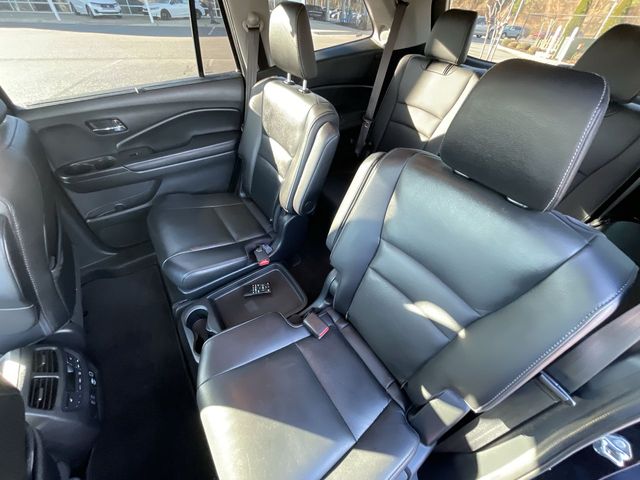 CARFAX One-Owner. 2021 Honda Pilot Touring 7 Passenger Touring Crystal Black Pearl 4D Sport Utility 7 Passenger 3.5L V6 24V SOHC i-VTEC 9-Speed Automatic FWD This vehicle comes well equipped with 10 Speakers, 3rd row seats: split-bench, 4-Wheel Disc Brakes, 4.33 Axle Ratio, A/V remote: CabinControl, ABS brakes, Air Conditioning, Alloy wheels, AM/FM radio: SiriusXM, Apple CarPlay/Android Auto, Auto High-beam Headlights, Auto-dimming Rear-View mirror, Automatic temperature control, Blind Spot Information (BSI) System warning, Brake assist, Bumpers: body-color, Compass, Delay-off headlights, Driver door bin, Driver vanity mirror, Dual front impact airbags, Dual front side impact airbags, Electronic Stability Control, Emergency communication system: HondaLink, Exterior Parking Camera Rear, Forward collision: Collision Mitigation Braking System (CMBS) + FCW mitigation, Four wheel independent suspension, Front anti-roll bar, Front Bucket Seats, Front Center Armrest, Front dual zone A/C, Front fog lights, Front reading lights, Fully automatic headlights, Garage door transmitter: HomeLink, Headphones, Heated door mirrors, Heated Front Bucket Seats, Heated front seats, Heated rear seats, Honda Satellite-Linked Navigation System, Illuminated entry, Lane departure: Lane Keeping Assist System (LKAS) active, Leather Seat Trim, Low tire pressure warning, Memory seat, Navigation system: Honda Satellite-Linked Navigation System, Occupant sensing airbag, Outside temperature display, Overhead airbag, Overhead console, Panic alarm, Passenger door bin, Passenger vanity mirror, Power door mirrors, Power driver seat, Power Liftgate, Power moonroof, Power passenger seat, Power steering, Power windows, Radio data system, Radio: 590-Watt Premium Audio System, Rear air conditioning, Rear anti-roll bar, Rear audio controls, Rear reading lights, Rear window defroster, Rear window wiper, Reclining 3rd row seat, Remote keyless entry, Roof rack: rails only, Security system, Speed control, Speed-sensing steering, Speed-Sensitive Wipers, Split folding rear seat, Spoiler, Steering wheel mounted audio controls, Tachometer, Telescoping steering wheel, Tilt steering wheel, Traction control, Trip computer, Turn signal indicator mirrors, Variably intermittent wipers, and Wheels: 20" Machine-Finished Alloy.