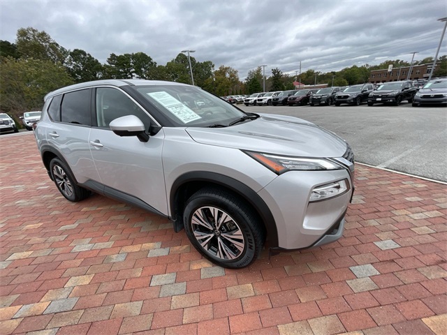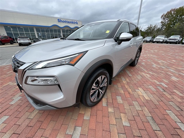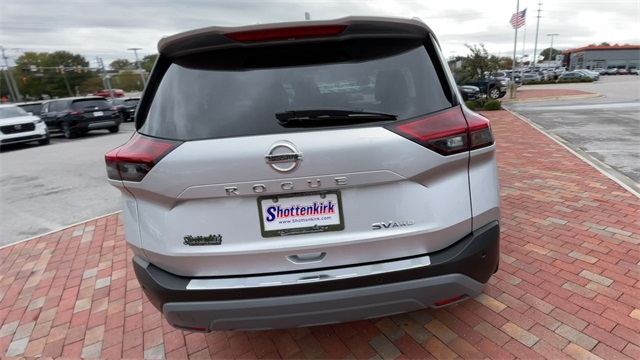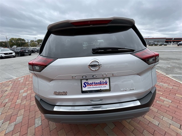 2021 Nissan Rogue SV SV Brilliant Silver Metallic 4D Sport Utility 2.5L I4 DOHC 16V CVT with Xtronic AWD This vehicle comes well equipped with 18" Aluminum Alloy Wheels, 4-Wheel Disc Brakes, 5.604 Axle Ratio, 6 Speakers, ABS brakes, Air Conditioning, Alloy wheels, AM/FM Radio, AM/FM radio, Auto High-beam Headlights, Automatic temperature control, Black Splash Guards (Set of 4), Brake assist, Bumpers: body-color, Chrome Rear Bumper Protector, Cloth Seat Trim, Delay-off headlights, Driver door bin, Driver vanity mirror, Dual front impact airbags, Dual front side impact airbags, Electronic Stability Control, Emergency communication system: NissanConnect Services, First Aid Kit, Floor Mats w/1-Piece Cargo Area Protector, Four wheel independent suspension, Front anti-roll bar, Front Bucket Seats, Front Center Armrest, Front dual zone A/C, Front reading lights, Fully automatic headlights, Heated door mirrors, Illuminated entry, Knee airbag, Low tire pressure warning, NissanConnect featuring Apple CarPlay and Android Auto, Occupant sensing airbag, Outside temperature display, Overhead airbag, Overhead console, Panic alarm, Passenger door bin, Passenger vanity mirror, Power door mirrors, Power driver seat, Power steering, Power windows, Radio data system, Rear anti-roll bar, Rear Parking Sensors, Rear seat center armrest, Rear side impact airbag, Rear window defroster, Rear window wiper, Remote keyless entry, Security system, Speed control, Speed-Sensitive Wipers, Split folding rear seat, Spoiler, Steering wheel mounted audio controls, Tachometer, Telescoping steering wheel, Tilt steering wheel, Traction control, Trip computer, Turn signal indicator mirrors, and Variably intermittent wipers.