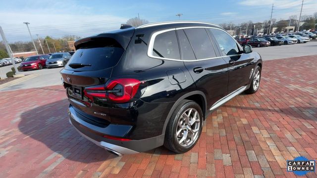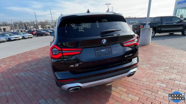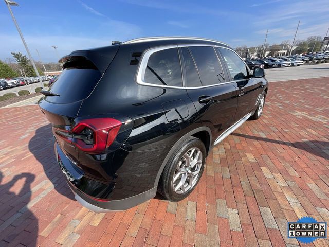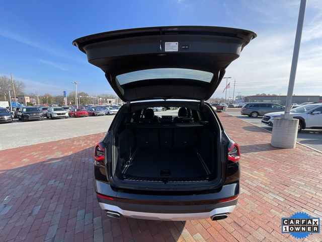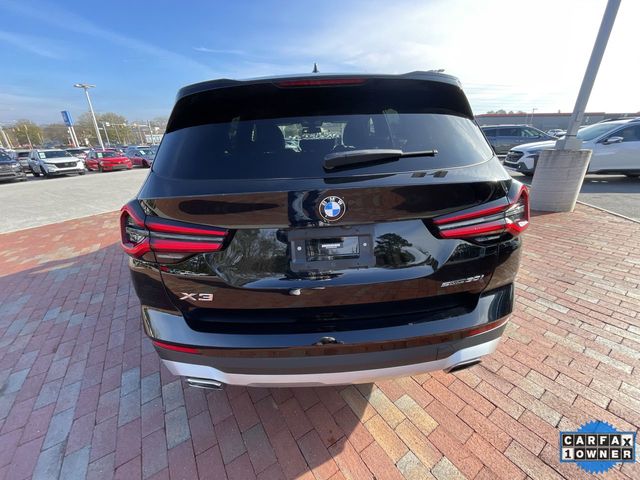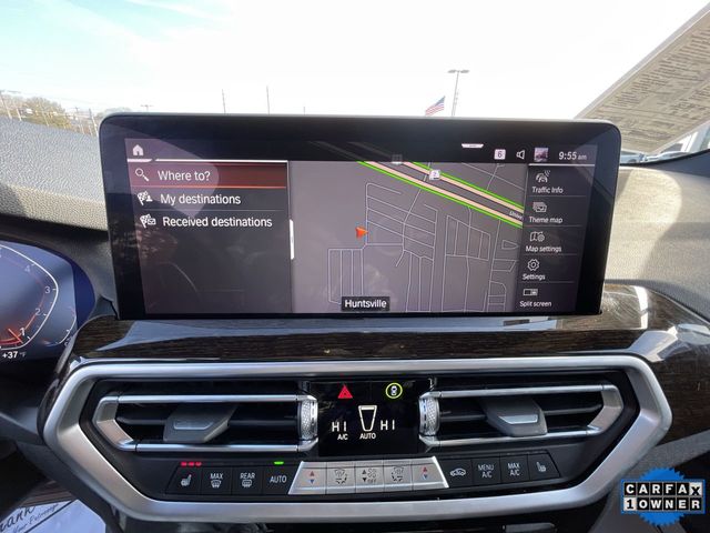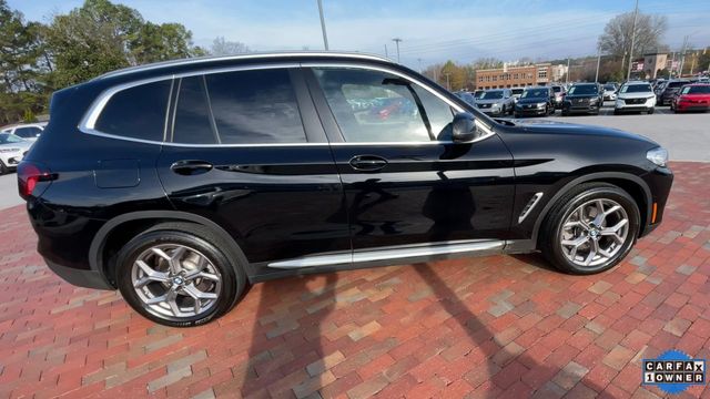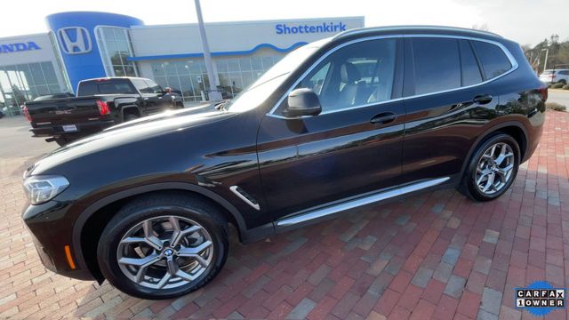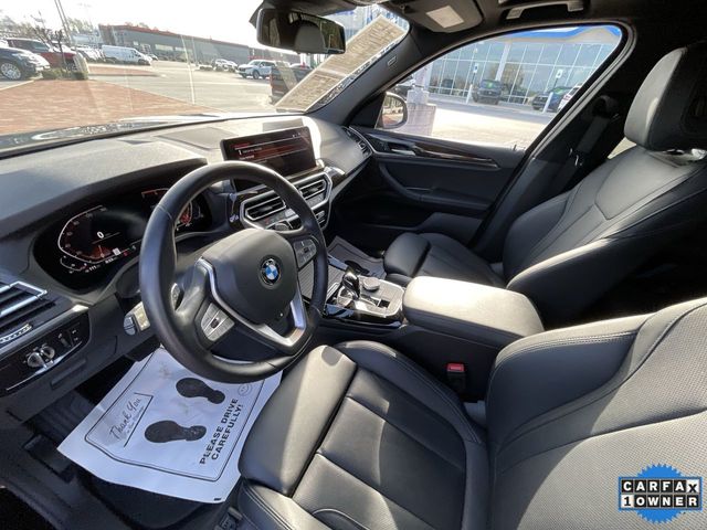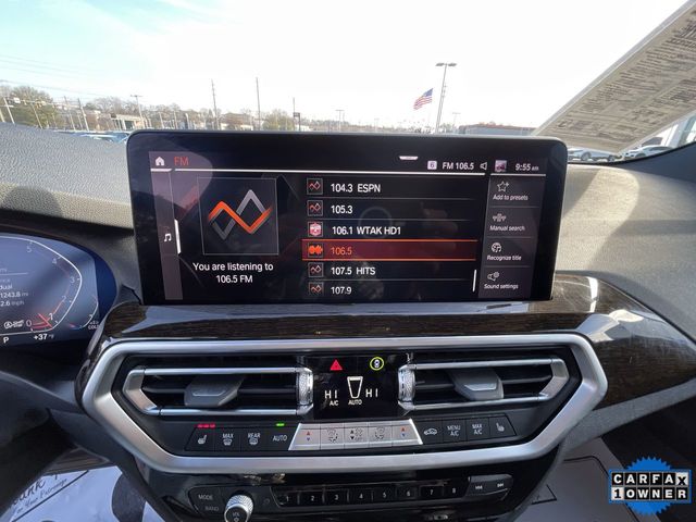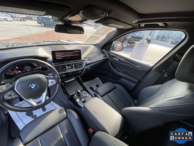 CARFAX One-Owner. 2022 BMW X3 sDrive30i sDrive30i Jet Black 4D Sport Utility 2.0L I4 TwinPower Turbo 8-Speed Automatic Sport RWD This vehicle comes well equipped with Connected Package Pro, Premium Package 2 (ZPA) (Gesture Control, Heated Front Seats, Heated Steering Wheel, Lumbar Support, Panoramic Moonroof (ZPA), and Reinforced Brakes), 12 Speakers, 3.385 Axle Ratio, 4-Wheel Disc Brakes, ABS brakes, Air Conditioning, Alloy wheels, AM/FM Radio, AM/FM radio: SiriusXM with 360L, Apple CarPlay & Android Auto Compatibility, Auto High-beam Headlights, Auto-dimming door mirrors, Auto-dimming Rear-View mirror, Automatic temperature control, BMW Assist eCall, BMW TeleServices, Brake assist, Bumpers: body-color, Comfort Access Keyless Entry, ConnectedDrive Services, Delay-off headlights, Driver door bin, Driver vanity mirror, Dual front impact airbags, Dual front side impact airbags, Electronic Stability Control, Emergency communication system: BMW Assist eCall, Enhanced Bluetooth, Exterior Parking Camera Rear, Four wheel independent suspension, Front anti-roll bar, Front Bucket Seats, Front Center Armrest, Front dual zone A/C, Front reading lights, Fully automatic headlights, Garage door transmitter, Genuine wood dashboard insert, Genuine wood door panel insert, Heated door mirrors, Hi-Fi Sound System, Illuminated entry, Knee airbag, Live Cockpit Pro w/Navigation, Low tire pressure warning, Memory seat, Navigation, Navigation System, Occupant sensing airbag, Outside temperature display, Overhead airbag, Panic alarm, Passenger door bin, Passenger vanity mirror, Perforated SensaTec Upholstery, Power door mirrors, Power driver seat, Power Front Seats, Power Liftgate, Power passenger seat, Power steering, Power windows, Radio data system, Rain sensing wipers, Rear air conditioning, Rear anti-roll bar, Rear Manual Side Window Shades, Rear reading lights, Rear seat center armrest, Rear window defroster, Rear window wiper, Remote Engine Start, Remote keyless entry, Roof rack: rails only, Security system, SiriusXM w/360L, Speed control, Speed-sensing steering, Speed-Sensitive Wipers, Split folding rear seat, Spoiler, Sport Seats, Sport steering wheel, Steering wheel mounted audio controls, Tachometer, Telescoping steering wheel, Tilt steering wheel, Traction control, Trip computer, Turn signal indicator mirrors, Variably intermittent wipers, Wheels: 19" x 7.5" Y-Spoke (Style 693), and WiFi Hotspot.