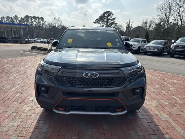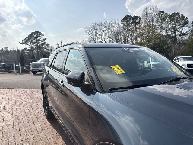 Recent Arrival! CARFAX One-Owner. 2022 Ford Explorer Timberline Timberline Blue Metallic 4D Sport Utility 2.3L EcoBoost I-4 10-Speed Automatic 4WD This vehicle comes well equipped with Equipment Group 800A, Timberline Technology Package (110V/150W AC Power Outlet, 3rd Row PowerFold Seat, Auto-Dimming Interior Rear-View Mirror, FordPass Connect, Radio: B&O Sound System by Bang & Olufsen, Sideview Mirrors w/Gloss Black Caps, SYNC 3 Communications & Entertainment System, Universal Garage Door Opener (UGDO), and Wireless Charging Pad), 1st Row Heated Seats, 2nd Row 35/30/35 Bench w/E-Z Entry & Armrest, 3.58 Torsen Limited Slip Rear Axle, 3rd row seats: bench, 4-Wheel Disc Brakes, 4G LTE Wi-Fi Hotspot Removal Credit, 6 Speakers, ABS brakes, ActiveX Seat Material Captain's Charis, Air Conditioning, Alloy wheels, AM/FM radio: SiriusXM, AM/FM Stereo, Auto High-beam Headlights, Auto Start-Stop Removal, Automatic temperature control, Brake assist, Bumpers: body-color, Compass, Delay-off headlights, Driver door bin, Driver vanity mirror, Dual front impact airbags, Dual front side impact airbags, Electronic Stability Control, Emergency communication system: SYNC 3 911 Assist, Exterior Parking Camera Rear, Four wheel independent suspension, Front anti-roll bar, Front Bucket Seats, Front Center Armrest, Front dual zone A/C, Front fog lights, Front reading lights, Fully automatic headlights, Heated door mirrors, Heated front seats, Heated rear seats, Heated steering wheel, Illuminated entry, Knee airbag, Leather steering wheel, Low tire pressure warning, Navigation System, Occupant sensing airbag, Outside temperature display, Overhead airbag, Overhead console, Panic alarm, Passenger door bin, Passenger vanity mirror, Power door mirrors, Power driver seat, Power Liftgate, Power passenger seat, Power steering, Power windows, Rear air conditioning, Rear anti-roll bar, Rear reading lights, Rear window defroster, Rear window wiper, Remote keyless entry, Roof rack: rails only, Security system, SelectShift Capability w/Paddle Shifters, Speed control, Speed-sensing steering, Speed-Sensitive Wipers, Split folding rear seat, Spoiler, Sport steering wheel, Steering wheel mounted audio controls, SYNC 3/Apple CarPlay/Android Auto, Tachometer, Telescoping steering wheel, Tilt steering wheel, Traction control, Trip computer, Twin Panel Moonroof, Variably intermittent wipers, Voice-Activated Touchscreen Navigation System, and Wheels: 18" High Gloss Black-Painted Aluminum.