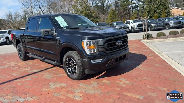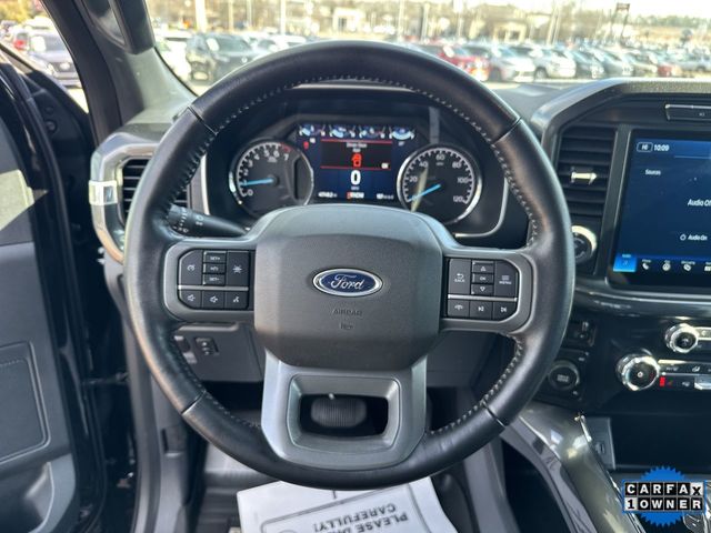 CARFAX One-Owner. 2022 Ford F-150 XLT XLT Black Metallic 4D SuperCrew 2.7L V6 EcoBoost 10-Speed Automatic 4WD This vehicle comes well equipped with Equipment Group 302A High (10-Way Power Driver & Passenger Seats, 8" Productivity Screen in Instrument Cluster, Auto-Dimming Rear-View Mirror, Class IV Trailer Hitch Receiver, Dual Zone Electronic Automatic Temperature Control, Heated Front Seats, Intelligent Access w/Push Button Start, Leather-Wrapped Steering Wheel, LED Reflector Headlamps, LED Sideview Mirror Spotlights, Onboard 400W Outlet, Power Glass Heated Sideview Mirrors, Radio: AM/FM SiriusXM w/360L, Rear Under-Seat Storage, SecuriCode Drivers Side Keyless-Entry Keypad, SYNC 4 w/Enhanced Voice Recognition, and Zone Lighting), GVWR: 6,470 lbs Payload Package, Tow Technology Package (360 Degree Camera, Integrated Trailer Brake Controller, and Pro Trailer Backup Assist), XLT Chrome Appearance Package (2-Bar Style Grille w/Chrome 2 Minor Bars, Bright Polished Step Bars, Chrome Door & Tailgate Handles w/Body-Color Bezel, Chrome Single-Tip Exhaust, and Wheels: 18" Chrome-Like PVD), XLT Sport Appearance Package (Accent-Color Step Bars, Black 2-Bar Style Grille w/Black Surround/Accents, Body-Color Door & Tailgate Handles, Body-Color Front & Rear Bumpers, Box Side Decals, Unique Sport Cloth 40/Console/40 Front-Seats, and Wheels: 18" 6-Spoke Machined Aluminum), 4-Wheel Disc Brakes, 6 Speakers, ABS brakes, Air Conditioning, Alloy wheels, AM/FM radio, Auto High-beam Headlights, Auto Start-Stop Removal, Brake assist, Bumpers: chrome, Cloth 40/20/40 Front Seat, Compass, Connected Built-In Navigation (DISC), Delay-off headlights, Driver door bin, Driver vanity mirror, Dual front impact airbags, Dual front side impact airbags, Electronic Stability Control, Emergency communication system: SYNC 4 911 Assist, Exterior Parking Camera Rear, Front anti-roll bar, Front Center Armrest w/Storage, Front fog lights, Front reading lights, Front wheel independent suspension, Fully automatic headlights, Heated door mirrors, Illuminated entry, Low tire pressure warning, Occupant sensing airbag, Outside temperature display, Overhead airbag, Overhead console, Panic alarm, Passenger door bin, Passenger vanity mirror, Power door mirrors, Power steering, Power windows, Power-Adjustable Pedals, Power-Sliding Rear Window, Radio data system, Radio: AM/FM Stereo w/6 Speakers, Rear reading lights, Rear step bumper, Rear window defroster, Remote keyless entry, Remote Start System, Security system, Speed control, Speed-sensing steering, Split folding rear seat, Steering wheel mounted audio controls, SYNC 4, Tachometer, Telescoping steering wheel, Tilt steering wheel, Traction control, Tray Style Floor Liner (47W), Trip computer, Variably intermittent wipers, Voltmeter, and Wheels: 17" Silver Painted Aluminum.