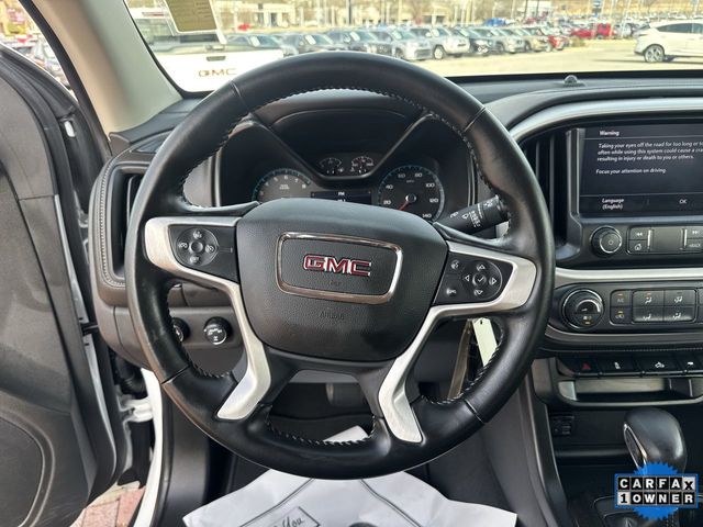 CARFAX One-Owner. 2022 GMC Canyon Elevation Elevation Summit White 4D Crew Cab V6 8-Speed Automatic 4WD This vehicle comes well equipped with Preferred Equipment Group 4LE (Hitch Guidance and Tow/Haul Mode), 2 USB Data Ports, 3.42 Rear Axle Ratio, 3" Round Black Off-Road Step Bars (LPO), 4-Wheel Disc Brakes, 6 Speakers, 6-Speaker Audio System Feature, ABS brakes, Air Conditioning, Alloy wheels, AM/FM radio: SiriusXM, Apple CarPlay/Android Auto, Auto-dimming Rear-View mirror, Automatic temperature control, Bose Premium 7-Speaker Audio System Feature, Bumpers: body-color, Cloth Seat Trim, Compass, Delay-off headlights, Driver 6-Way Power Seat Adjuster, Driver door bin, Driver Instrument Information Enhanced Display, Driver vanity mirror, Dual front impact airbags, Dual front side impact airbags, Electronic Stability Control, Emergency communication system: OnStar and GMC Connected Services capable, Exterior Parking Camera Rear, Front anti-roll bar, Front Bucket Seats, Front Center Armrest, Front fog lights, Front reading lights, Front wheel independent suspension, Fully automatic headlights, HD Radio, HD Rear Vision Camera, Heated door mirrors, Illuminated entry, Low tire pressure warning, Occupant sensing airbag, Outside temperature display, Overhead airbag, Overhead console, Panic alarm, Passenger door bin, Passenger vanity mirror, Power door mirrors, Power driver seat, Power steering, Power windows, Premium audio system: GMC Infotainment System, Radio data system, Radio: AM/FM w/8" Diagonal Color Touch-Screen, Radio: AM/FM w/8" Diagonal Multi-Touch Display Nav, Rear reading lights, Rear seat center armrest, Rear step bumper, Rear window defroster, Remote keyless entry, Security system, SiriusXM Radio, Speed control, Speed-sensing steering, Steering wheel mounted audio controls, Tachometer, Telescoping steering wheel, Tilt steering wheel, Traction control, Trip computer, Variably intermittent wipers, and Wheels: 18" x 8.5" Black Painted Aluminum.