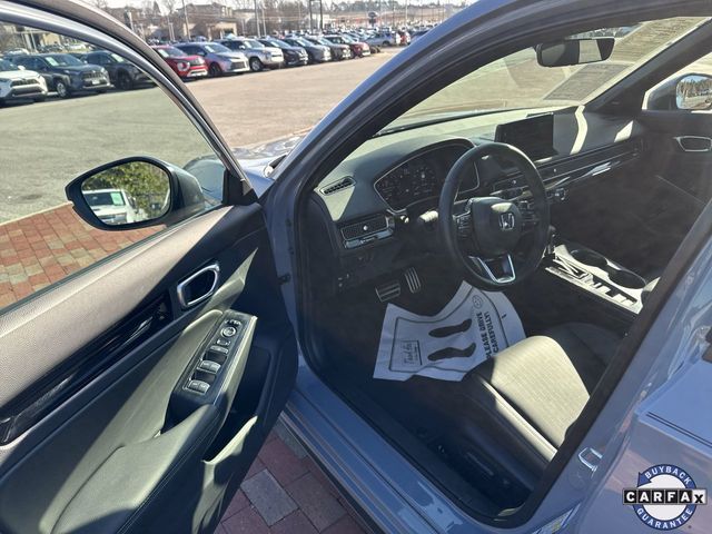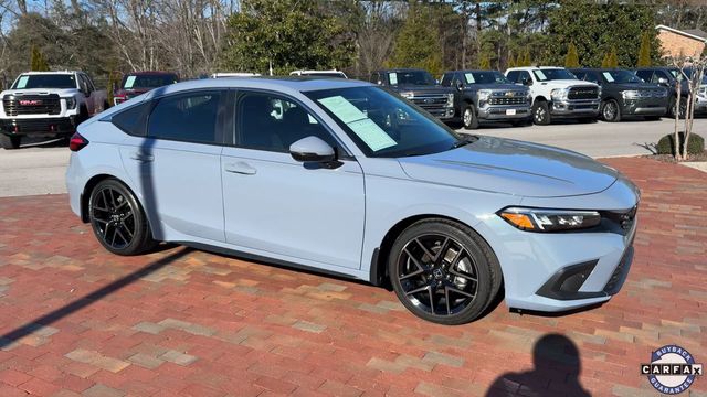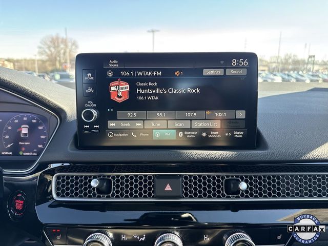 Recent Arrival! Certified. 2022 Honda Civic Sport Touring Sport Touring Sonic Gray Pearl 4D Hatchback 1.5L I4 DOHC 16V CVT FWD This vehicle comes well equipped with 12 Speakers, 18" Alloy Wheels, 4-Wheel Disc Brakes, ABS brakes, Adaptive Cruise Control: Adaptive Cruise Control (ACC) with Low-Speed Follow, Air Conditioning, Alloy wheels, AM/FM radio: SiriusXM, Apple CarPlay/Android Auto, Auto High-beam Headlights, Auto-dimming Rear-View mirror, Automatic temperature control, Blind Spot Information (BSI) System warning, Bose Premium Audio System, Brake assist, Bumpers: body-color, Compass, Delay-off headlights, Driver door bin, Driver vanity mirror, Dual front impact airbags, Dual front side impact airbags, Electronic Stability Control, Emergency communication system: HondaLink, Exterior Parking Camera Rear, Forward collision: Collision Mitigation Braking System (CMBS) + FCW mitigation, Four wheel independent suspension, Front anti-roll bar, Front Bucket Seats, Front Center Armrest, Front dual zone A/C, Front fog lights, Front reading lights, Fully automatic headlights, Garage door transmitter: HomeLink, Heated door mirrors, Heated Front Bucket Seats, Heated front seats, Illuminated entry, Knee airbag, Lane departure: Lane Keeping Assist System (LKAS) active, Leather Shift Knob, Leather steering wheel, Leather-Trimmed Seating Surfaces, Low tire pressure warning, Navigation system: Honda Satellite-Linked Navigation System, Occupant sensing airbag, Outside temperature display, Overhead airbag, Overhead console, Panic alarm, Passenger door bin, Passenger vanity mirror, Power door mirrors, Power driver seat, Power moonroof, Power passenger seat, Power steering, Power windows, Radio data system, Rain sensing wipers, Rear anti-roll bar, Rear seat center armrest, Rear side impact airbag, Rear window defroster, Rear window wiper, Remote keyless entry, Security system, Speed control, Speed-sensing steering, Split folding rear seat, Steering wheel mounted audio controls, Tachometer, Telescoping steering wheel, Tilt steering wheel, Traction control, Trip computer, Turn signal indicator mirrors, Variably intermittent wipers, and Voltmeter.