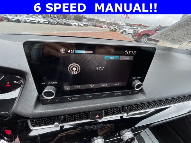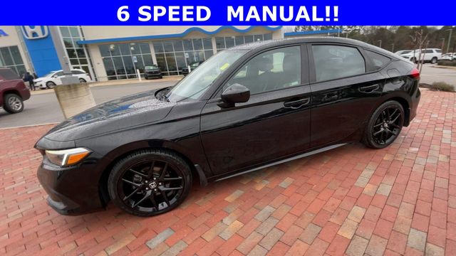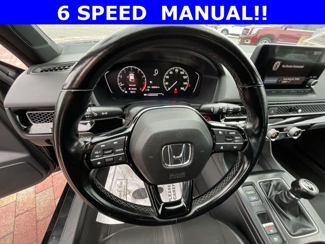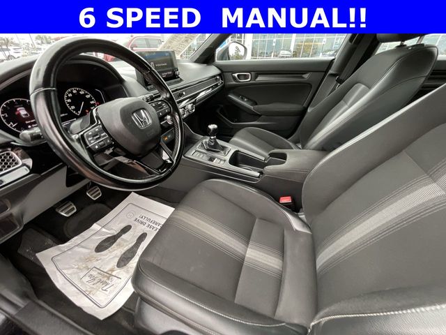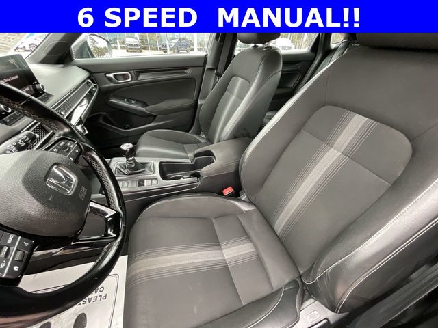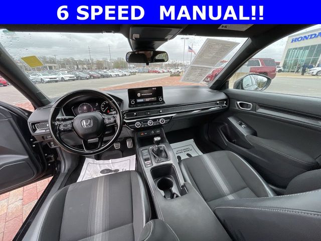 2022 Honda Civic Sport Sport Crystal Black Pearl 4D Hatchback 2.0L I4 DOHC 16V 6-Speed Manual FWD This vehicle comes well equipped with 18" Alloy Wheels, 4-Wheel Disc Brakes, 8 Speakers, ABS brakes, Air Conditioning, Alloy wheels, AM/FM radio, Apple CarPlay/Android Auto, Auto High-beam Headlights, Automatic temperature control, Brake assist, Bumpers: body-color, Delay-off headlights, Driver door bin, Driver vanity mirror, Dual front impact airbags, Dual front side impact airbags, Electronic Stability Control, Emergency communication system: HondaLink, Exterior Parking Camera Rear, Fabric Seating Surfaces, Forward collision: Collision Mitigation Braking System (CMBS) + FCW mitigation, Four wheel independent suspension, Front anti-roll bar, Front Bucket Seats, Front Center Armrest, Front reading lights, Fully automatic headlights, Illuminated entry, Knee airbag, Lane departure: Lane Keeping Assist System (LKAS) active, Leather Shift Knob, Leather steering wheel, Low tire pressure warning, Occupant sensing airbag, Outside temperature display, Overhead airbag, Panic alarm, Passenger door bin, Passenger vanity mirror, Power door mirrors, Power steering, Power windows, Radio data system, Radio: 180-Watt Audio System, Rear anti-roll bar, Rear side impact airbag, Rear window defroster, Rear window wiper, Remote keyless entry, Security system, Speed control, Speed-sensing steering, Split folding rear seat, Steering wheel mounted audio controls, Tachometer, Telescoping steering wheel, Tilt steering wheel, Traction control, Trip computer, and Voltmeter.