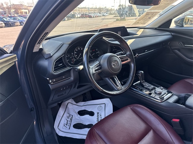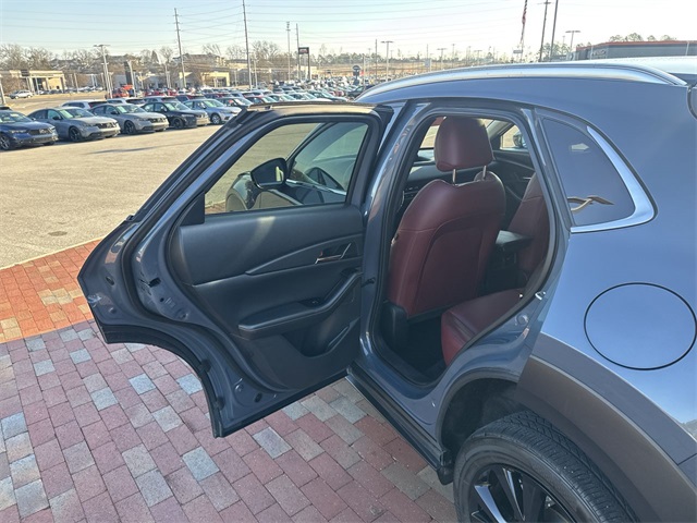 2022 Mazda CX-30 2.5 S Carbon Edition 2.5 S Carbon Edition Polymetal Gray Metallic 4D Sport Utility SKYACTIV® 2.5L 4-Cylinder DOHC 16V 6-Speed Automatic AWD This vehicle comes well equipped with 3.850 Axle Ratio, 4-Wheel Disc Brakes, 8 Speakers, ABS brakes, Air Conditioning, Alloy wheels, AM/FM radio, AppLink/Apple CarPlay and Android Auto, Auto High-beam Headlights, Automatic temperature control, Black Lug Nuts & Black Wheel Locks, Brake assist, Bumpers: body-color, Cargo Tray, Compass, Delay-off headlights, Driver door bin, Driver vanity mirror, Dual front impact airbags, Dual front side impact airbags, Electronic Stability Control, Emergency communication system: Mazda Connected Services (Automatic 911 Dialing), Exterior Parking Camera Rear, Front anti-roll bar, Front Bucket Seats, Front Center Armrest, Front dual zone A/C, Front reading lights, Front wheel independent suspension, Fully automatic headlights, Heated door mirrors, Heated Front Bucket Seats, Heated front seats, Illuminated entry, Knee airbag, Leather Seat Trim, Leather Shift Knob, Leather steering wheel, Low tire pressure warning, MAZDA CONNECT Infotainment System, Memory seat, Occupant sensing airbag, Outside temperature display, Overhead airbag, Overhead console, Panic alarm, Passenger door bin, Passenger vanity mirror, Power door mirrors, Power driver seat, Power moonroof, Power steering, Power windows, Radio data system, Radio: AM/FM/HD Audio System, Rain sensing wipers, Rear seat center armrest, Rear window defroster, Rear window wiper, Remote keyless entry, Roof rack: rails only, Speed control, Speed-sensing steering, Split folding rear seat, Spoiler, Stainless Steel Rear Bumper Guard, Steering wheel mounted audio controls, Tachometer, Telescoping steering wheel, Tilt steering wheel, Traction control, Trip computer, Turn signal indicator mirrors, Variably intermittent wipers, and Wheels: 18" x 7J Black Aluminum Alloy.