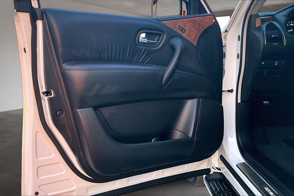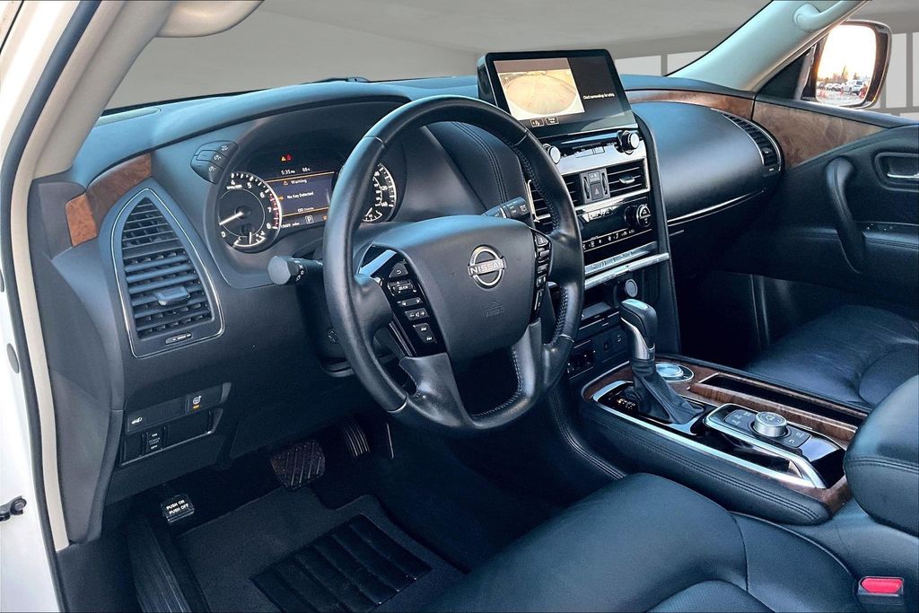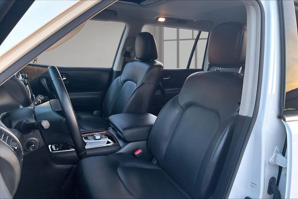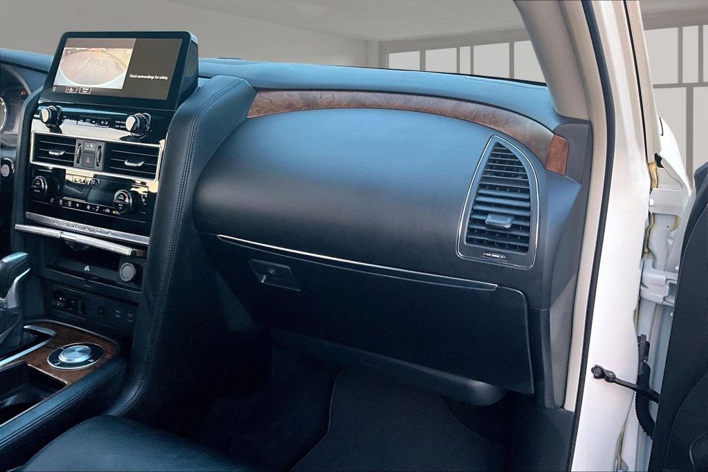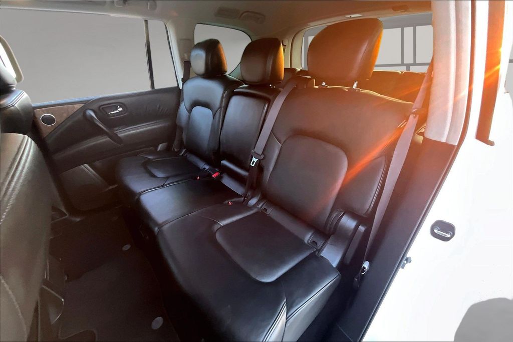 3rd Row Seating, Apple CarPlay, Android Auto, Back Up Camera, Heated Seats, Memory Seats, Navigation, Power Drivers Seat, Sunroof, Armada SL, 5.6L V8 DOHC 32V LEV3-ULEV125 400hp, 7-Speed Automatic, RWD, Aspen White Tricoat, Black Leather, 13 Speakers, AM/FM radio: SiriusXM, Auto High-beam Headlights, Auto tilt-away steering wheel, Auto-dimming door mirrors, Auto-dimming Rear-View mirror, Auto-leveling suspension, Automatic temperature control, Brake assist, Emergency communication system: NissanConnect Services, Exterior Parking Camera Rear, Front dual zone A/C, Front fog lights, Fully automatic headlights, Garage door transmitter: HomeLink, Heated door mirrors, Heated Front Bucket Seats, Leather-Appointed Seat Trim, Memory seat, Navigation System, NissanConnect featuring Apple CarPlay and Android Auto, Power driver seat, Power Liftgate, Power moonroof, Reclining 3rd row seat, Remote keyless entry, Spoiler, Telescoping steering wheel, Tilt steering wheel.