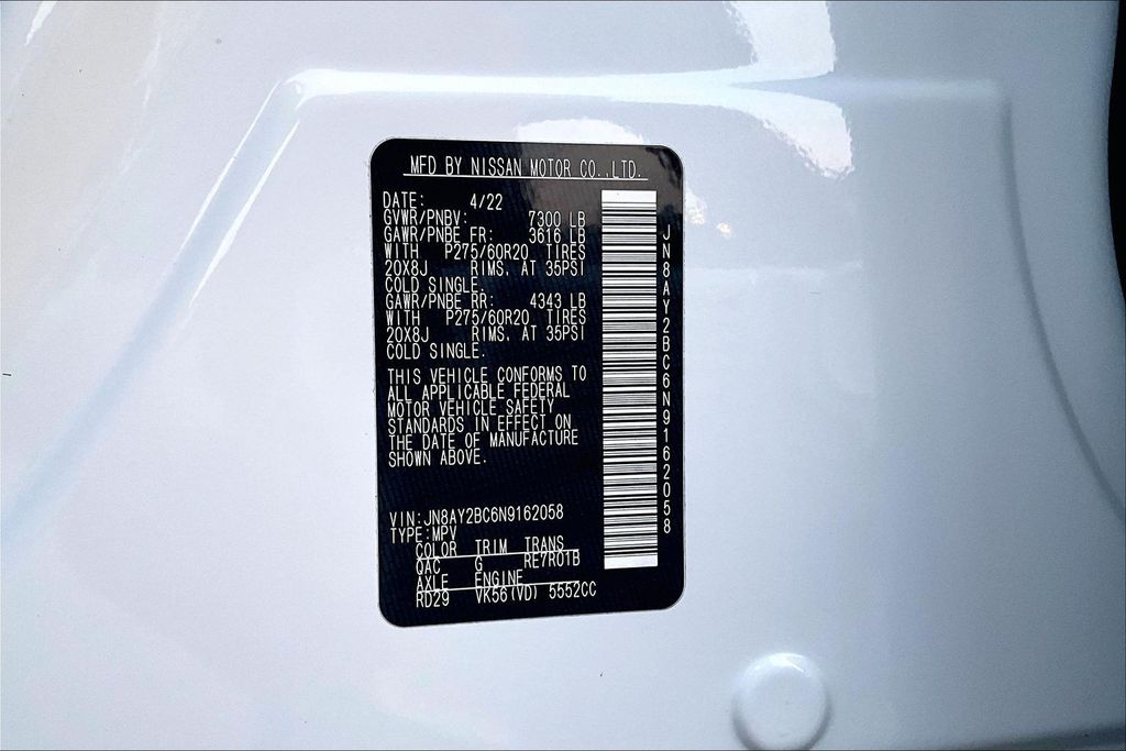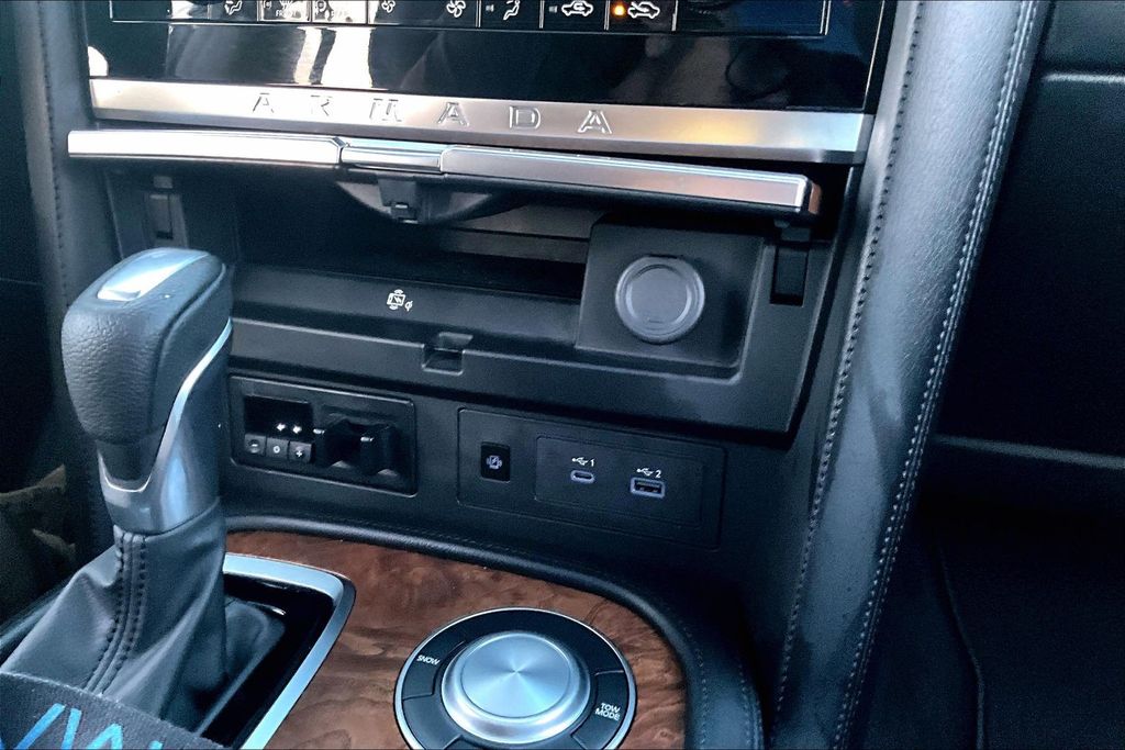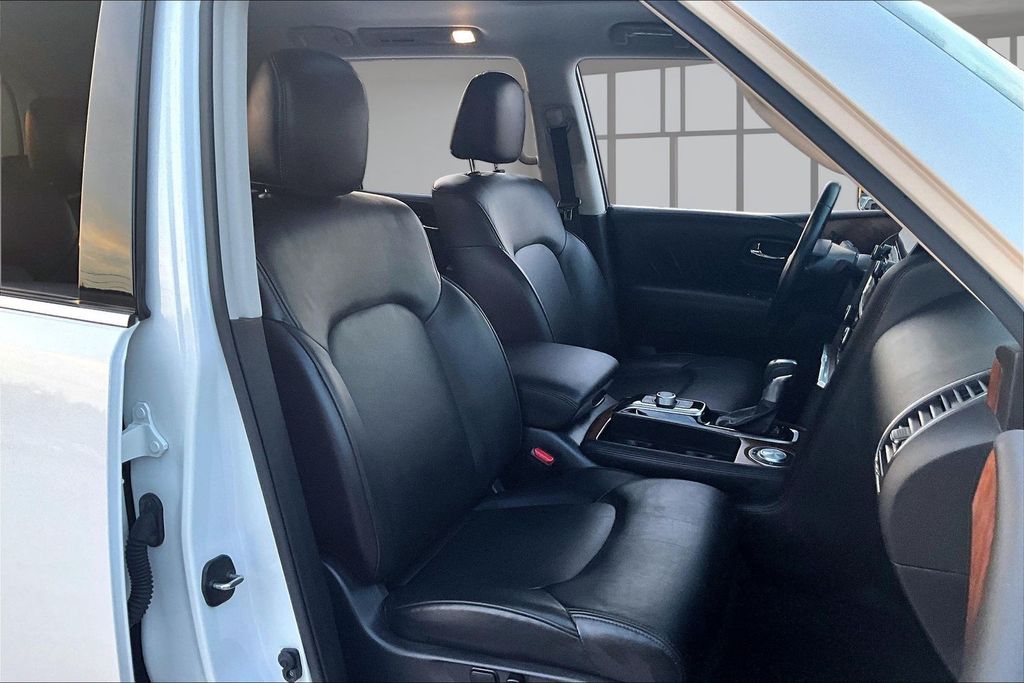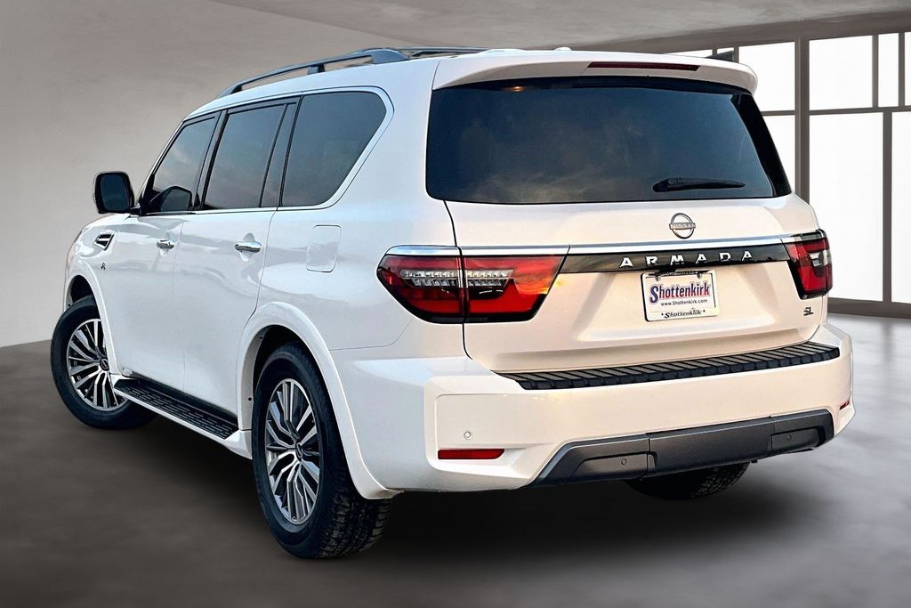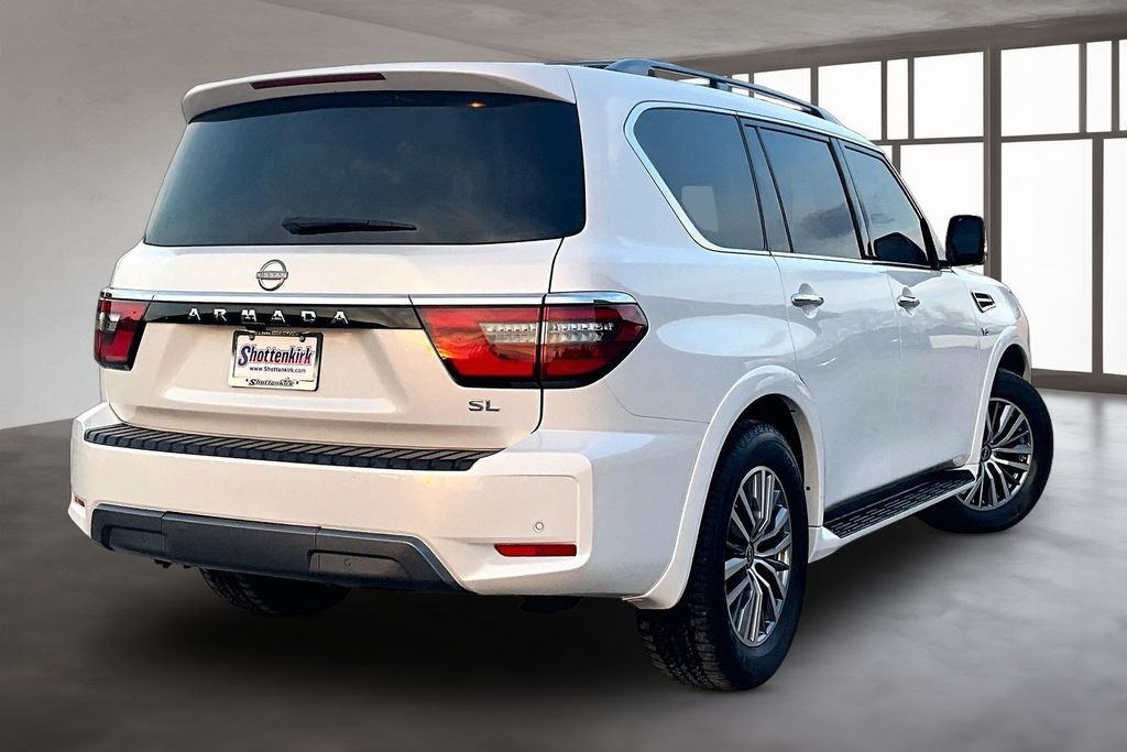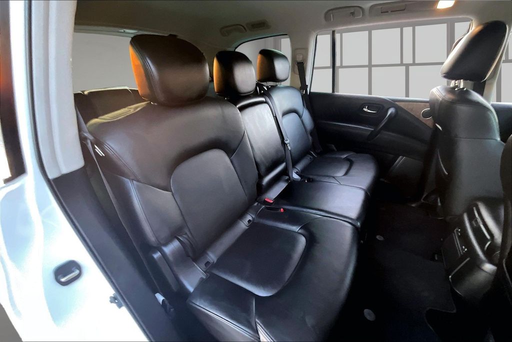 3rd Row Seating, Apple CarPlay, Android Auto, Back Up Camera, Heated Seats, Memory Seats, Navigation, Power Drivers Seat, Sunroof, Armada SL, 5.6L V8 DOHC 32V LEV3-ULEV125 400hp, 7-Speed Automatic, RWD, Aspen White Tricoat, Black Leather, 13 Speakers, AM/FM radio: SiriusXM, Auto High-beam Headlights, Auto tilt-away steering wheel, Auto-dimming door mirrors, Auto-dimming Rear-View mirror, Auto-leveling suspension, Automatic temperature control, Brake assist, Emergency communication system: NissanConnect Services, Exterior Parking Camera Rear, Front dual zone A/C, Front fog lights, Fully automatic headlights, Garage door transmitter: HomeLink, Heated door mirrors, Heated Front Bucket Seats, Leather-Appointed Seat Trim, Memory seat, Navigation System, NissanConnect featuring Apple CarPlay and Android Auto, Power driver seat, Power Liftgate, Power moonroof, Reclining 3rd row seat, Remote keyless entry, Spoiler, Telescoping steering wheel, Tilt steering wheel.