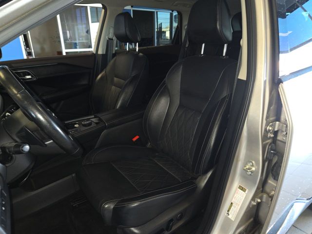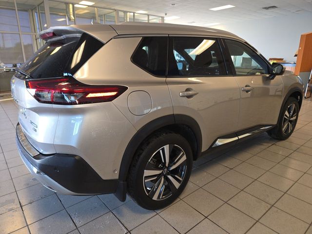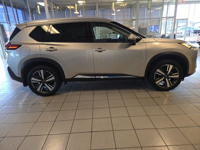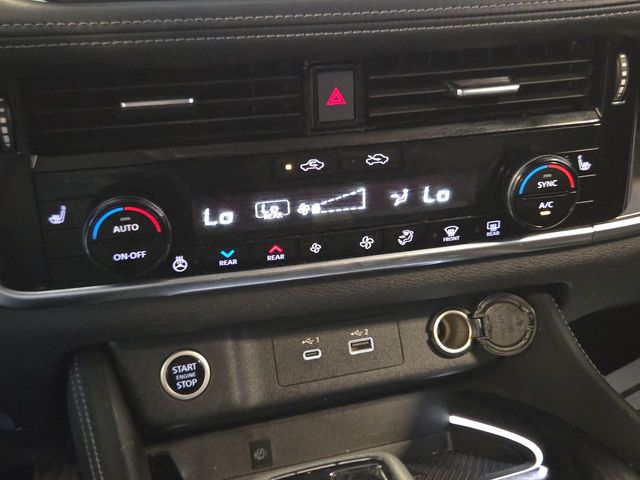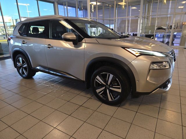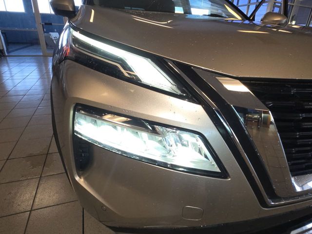 The Platinum trim represents the pinnacle of the Rogue lineup recognized for its upscale design, advanced safety technology, and cutting-edge connectivity. Inside, you'll experience first-class comfort with **Quilted Semi-Aniline Leather Seat Trim**, Heated Front and Rear Seats, a Heated Steering Wheel, Memory Drivers Seat, and Dual Zone Automatic Climate Control. The panoramic Power Moonroof and illuminated kick plates add an extra touch of sophistication.