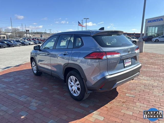 CARFAX One-Owner. 2022 Toyota Corolla Cross L L Gray 4D Sport Utility 2.0L I4 PDI DOHC 16V LEV3-SULEV30 169hp CVT AWD This vehicle comes well equipped with 4-Wheel Disc Brakes, 4.014 Axle Ratio, 6 Speakers, ABS brakes, Air Conditioning, AM/FM radio: SiriusXM, Apple CarPlay/Android Auto, Auto High-beam Headlights, Brake assist, Bumpers: body-color, Delay-off headlights, Driver door bin, Driver vanity mirror, Dual front impact airbags, Dual front side impact airbags, Electronic Stability Control, Emergency communication system: Safety Connect with 1-year trial, Exterior Parking Camera Rear, Fabric Seat Trim, Four wheel independent suspension, Front anti-roll bar, Front Bucket Seats, Front Center Armrest, Front reading lights, Heated door mirrors, Illuminated entry, Knee airbag, Low tire pressure warning, Occupant sensing airbag, Outside temperature display, Overhead airbag, Panic alarm, Passenger door bin, Passenger vanity mirror, Power door mirrors, Power steering, Power windows, Radio data system, Radio: 6 Speaker Audio, Rear anti-roll bar, Rear side impact airbag, Rear window defroster, Remote keyless entry, Security system, Speed control, Split folding rear seat, Spoiler, Steering wheel mounted audio controls, Tachometer, Telescoping steering wheel, Tilt steering wheel, Traction control, Trip computer, and Wheels: 17" Steel w/Silver Wheel Covers.