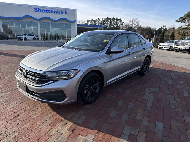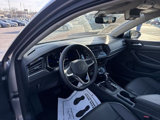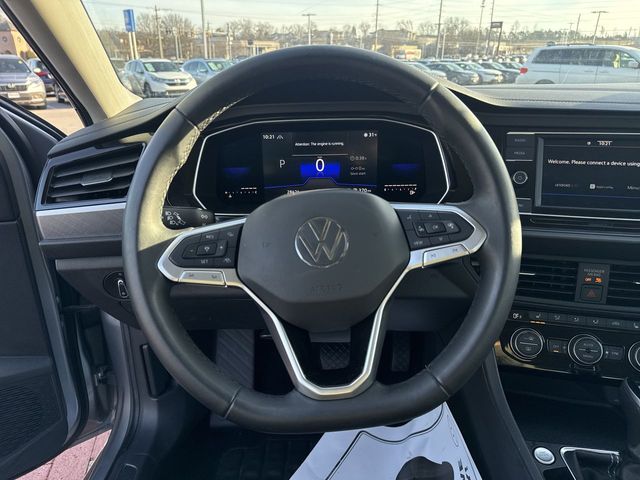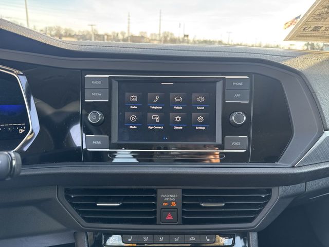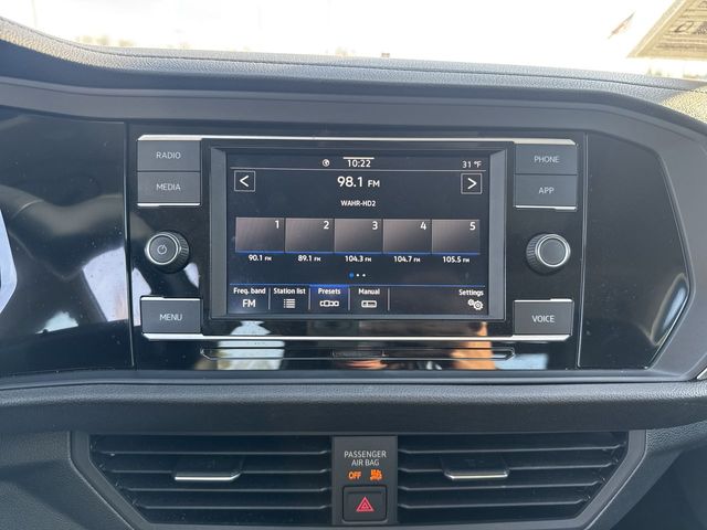 2022 Volkswagen Jetta 1.5T SE 1.5T SE Pyrite Silver Metallic 4D Sedan 1.5L I-4 DI DOHC Turbocharged 8-Speed Automatic with Tiptronic FWD This vehicle comes well equipped with 4 Speakers, 4-Wheel Disc Brakes, ABS brakes, Active Blind Spot Monitor, Air Conditioning, Alloy wheels, AM/FM radio, Auto-dimming Rear-View mirror, Automatic temperature control, Brake assist, Bumpers: body-color, Delay-off headlights, Driver door bin, Driver vanity mirror, Dual front impact airbags, Dual front side impact airbags, Electronic Stability Control, Emergency communication system: Car-Net, Exterior Parking Camera Rear, Front anti-roll bar, Front Bucket Seats, Front Center Armrest, Front dual zone A/C, Front wheel independent suspension, Fully automatic headlights, Heated door mirrors, Heated Front Comfort Sport Seats, Heated front seats, Illuminated entry, Leather Shift Knob, Low tire pressure warning, Occupant sensing airbag, Outside temperature display, Overhead airbag, Overhead console, Panic alarm, Passenger door bin, Passenger vanity mirror, Power door mirrors, Power driver seat, Power steering, Power windows, Radio data system, Radio: MIB3 Composition Color w/6.5" Touchscreen, Rain sensing wipers, Rear anti-roll bar, Rear reading lights, Rear seat center armrest, Rear window defroster, Remote keyless entry, Speed control, Speed-sensing steering, Split folding rear seat, Steering wheel mounted audio controls, Tachometer, Telescoping steering wheel, Tilt steering wheel, Traction control, Trip computer, V-Tex Leatherette Seat Trim, Variably intermittent wipers, and Wheels: 17" Twin 5-Spoke Silver Painted Alloy.