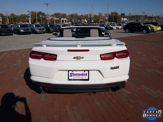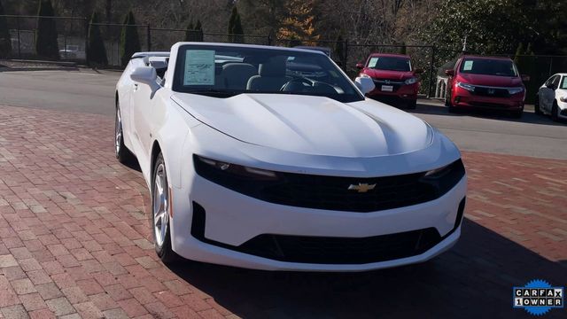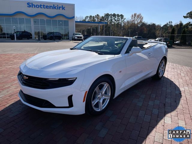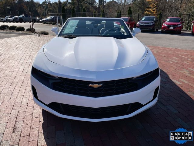 CARFAX One-Owner. 2023 Chevrolet Camaro 1LT 1LT Summit White 2D Convertible 2.0L Turbocharged 8-Speed Automatic RWD This vehicle comes well equipped with Preferred Equipment Group 1LT, 18" Silver-Painted Aluminum Wheels, 4-Wheel Disc Brakes, 6 Speakers, 6-Speaker Audio System Feature, 6-Way Power Front Passenger Seat Adjuster, 8-Way Power Driver Seat Adjuster, ABS brakes, Air Conditioning, Alloy wheels, AM/FM radio: SiriusXM, Apple CarPlay/Android Auto, Automatic temperature control, Bluetooth® For Phone, Brake assist, Bumpers: body-color, Cloth Seat Trim, Compass, Convertible roof lining, Delay-off headlights, Deleted 3 Years of Remote Access, Driver door bin, Driver vanity mirror, Dual front impact airbags, Dual front side impact airbags, Electronic Stability Control, Exterior Parking Camera Rear, Four wheel independent suspension, Front anti-roll bar, Front Bucket Seats, Front Center Armrest, Front reading lights, Front Sport Bucket Seats, Fully automatic headlights, Glass rear window, Illuminated entry, Knee airbag, Leather Shift Knob, Low tire pressure warning, Occupant sensing airbag, Paddle-Shift Manual Controls, Panic alarm, Passenger door bin, Passenger vanity mirror, Power convertible roof, Power door mirrors, Power driver seat, Power passenger seat, Power steering, Power windows, Premium audio system: Chevrolet Infotainment System, Radio data system, Radio: Chevrolet Infotainment 3 System, Rear anti-roll bar, Rear window defroster, Remote keyless entry, Remote Vehicle Starter System, Security system, SiriusXM Radio, Speed control, Speed-sensing steering, Spoiler, Steering wheel mounted audio controls, Tachometer, Telescoping steering wheel, Tilt steering wheel, Tire Inflation Kit, Traction control, Trip computer, Variably intermittent wipers, and Voltmeter.