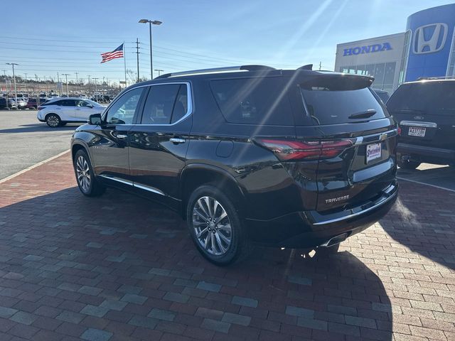 CARFAX One-Owner. 2023 Chevrolet Traverse Premier Premier Mosaic Black Metallic 4D Sport Utility 3.6L V6 SIDI VVT 9-Speed Automatic FWD This vehicle comes well equipped with Preferred Equipment Group 1LZ (Heated 2nd Row Outboard Position Seats, Heated Driver & Front Passenger Seats, and Ventilated Driver & Front Passenger Seats), 10 Speakers, 3.49 Axle Ratio, 3rd row seats: split-bench, 4-Wheel Disc Brakes, 6-Way Power Front Passenger Seat, 8-Way Power Driver Seat Adjuster, ABS brakes, Air Conditioning, Alloy wheels, AM/FM radio: SiriusXM with 360L, Apple CarPlay/Android Auto, Auto High-beam Headlights, Auto-dimming door mirrors, Auto-dimming Rear-View mirror, Automatic temperature control, Bose Premium 10-Speaker Audio System Feature, Brake assist, Bumpers: body-color, Compass, Delay-off headlights, Driver door bin, Driver vanity mirror, Dual front impact airbags, Dual front side impact airbags, Dual SkyScape 2-Panel Power Sunroof, Electronic Stability Control, Emergency communication system, Exterior Parking Camera Rear, Four wheel independent suspension, Front anti-roll bar, Front Bucket Seats, Front Center Armrest, Front dual zone A/C, Front Passenger 2-Way Power Lumbar, Front reading lights, Fully automatic headlights, Garage door transmitter, Heated door mirrors, Heated front seats, Heated rear seats, Heated steering wheel, Illuminated entry, Leather steering wheel, Low tire pressure warning, Memory seat, Navigation System, Not Equipped w/Rear Park Assist (060), Occupant sensing airbag, Outside temperature display, Overhead airbag, Overhead console, Panic alarm, Passenger door bin, Passenger vanity mirror, Perforated Leather-Appointed Seat Trim, Power door mirrors, Power Driver Lumbar Control, Power driver seat, Power Liftgate, Power passenger seat, Power steering, Power windows, Premium audio system: Chevrolet Infotainment 3 Plus, Radio data system, Radio: Chevrolet Infotainment 3 Plus System w/Navi, Rear air conditioning, Rear anti-roll bar, Rear reading lights, Rear window defroster, Rear window wiper, Remote keyless entry, Security system, SiriusXM w/360L, Speed control, Speed-sensing steering, Spoiler, Steering wheel memory, Steering wheel mounted audio controls, Tachometer, Telescoping steering wheel, Tilt steering wheel, Traction control, Trip computer, Turn signal indicator mirrors, Variably intermittent wipers, Ventilated front seats, Voltmeter, and Wheels: 20" Metallic Machined-Face Aluminum.