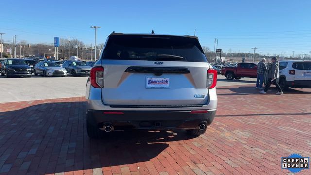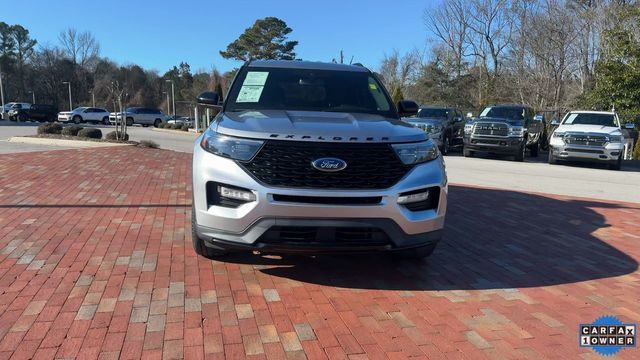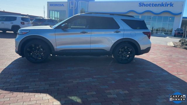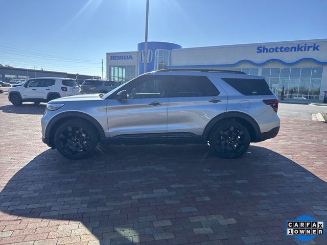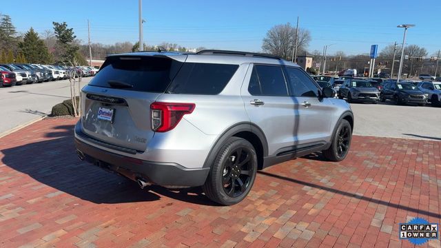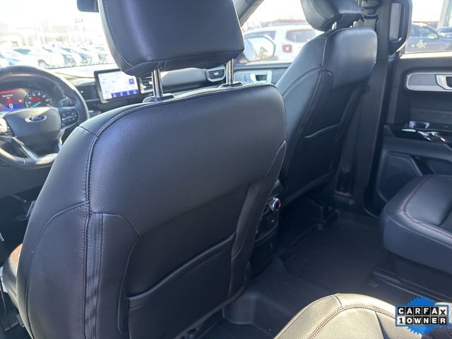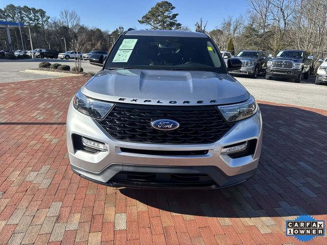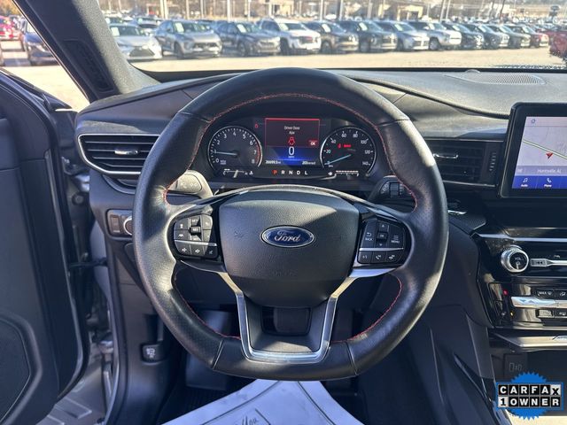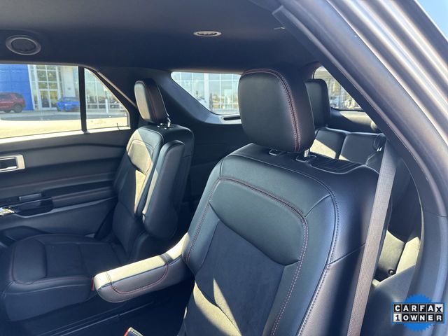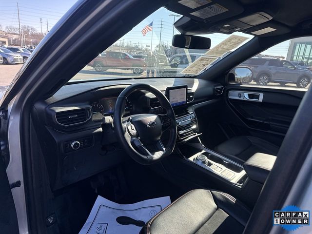 CARFAX One-Owner. 2023 Ford Explorer ST-Line ST-Line Iconic Silver Metallic 4D Sport Utility 2.3L EcoBoost I-4 10-Speed Automatic RWD This vehicle comes well equipped with Class IV Trailer Tow Package, Equipment Group 250A, 12 Speakers, 20" Machined Aluminum w/Painted Pockets Wheels, 3.58 Non-Limited-Slip Rear Axle Ratio, 3rd row seats: bench, 4-Wheel Disc Brakes, 4G LTE Wi-Fi Hotspot Credit, ABS brakes, Air Conditioning, Alloy wheels, AM/FM radio: SiriusXM, Auto High-beam Headlights, Auto Start-Stop Removal (DISC), Auto-dimming Rear-View mirror, Automatic temperature control, Brake assist, Bumpers: body-color, Cargo Area Management System, Compass, Delay-off headlights, Driver door bin, Driver vanity mirror, Dual front impact airbags, Dual front side impact airbags, Electronic Stability Control, Emergency communication system: SYNC 3 911 Assist, Exterior Parking Camera Rear, FordPass Connect, Four wheel independent suspension, Front & Second Row Floor Liners (16B), Front anti-roll bar, Front Bucket Seats, Front Center Armrest, Front dual zone A/C, Front fog lights, Front reading lights, Fully automatic headlights, Heated door mirrors, Heated front seats, Heated steering wheel, Htd ActiveX Trimmed Captain's Chairs w/Miko Insert, Illuminated entry, Knee airbag, Leather steering wheel, Low tire pressure warning, Navigation System, Occupant sensing airbag, Outside temperature display, Overhead airbag, Overhead console, Panic alarm, Passenger door bin, Passenger vanity mirror, Power door mirrors, Power driver seat, Power Liftgate, Power passenger seat, Power steering, Power windows, Radio data system, Radio: B&O Sound System by Bang & Olufsen, Rain sensing wipers, Rear air conditioning, Rear anti-roll bar, Rear reading lights, Rear window defroster, Rear window wiper, Remote keyless entry, Security system, Speed control, Speed-sensing steering, Speed-Sensitive Wipers, Split folding rear seat, Spoiler, Steering wheel mounted audio controls, SYNC 3 Communications & Entertainment System, SYNC 3/Apple CarPlay/Android Auto, Tachometer, Telescoping steering wheel, Tilt steering wheel, Traction control, Trip computer, Variably intermittent wipers, Voice-Activated Touchscreen Navigation System, and Wheels: 21" Aluminum.