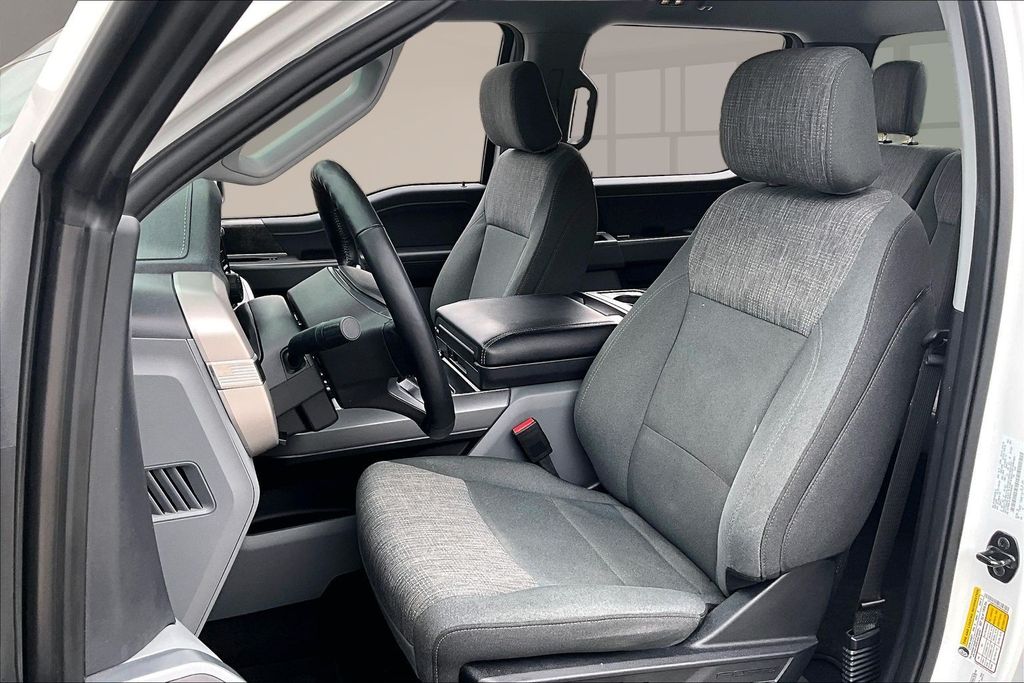 Apple CarPlay, Android Auto, Adaptive Cruise Control, Back Up Camera, Blind Spot Monitoring System, Heated Seats, Heated Steering Wheel, Lane Departure, Navigation, Tow Package, Extended Range Battery, F-150 Lightning XLT, 4D Crew Cab, Electric Motor, Single-Speed Automatic, AWD, Oxford White, Medium Dark Slate, 10-Way Power Driver & Passenger Seats, Adjustable pedals, Auto-dimming Rear-View mirror, Body-Color Door & Tailgate Handles, Brake assist, Cloth Heated Front Seats, Emergency communication system: SYNC 4 911 Assist, Equipment Group 312A High, Evasive Steering Assist, Ford Charge Station Pro, Forward Sensing System, Four wheel independent suspension, Fully automatic headlights, Heated front seats, Heated Steering Wheel, Illuminated running boards, Intelligent Access w/Push Button Start, Intelligent Adaptive Cruise Control 2.0, LED Box Lighting w/Zone Lighting, Navigation System, Power driver seat, Power Tailgate, Pro Power Onboard - 9.6 kW, Pro Trailer Backup Assist, Pro Trailer Hitch Assist, Radio: SiriusXM w/360L, Rain-Sensing Wipers, Remote keyless entry, SecuriCode Drivers Side Keyless-Entry Keypad, Speed Sign Recognition, SYNC 4 w/Enhanced Voice Recognition, Tailgate Step w/Tailgate Work Surface, Telescoping steering wheel, Tilt steering wheel, Tow Technology Package, Trailer Brake Controller, Wheels: 20" Alloy Dark Carbonized Gray.