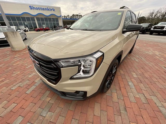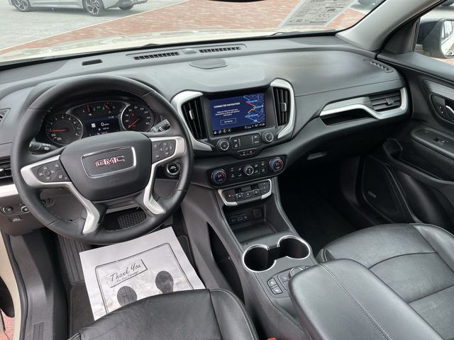 Recent Arrival! CARFAX One-Owner. 2023 GMC Terrain SLT SLT Desert Sand Metallic 4D Sport Utility 1.5L DOHC 9-Speed Automatic FWD This vehicle comes well equipped with Elevation Edition (Black GMC Center Caps w/Red GMC Lettering, Black Mirror Caps, Darkened Front Grille, Roof-Mounted Luggage Rack Side Rails, and Wheels: 19" Gloss Black Aluminum), Infotainment Package II (Premium 7-Speaker Bose Sound System w/Amplifier, Radio: GMC Infotainment Audio System w/Navigation, and SiriusXM Radio), Preferred Equipment Group 4SA, 2 USB Data Ports, 2 USB Data Ports w/SD Card Reader, 3.47 Axle Ratio, 4-Wheel Disc Brakes, 6 Speakers, 6-Speaker Audio System Feature, 6-Way Power Front Passenger Seat, 8-Way Power Driver Seat Adjuster, ABS brakes, Air Conditioning, Alloy wheels, AM/FM radio: SiriusXM, Auto High-beam Headlights, Auto-dimming Rear-View mirror, Automatic temperature control, Bluetooth® For Phone, Brake assist, Bumpers: body-color, Compass, Delay-off headlights, Driver & Front Passenger Heated Seats, Driver door bin, Driver vanity mirror, Dual front impact airbags, Dual front side impact airbags, Electronic Stability Control, Emergency communication system: OnStar and GMC connected services capable, Four wheel independent suspension, Front anti-roll bar, Front Bucket Seats, Front Center Armrest, Front dual zone A/C, Front fog lights, Front Passenger 2-Way Power Lumbar, Front reading lights, Fully automatic headlights, Garage door transmitter, Heated door mirrors, Heated front seats, Heated steering wheel, Illuminated entry, Low tire pressure warning, Memory seat, Occupant sensing airbag, Outside temperature display, Overhead airbag, Overhead console, Panic alarm, Passenger door bin, Passenger vanity mirror, Perforated Leather-Appointed Seat Trim, Power door mirrors, Power Driver Lumbar Control, Power driver seat, Power Liftgate, Power passenger seat, Power steering, Power windows, Radio data system, Radio: GMC Infotainment Audio System w/8" Display, Rear anti-roll bar, Rear seat center armrest, Rear window defroster, Rear window wiper, Remote keyless entry, Roof rack: rails only, Security system, Skyscape Power Sunroof w/Power Sunscreen, Speed control, Speed-sensing steering, Split folding rear seat, Spoiler, Steering wheel mounted audio controls, Tachometer, Telescoping steering wheel, Tilt steering wheel, Traction control, Trip computer, Turn signal indicator mirrors, Variably intermittent wipers, Wheels: 18" x 7" Silver Painted Aluminum, and Wireless Apple CarPlay/Wireless Android Auto.
