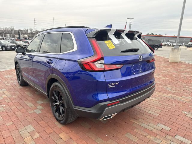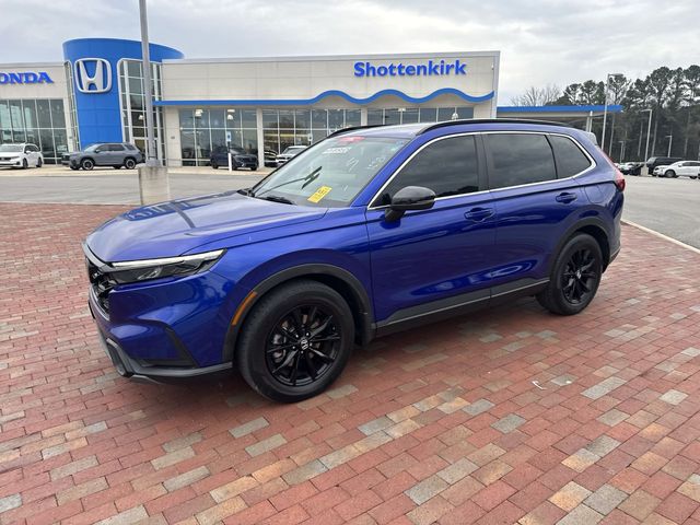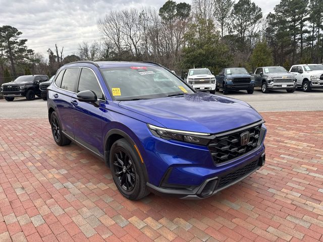 Recent Arrival! CARFAX One-Owner. Certified. 2023 Honda CR-V Hybrid Sport Sport Blue 4D Sport Utility 2.0L I4 DOHC 16V eCVT FWD This vehicle comes well equipped with 4-Wheel Disc Brakes, 4.438 Axle Ratio, 6 Speakers, ABS brakes, Adaptive Cruise Control: Adaptive Cruise Control (ACC) with Low-Speed Follow, Air Conditioning, Alloy wheels, Apple CarPlay/Android Auto, Auto High-beam Headlights, Automatic temperature control, Brake assist, Bumpers: body-color, Cloth Seat Trim, Compass, Delay-off headlights, Driver door bin, Driver vanity mirror, Dual front impact airbags, Dual front side impact airbags, Electronic Stability Control, Exterior Parking Camera Rear, Four wheel independent suspension, Front anti-roll bar, Front Bucket Seats, Front Center Armrest, Front dual zone A/C, Front reading lights, Fully automatic headlights, Heated door mirrors, Heated Front Bucket Seats, Heated front seats, Illuminated entry, Knee airbag, Leather Shift Knob, Leather steering wheel, Low tire pressure warning, Occupant sensing airbag, Outside temperature display, Overhead airbag, Overhead console, Panic alarm, Passenger door bin, Passenger vanity mirror, Power door mirrors, Power driver seat, Power moonroof, Power steering, Power windows, Radio data system, Radio: 240-Watt AM/FM Audio System, Rear anti-roll bar, Rear reading lights, Rear seat center armrest, Rear side impact airbag, Rear window defroster, Rear window wiper, Remote keyless entry, Security system, Speed control, Speed-sensing steering, Speed-Sensitive Wipers, Split folding rear seat, Spoiler, Steering wheel mounted audio controls, Telescoping steering wheel, Tilt steering wheel, Traction control, Trip computer, Turn signal indicator mirrors, Variably intermittent wipers, and Wheels: 18" Berlina Black Alloy.