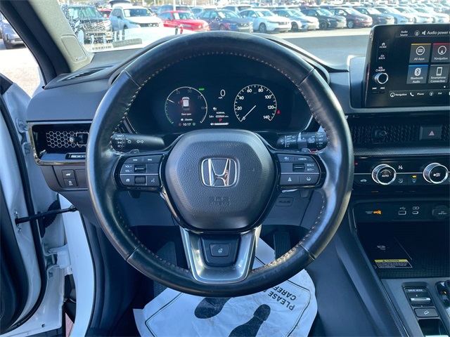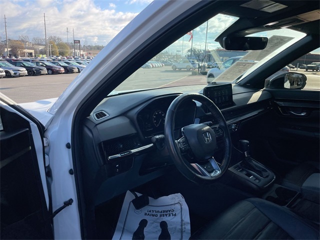 Certified. 2023 Honda CR-V Hybrid Sport Touring Sport Touring Platinum White Pearl 4D Sport Utility 2.0L I4 DOHC 16V eCVT AWD This vehicle comes well equipped with 12 Speakers, 4-Wheel Disc Brakes, 4.438 Axle Ratio, ABS brakes, Adaptive Cruise Control: Adaptive Cruise Control (ACC) with Low-Speed Follow, Air Conditioning, Alloy wheels, AM/FM radio: SiriusXM, Auto High-beam Headlights, Auto-dimming Rear-View mirror, Automatic temperature control, Blind Spot Information (BSI) System warning, Brake assist, Bumpers: body-color, Compass, Delay-off headlights, Driver door bin, Driver vanity mirror, Dual front impact airbags, Dual front side impact airbags, Electronic Stability Control, Exterior Parking Camera Rear, Four wheel independent suspension, Front anti-roll bar, Front Bucket Seats, Front Center Armrest, Front dual zone A/C, Front reading lights, Fully automatic headlights, Heated door mirrors, Heated Front Bucket Seats w/Driver Memory, Heated front seats, Heated steering wheel, Illuminated entry, Knee airbag, Leather Seat Trim, Leather Shift Knob, Leather steering wheel, Low tire pressure warning, Memory seat, Navigation system: Honda Satellite-Linked Navigation System, Occupant sensing airbag, Outside temperature display, Overhead airbag, Overhead console, Panic alarm, Passenger door bin, Passenger vanity mirror, Power door mirrors, Power driver seat, Power Liftgate, Power moonroof, Power passenger seat, Power steering, Power windows, Radio data system, Radio: Bose Premium Sound System w/Navigation, Rain sensing wipers, Rear anti-roll bar, Rear reading lights, Rear seat center armrest, Rear side impact airbag, Rear window defroster, Rear window wiper, Remote keyless entry, Security system, Speed control, Speed-sensing steering, Speed-Sensitive Wipers, Split folding rear seat, Spoiler, Steering wheel mounted audio controls, Telescoping steering wheel, Tilt steering wheel, Traction control, Trip computer, Turn signal indicator mirrors, Variably intermittent wipers, Wheels: 19" Berlina Black Alloy, and Wireless Apple CarPlay/Wireless Android Auto.