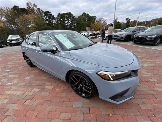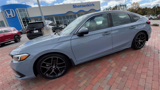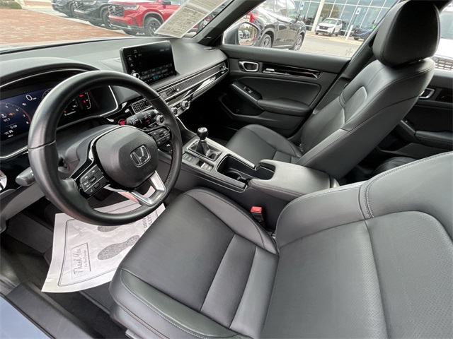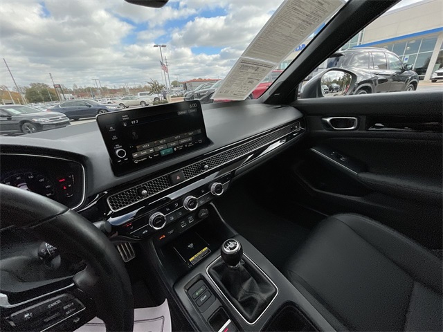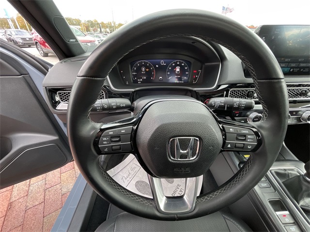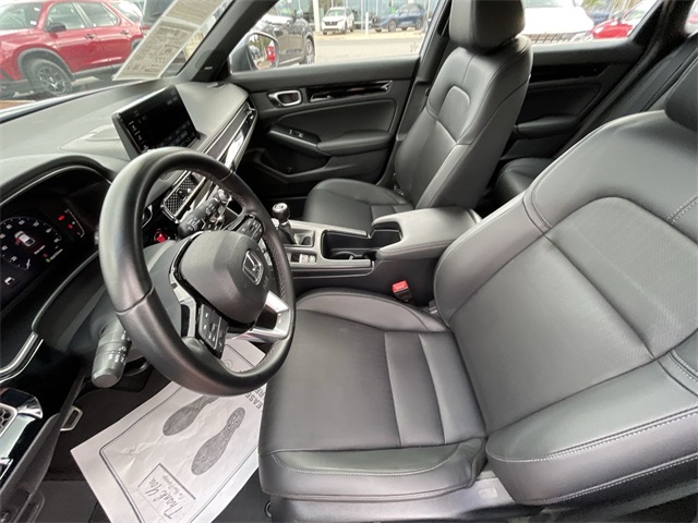 Recent Arrival! CARFAX One-Owner. Certified. 2023 Honda Civic Sport Touring Sport Touring Sonic Gray Pearl 4D Hatchback 1.5L I4 DOHC 16V 6-Speed Manual FWD This vehicle comes well equipped with 12 Speakers, 18" Alloy Wheels, 4-Wheel Disc Brakes, ABS brakes, Air Conditioning, Alloy wheels, AM/FM radio: SiriusXM, Apple CarPlay/Android Auto, Auto High-beam Headlights, Auto-dimming Rear-View mirror, Automatic temperature control, Blind Spot Information (BSI) System warning, Bose Premium Audio System, Brake assist, Bumpers: body-color, Compass, Delay-off headlights, Driver door bin, Driver vanity mirror, Dual front impact airbags, Dual front side impact airbags, Electronic Stability Control, Emergency communication system: HondaLink, Exterior Parking Camera Rear, Four wheel independent suspension, Front anti-roll bar, Front Bucket Seats, Front Center Armrest, Front dual zone A/C, Front fog lights, Front reading lights, Fully automatic headlights, Garage door transmitter: HomeLink, Heated door mirrors, Heated Front Bucket Seats, Heated front seats, Illuminated entry, Knee airbag, Lane departure: Lane Keeping Assist System (LKAS) active, Leather Shift Knob, Leather steering wheel, Leather-Trimmed Seating Surfaces, Low tire pressure warning, Navigation system: Honda Satellite-Linked Navigation System, Occupant sensing airbag, Outside temperature display, Overhead airbag, Overhead console, Panic alarm, Passenger door bin, Passenger vanity mirror, Power door mirrors, Power driver seat, Power moonroof, Power passenger seat, Power steering, Power windows, Radio data system, Rain sensing wipers, Rear anti-roll bar, Rear seat center armrest, Rear side impact airbag, Rear window defroster, Rear window wiper, Remote keyless entry, Security system, Speed control, Speed-sensing steering, Split folding rear seat, Steering wheel mounted audio controls, Tachometer, Telescoping steering wheel, Tilt steering wheel, Traction control, Trip computer, Turn signal indicator mirrors, Variably intermittent wipers, and Voltmeter.