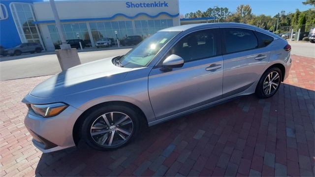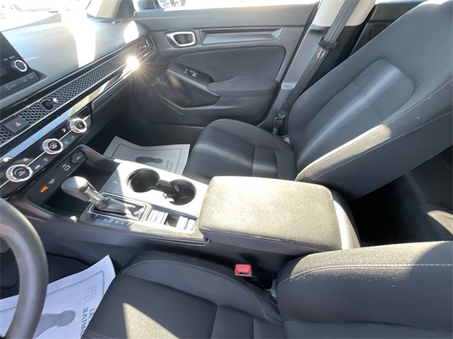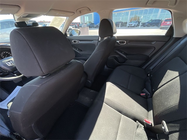CARFAX One-Owner. 2023 Honda Civic LX LX Lunar Silver Metallic 4D Hatchback 2.0L I4 DOHC 16V CVT FWD This vehicle comes well equipped with 16" Alloy Wheels, 4 Speakers, 4-Wheel Disc Brakes, ABS brakes, Adaptive Cruise Control: Adaptive Cruise Control (ACC) with Low-Speed Follow, Air Conditioning, Alloy wheels, AM/FM radio, Apple CarPlay/Android Auto, Auto High-beam Headlights, Automatic temperature control, Brake assist, Bumpers: body-color, Delay-off headlights, Driver door bin, Driver vanity mirror, Dual front impact airbags, Dual front side impact airbags, Electronic Stability Control, Emergency communication system: HondaLink, Exterior Parking Camera Rear, Fabric Seating Surfaces, Four wheel independent suspension, Front anti-roll bar, Front Bucket Seats, Front Center Armrest, Front reading lights, Fully automatic headlights, Illuminated entry, Knee airbag, Lane departure: Lane Keeping Assist System (LKAS) active, Low tire pressure warning, Occupant sensing airbag, Outside temperature display, Overhead airbag, Panic alarm, Passenger door bin, Passenger vanity mirror, Power door mirrors, Power steering, Power windows, Radio data system, Radio: 160-Watt Audio System, Rear anti-roll bar, Rear side impact airbag, Rear window defroster, Rear window wiper, Remote keyless entry, Security system, Speed control, Speed-sensing steering, Split folding rear seat, Steering wheel mounted audio controls, Tachometer, Telescoping steering wheel, Tilt steering wheel, Traction control, Trip computer, and Voltmeter.