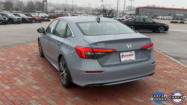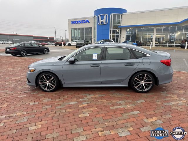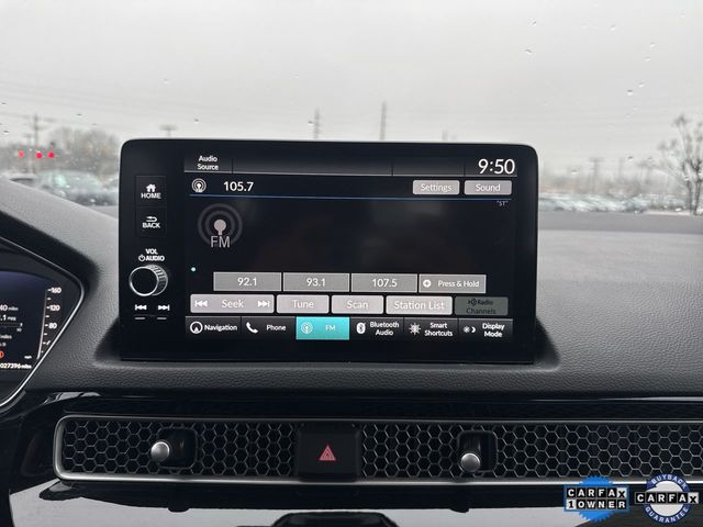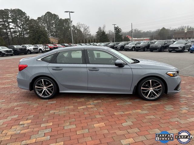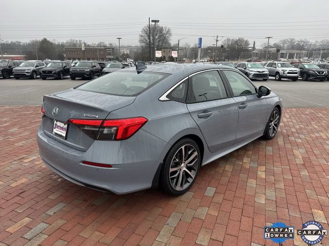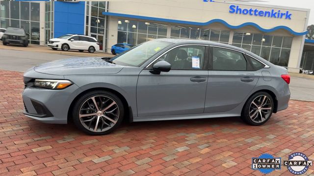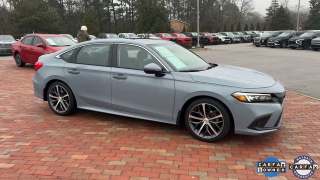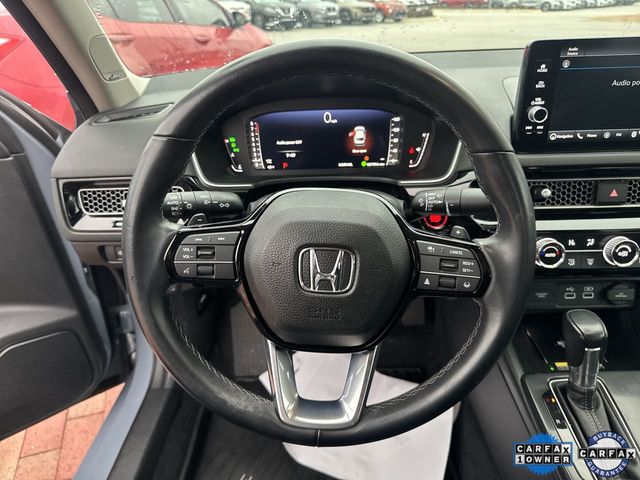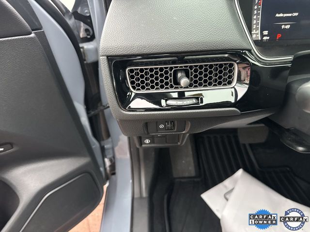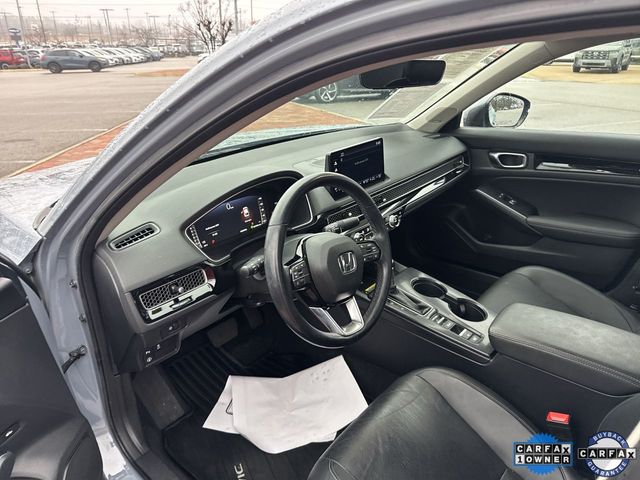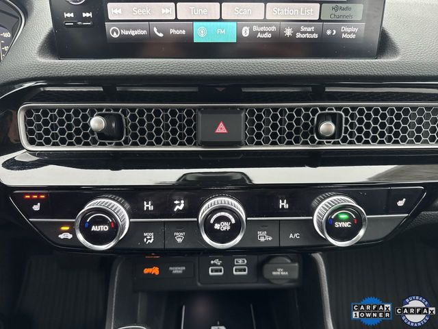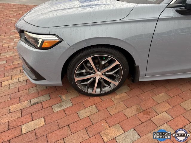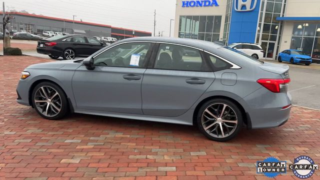 CARFAX One-Owner. Certified. 2023 Honda Civic Touring Touring Sonic Gray Pearl 4D Sedan 1.5L I-4 DI DOHC Turbocharged CVT FWD This vehicle comes well equipped with 12 Speakers, 4-Wheel Disc Brakes, ABS brakes, Adaptive Cruise Control: Adaptive Cruise Control (ACC) with Low-Speed Follow, Air Conditioning, Alloy wheels, AM/FM radio: SiriusXM, Apple CarPlay/Android Auto, Auto High-beam Headlights, Auto-dimming Rear-View mirror, Automatic temperature control, Blind Spot Information (BSI) System warning, Brake assist, Bumpers: body-color, Compass, Delay-off headlights, Driver door bin, Driver vanity mirror, Dual front impact airbags, Dual front side impact airbags, Electronic Stability Control, Emergency communication system: HondaLink, Exterior Parking Camera Rear, Four wheel independent suspension, Front anti-roll bar, Front Bucket Seats, Front Center Armrest, Front dual zone A/C, Front fog lights, Front reading lights, Fully automatic headlights, Garage door transmitter: HomeLink, Heated door mirrors, Heated Front Bucket Seats, Heated front seats, Illuminated entry, Knee airbag, Leather Seat Trim, Leather Shift Knob, Leather steering wheel, Low tire pressure warning, Navigation system: Honda Satellite-Linked Navigation System, Occupant sensing airbag, Outside temperature display, Overhead airbag, Overhead console, Panic alarm, Passenger door bin, Passenger vanity mirror, Power door mirrors, Power driver seat, Power moonroof, Power passenger seat, Power steering, Power windows, Radio data system, Radio: Bose Premium Audio System w/12 Speakers, Rain sensing wipers, Rear anti-roll bar, Rear seat center armrest, Rear side impact airbag, Rear window defroster, Remote keyless entry, Security system, Speed control, Speed-sensing steering, Split folding rear seat, Steering wheel mounted audio controls, Tachometer, Telescoping steering wheel, Tilt steering wheel, Traction control, Trip computer, Turn signal indicator mirrors, Variably intermittent wipers, and Wheels: 18" Alloy w/Gloss Shark Gray Inserts.