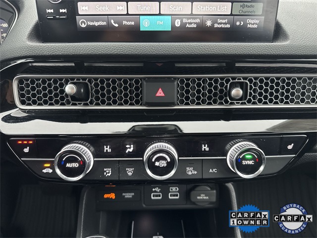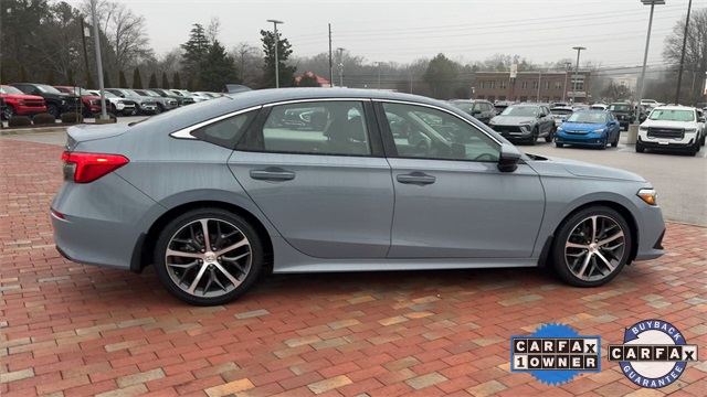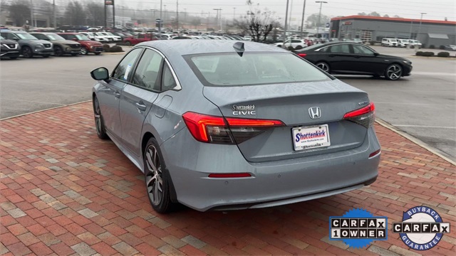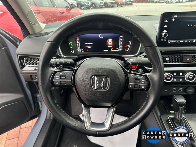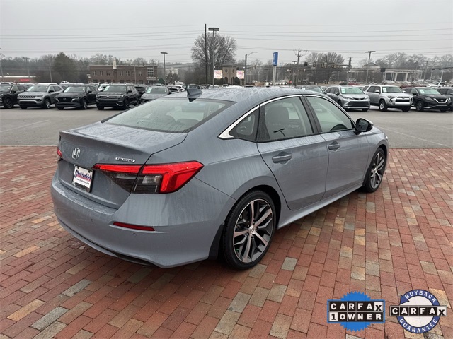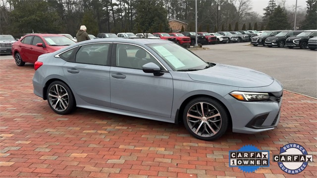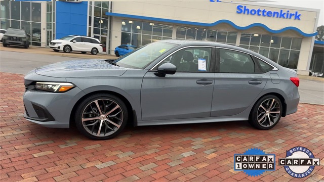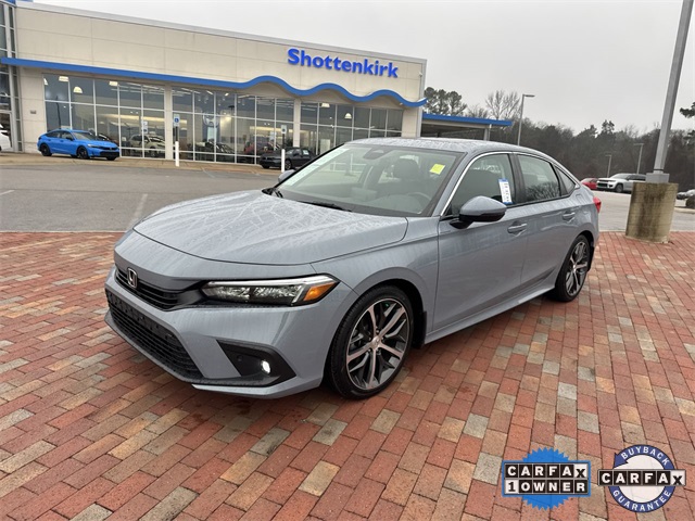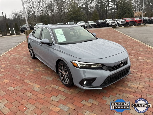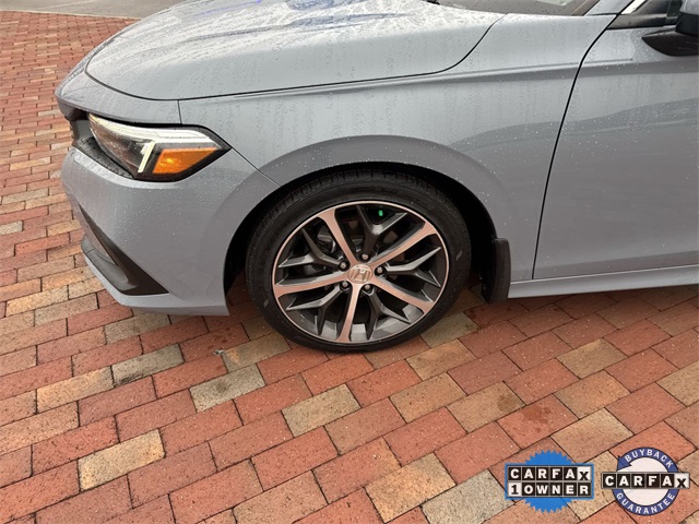Recent Arrival! CARFAX One-Owner. Certified. 2023 Honda Civic Touring Touring Sonic Gray Pearl 4D Sedan 1.5L I-4 DI DOHC Turbocharged CVT FWD This vehicle comes well equipped with 12 Speakers, 4-Wheel Disc Brakes, ABS brakes, Adaptive Cruise Control: Adaptive Cruise Control (ACC) with Low-Speed Follow, Air Conditioning, Alloy wheels, AM/FM radio: SiriusXM, Apple CarPlay/Android Auto, Auto High-beam Headlights, Auto-dimming Rear-View mirror, Automatic temperature control, Blind Spot Information (BSI) System warning, Brake assist, Bumpers: body-color, Compass, Delay-off headlights, Driver door bin, Driver vanity mirror, Dual front impact airbags, Dual front side impact airbags, Electronic Stability Control, Emergency communication system: HondaLink, Exterior Parking Camera Rear, Four wheel independent suspension, Front anti-roll bar, Front Bucket Seats, Front Center Armrest, Front dual zone A/C, Front fog lights, Front reading lights, Fully automatic headlights, Garage door transmitter: HomeLink, Heated door mirrors, Heated Front Bucket Seats, Heated front seats, Illuminated entry, Knee airbag, Leather Seat Trim, Leather Shift Knob, Leather steering wheel, Low tire pressure warning, Navigation system: Honda Satellite-Linked Navigation System, Occupant sensing airbag, Outside temperature display, Overhead airbag, Overhead console, Panic alarm, Passenger door bin, Passenger vanity mirror, Power door mirrors, Power driver seat, Power moonroof, Power passenger seat, Power steering, Power windows, Radio data system, Radio: Bose Premium Audio System w/12 Speakers, Rain sensing wipers, Rear anti-roll bar, Rear seat center armrest, Rear side impact airbag, Rear window defroster, Remote keyless entry, Security system, Speed control, Speed-sensing steering, Split folding rear seat, Steering wheel mounted audio controls, Tachometer, Telescoping steering wheel, Tilt steering wheel, Traction control, Trip computer, Turn signal indicator mirrors, Variably intermittent wipers, and Wheels: 18" Alloy w/Gloss Shark Gray Inserts.