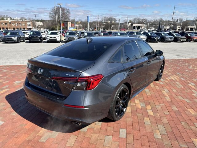 Recent Arrival! 2023 Honda Civic Sport Sport Meteorite Gray Metallic 4D Sedan 2.0L I4 DOHC 16V i-VTEC CVT FWD This vehicle comes well equipped with 4-Wheel Disc Brakes, 8 Speakers, ABS brakes, Adaptive Cruise Control: Adaptive Cruise Control (ACC) with Low-Speed Follow, Air Conditioning, Alloy wheels, AM/FM radio, Apple CarPlay/Android Auto, Auto High-beam Headlights, Automatic temperature control, Brake assist, Bumpers: body-color, Cloth Seat Trim, Delay-off headlights, Driver door bin, Driver vanity mirror, Dual front impact airbags, Dual front side impact airbags, Electronic Stability Control, Emergency communication system: HondaLink, Exterior Parking Camera Rear, Four wheel independent suspension, Front anti-roll bar, Front Bucket Seats, Front Center Armrest, Front reading lights, Fully automatic headlights, Illuminated entry, Knee airbag, Leather Shift Knob, Leather steering wheel, Low tire pressure warning, Occupant sensing airbag, Outside temperature display, Overhead airbag, Panic alarm, Passenger door bin, Passenger vanity mirror, Power door mirrors, Power steering, Power windows, Radio data system, Radio: 180-Watt Audio System w/8 Speakers, Rear anti-roll bar, Rear side impact airbag, Rear window defroster, Remote keyless entry, Security system, Speed control, Speed-sensing steering, Steering wheel mounted audio controls, Tachometer, Telescoping steering wheel, Tilt steering wheel, Traction control, Trip computer, and Wheels: 18" Gloss Black Alloy.