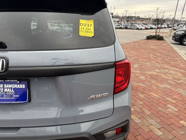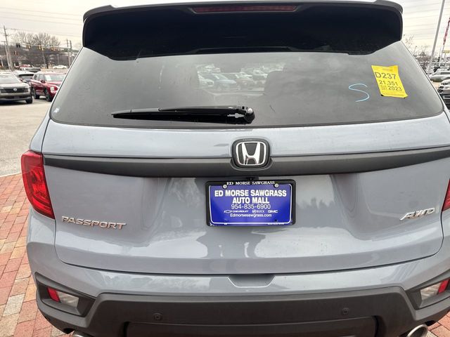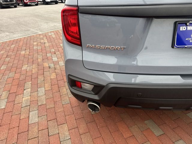 Recent Arrival! 2023 Honda Passport EX-L EX-L Gray 4D Sport Utility 3.5L V6 24V SOHC i-VTEC 9-Speed Automatic AWD This vehicle comes well equipped with 4-Wheel Disc Brakes, 4.334 Axle Ratio, 7 Speakers, A/V remote: CabinControl, ABS brakes, Air Conditioning, Alloy wheels, AM/FM radio: SiriusXM, Apple CarPlay/Android Auto, Auto High-beam Headlights, Auto-dimming Rear-View mirror, Automatic temperature control, Blind Spot Information (BSI) System warning, Brake assist, Bumpers: body-color, Delay-off headlights, Driver door bin, Driver vanity mirror, Driver's Seat Mounted Armrest, Dual front impact airbags, Dual front side impact airbags, Electronic Stability Control, Emergency communication system: HondaLink Assist, Exterior Parking Camera Rear, Four wheel independent suspension, Front anti-roll bar, Front Bucket Seats, Front Center Armrest, Front dual zone A/C, Front reading lights, Fully automatic headlights, Garage door transmitter: HomeLink, Heated door mirrors, Heated Front Bucket Seats, Heated front seats, Illuminated entry, Lane departure: Lane Keeping Assist System (LKAS) active, Leather-Trimmed Seats, Low tire pressure warning, Occupant sensing airbag, Outside temperature display, Overhead airbag, Overhead console, Panic alarm, Passenger door bin, Passenger seat mounted armrest, Passenger vanity mirror, Power door mirrors, Power driver seat, Power Liftgate, Power moonroof, Power passenger seat, Power steering, Power windows, Radio data system, Radio: 215-Watt Audio System w/7 Speakers, Rear air conditioning, Rear anti-roll bar, Rear reading lights, Rear seat center armrest, Rear window defroster, Rear window wiper, Remote keyless entry, Security system, Speed control, Speed-sensing steering, Split folding rear seat, Spoiler, Steering wheel mounted audio controls, Tachometer, Telescoping steering wheel, Tilt steering wheel, Traction control, Trip computer, Turn signal indicator mirrors, Variably intermittent wipers, and Wheels: 20" Pewter Gray Alloy.