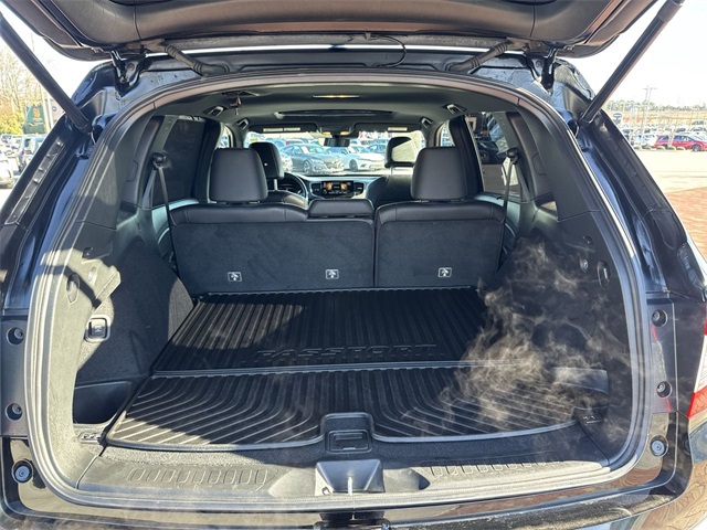 CARFAX One-Owner. Certified. 2023 Honda Passport TrailSport TrailSport Crystal Black Pearl 4D Sport Utility 3.5L V6 24V SOHC i-VTEC 9-Speed Automatic AWD This vehicle comes well equipped with 4-Wheel Disc Brakes, 4.334 Axle Ratio, 7 Speakers, A/V remote: CabinControl, ABS brakes, Air Conditioning, Alloy wheels, AM/FM radio: SiriusXM, Apple CarPlay/Android Auto, Auto High-beam Headlights, Auto-dimming Rear-View mirror, Automatic temperature control, Blind Spot Information (BSI) System warning, Brake assist, Bumpers: body-color, Compass, Delay-off headlights, Driver door bin, Driver vanity mirror, Driver's Seat Mounted Armrest, Dual front impact airbags, Dual front side impact airbags, Electronic Stability Control, Emergency communication system: HondaLink Assist, Exterior Parking Camera Rear, Four wheel independent suspension, Front anti-roll bar, Front Bucket Seats, Front Center Armrest, Front dual zone A/C, Front fog lights, Front reading lights, Fully automatic headlights, Garage door transmitter: HomeLink, Heated door mirrors, Heated Front Bucket Seats, Heated front seats, Illuminated entry, Lane departure: Lane Keeping Assist System (LKAS) active, Leather-Trimmed Seats, Low tire pressure warning, Navigation system: Honda Satellite-Linked Navigation System, Occupant sensing airbag, Outside temperature display, Overhead airbag, Overhead console, Panic alarm, Passenger door bin, Passenger seat mounted armrest, Passenger vanity mirror, Power door mirrors, Power driver seat, Power Liftgate, Power moonroof, Power passenger seat, Power steering, Power windows, Radio data system, Radio: 215-Watt Audio System w/7 Speakers, Rear air conditioning, Rear anti-roll bar, Rear reading lights, Rear seat center armrest, Rear window defroster, Rear window wiper, Remote keyless entry, Roof rack: rails only, Security system, Speed control, Speed-sensing steering, Split folding rear seat, Spoiler, Steering wheel mounted audio controls, Tachometer, Telescoping steering wheel, Tilt steering wheel, Traction control, Trip computer, Turn signal indicator mirrors, Variably intermittent wipers, and Wheels: 18" Machine-Finish Alloy.