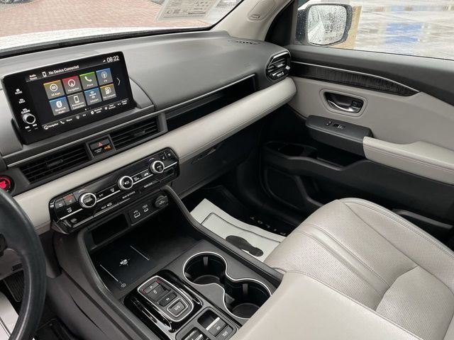 Recent Arrival! CARFAX One-Owner. Certified. 2023 Honda Pilot Elite Elite White Pearl 4D Sport Utility 3.5L V6 DOHC 24V 10-Speed Automatic AWD This vehicle comes well equipped with 12 Speakers, 3rd row seats: split-bench, 4-Wheel Disc Brakes, ABS brakes, Adaptive Cruise Control: Adaptive Cruise Control (ACC) with Low-Speed Follow, Air Conditioning, Alloy wheels, AM/FM radio: SiriusXM, Apple CarPlay/Android Auto, Auto High-beam Headlights, Auto-dimming door mirrors, Auto-dimming Rear-View mirror, Automatic temperature control, Axle Ratio: 4.167, Blind Spot Information (BSI) System warning, Bose Premium Sound System, Brake assist, Bumpers: body-color, Compass, Delay-off headlights, Driver door bin, Driver vanity mirror, Dual front impact airbags, Dual front side impact airbags, Electronic Stability Control, Emergency communication system: HondaLink, Four wheel independent suspension, Front anti-roll bar, Front Bucket Seats, Front Center Armrest, Front dual zone A/C, Front fog lights, Front reading lights, Fully automatic headlights, Garage door transmitter: HomeLink, Heads-Up Display, Heated & Ventilated Front Bucket Seats, Heated door mirrors, Heated front seats, Heated rear seats, Heated steering wheel, Illuminated entry, Knee airbag, Lane departure: Lane Keeping Assist System (LKAS) active, Low tire pressure warning, Memory seat, Navigation system: Honda Satellite-Linked Navigation System, Occupant sensing airbag, Outside temperature display, Overhead airbag, Overhead console, Panic alarm, Passenger door bin, Passenger vanity mirror, Perforated Leather Seat Trim, Power door mirrors, Power driver seat, Power Liftgate, Power moonroof, Power passenger seat, Power steering, Power windows, Radio data system, Rain sensing wipers, Rear air conditioning, Rear anti-roll bar, Rear reading lights, Rear seat center armrest, Rear window defroster, Rear window wiper, Reclining 3rd row seat, Remote keyless entry, Security system, Speed control, Speed-sensing steering, Speed-Sensitive Wipers, Split folding rear seat, Spoiler, Steering wheel mounted audio controls, Tachometer, Telescoping steering wheel, Tilt steering wheel, Traction control, Trip computer, Turn signal indicator mirrors, Variably intermittent wipers, Ventilated front seats, and Wheels: 20" Machine Face Shark Gray w/Blk Lug Nuts.