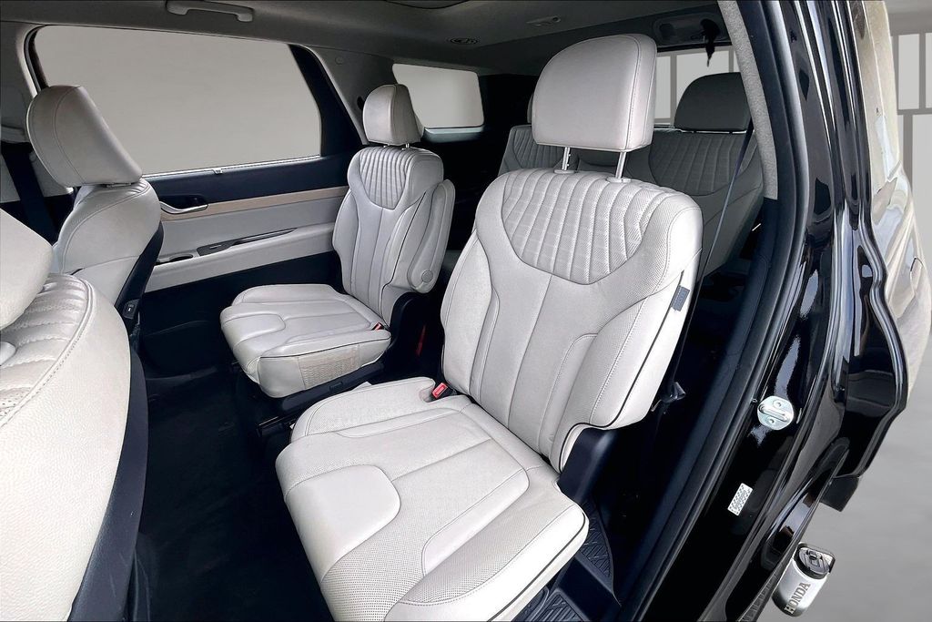 3rd Row Seating, Apple CarPlay, Android Auto, Back Up Camera, Heads Up Display, Heated Seats, Heated Steering Wheel, Leather Interior, Memory Seats, Navigation, Power Drivers Seat, Sunroof, Ventilated Seats, Harman/Kardon Audio, Heated Rear Seats, Palisade Limited, V6, 8-Speed Automatic with SHIFTRONIC, Abyss Black Pearl, Beige Leather, 12 Speakers, 3rd row seats: split-bench, Apple CarPlay & Android Auto, Auto High-beam Headlights, Auto-dimming Rear-View mirror, Auto-leveling suspension, Automatic temperature control, Brake assist, Emergency communication system: Blue Link Connected Car Service (3-year complimentary subscription), Exterior Parking Camera Rear, Four wheel independent suspension, Front dual zone A/C, Fully automatic headlights, Garage door transmitter: HomeLink, harman/kardon® Speakers, Heads-Up Display, Heated & Ventilated Front Bucket Seats, Heated door mirrors, Heated front seats, Heated rear seats, Heated steering wheel, Leather Seat Trim, Memory seat, Navigation System, Option Group 01, Power door mirrors, Power driver seat, Power Liftgate, Power moonroof, Power passenger seat, Radio: AM/FM/MP3 Premium Audio System, Rain sensing wipers, Reclining 3rd row seat, Remote keyless entry, Spoiler, Telescoping steering wheel, Tilt steering wheel, Turn signal indicator mirrors, Ventilated front seats.
